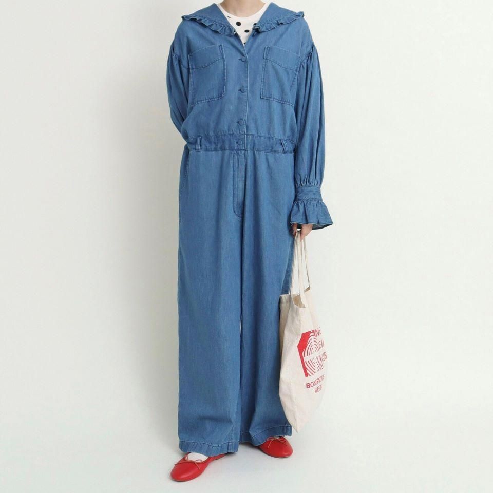 ライトオンスデニム フリルセーラージャンプスーツ (0101PT001252) 正規取扱品