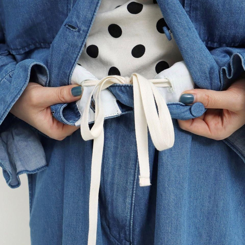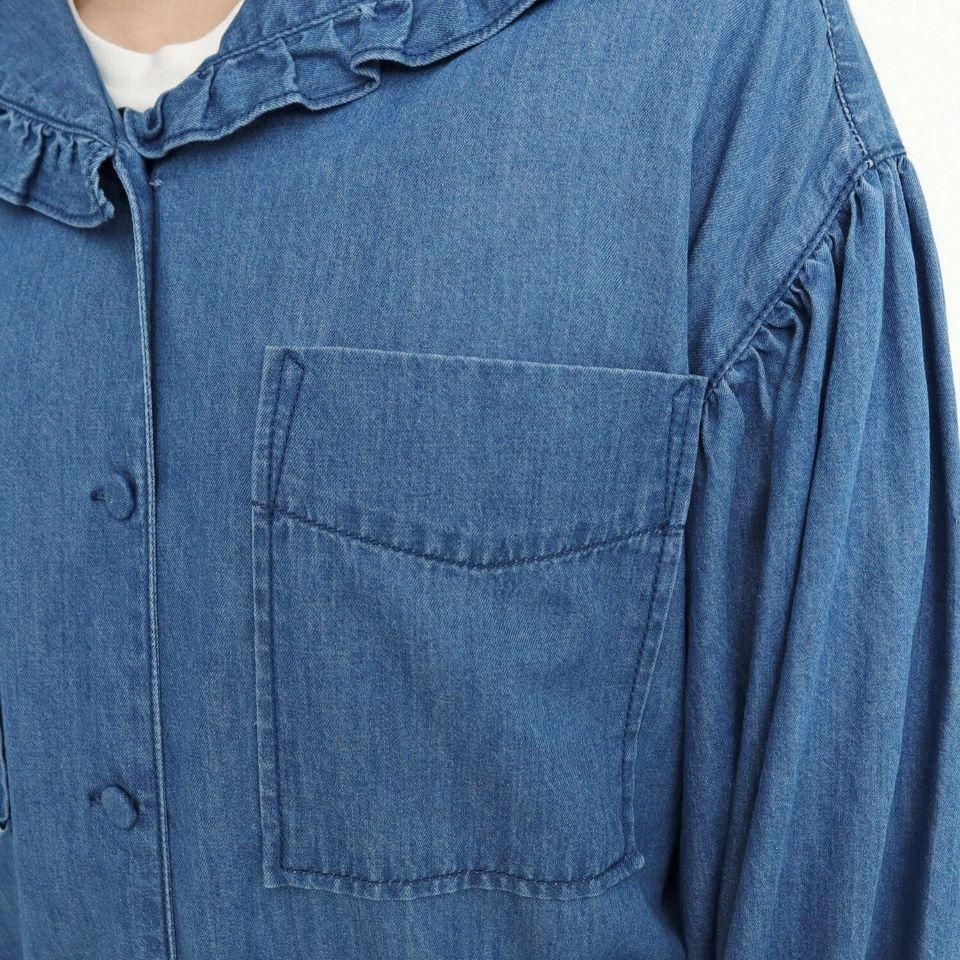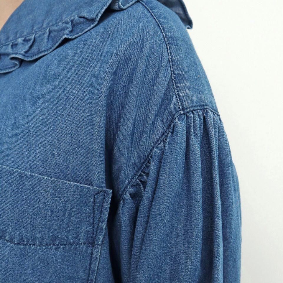 カジュアルなイメージの強いデニムに敢えてフリルやギャザーなど、甘いディテールを加えたバランス感が魅力的です。