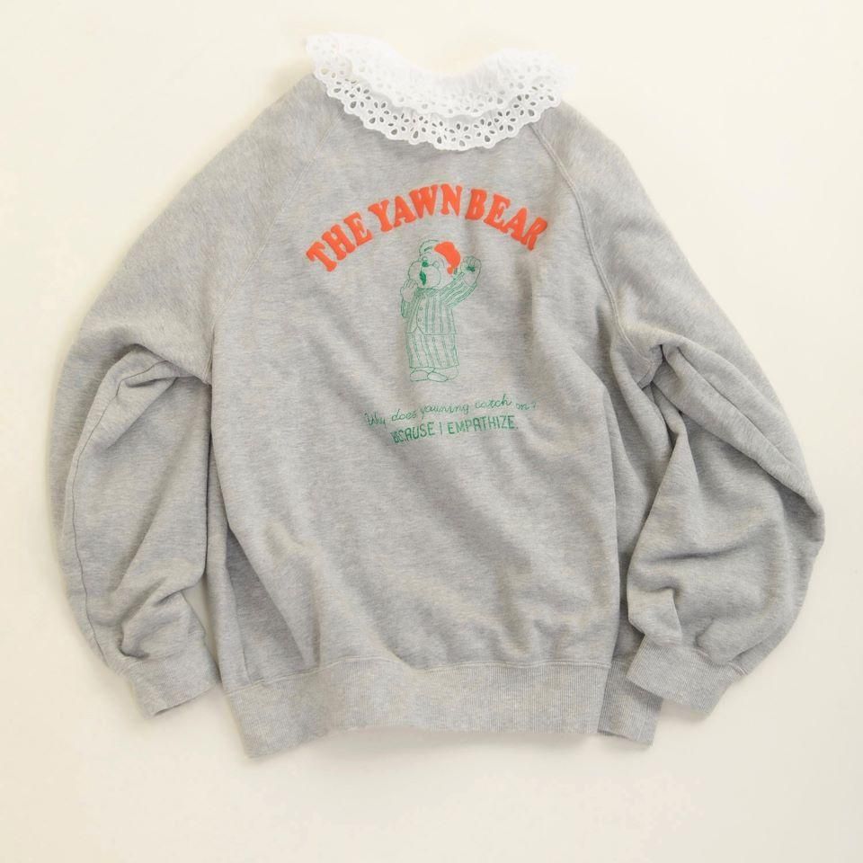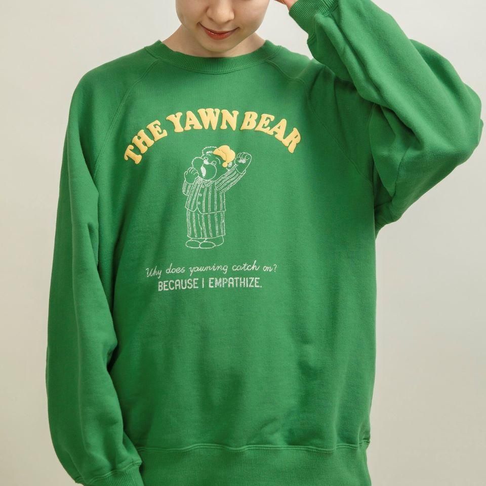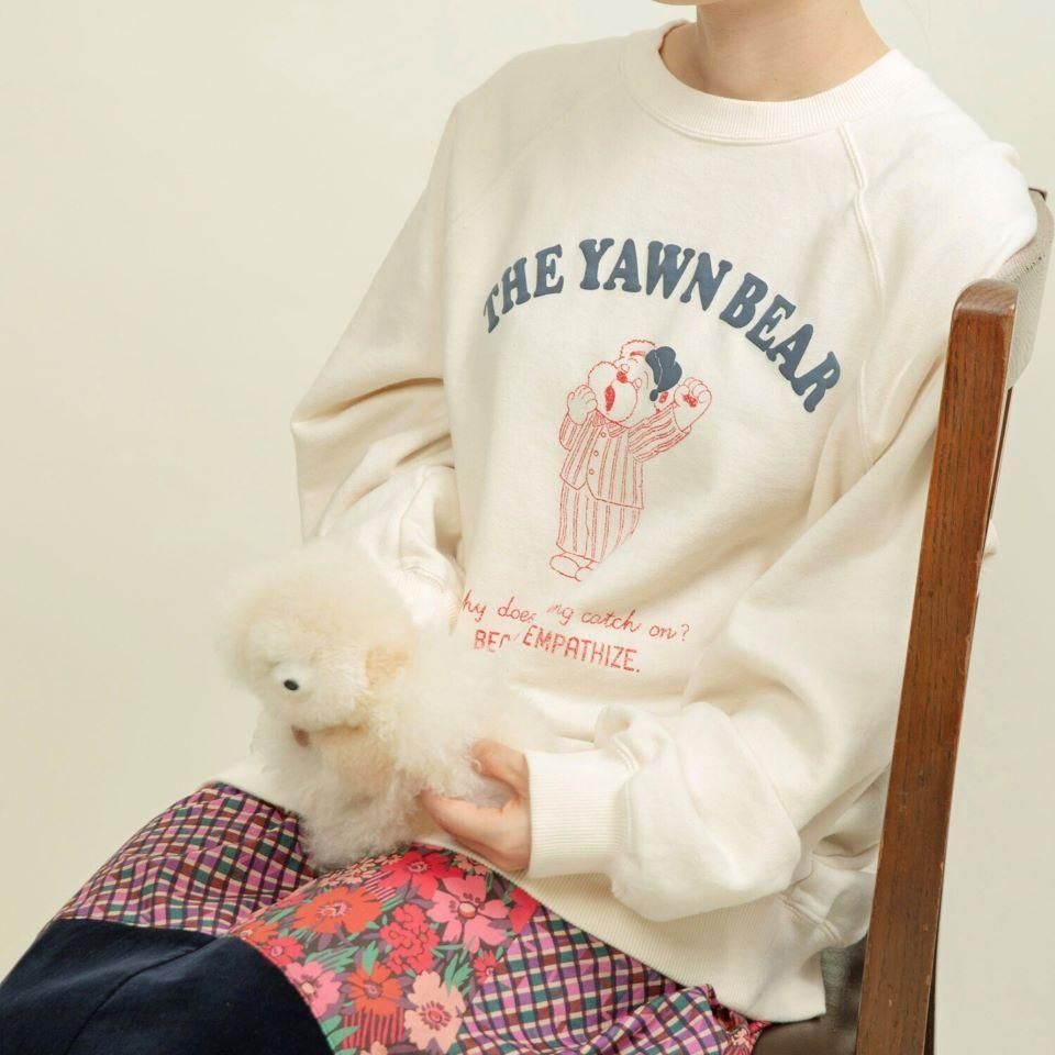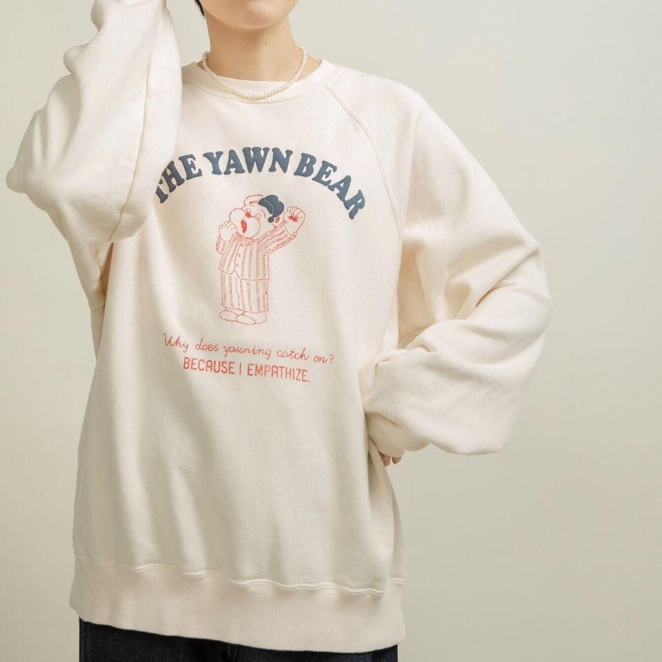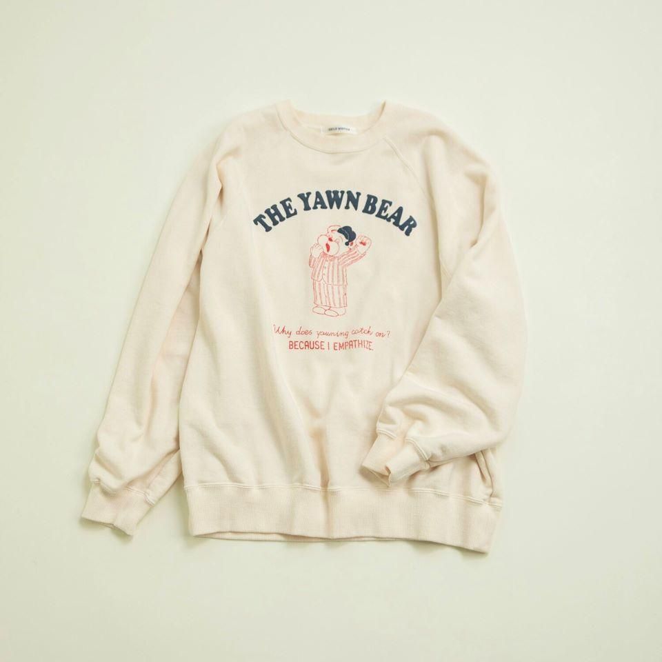 眠たそうなクマが愛らしい裏毛スウェットプルオーバー。