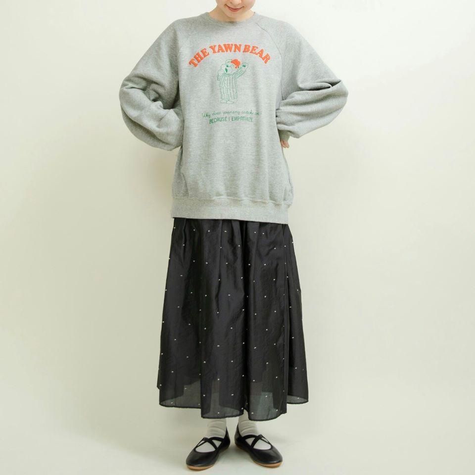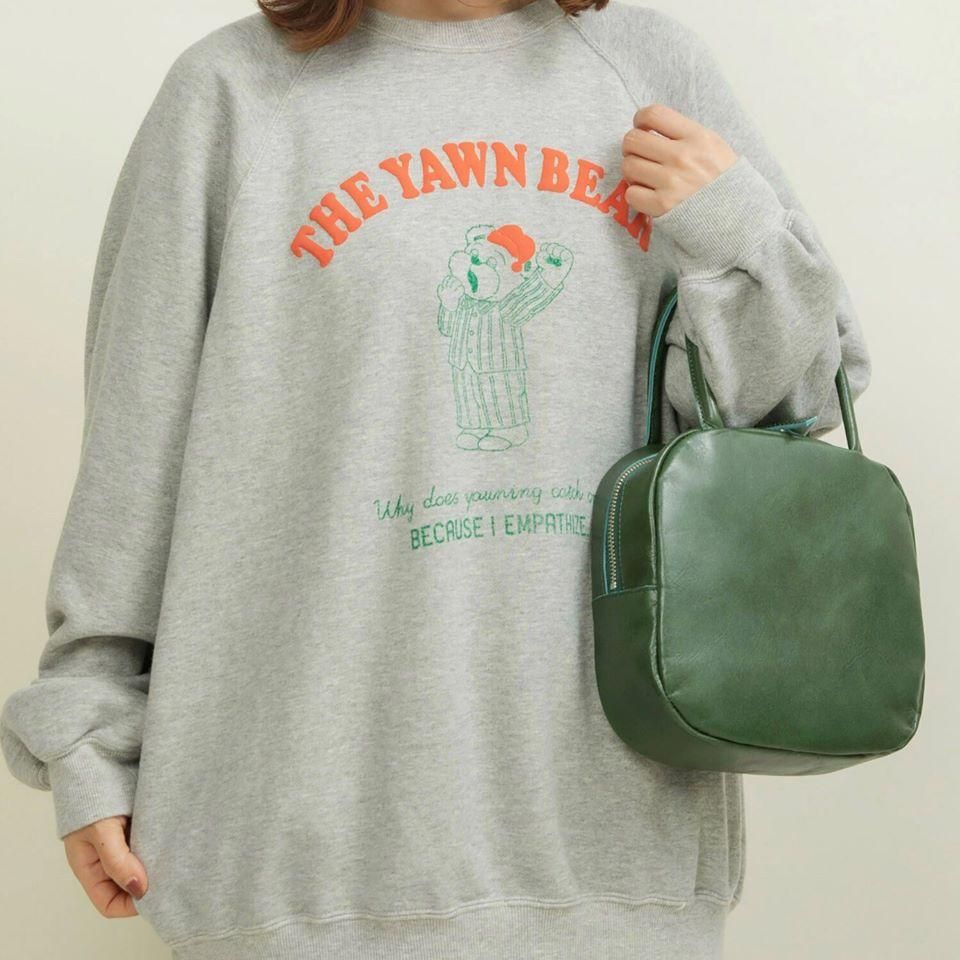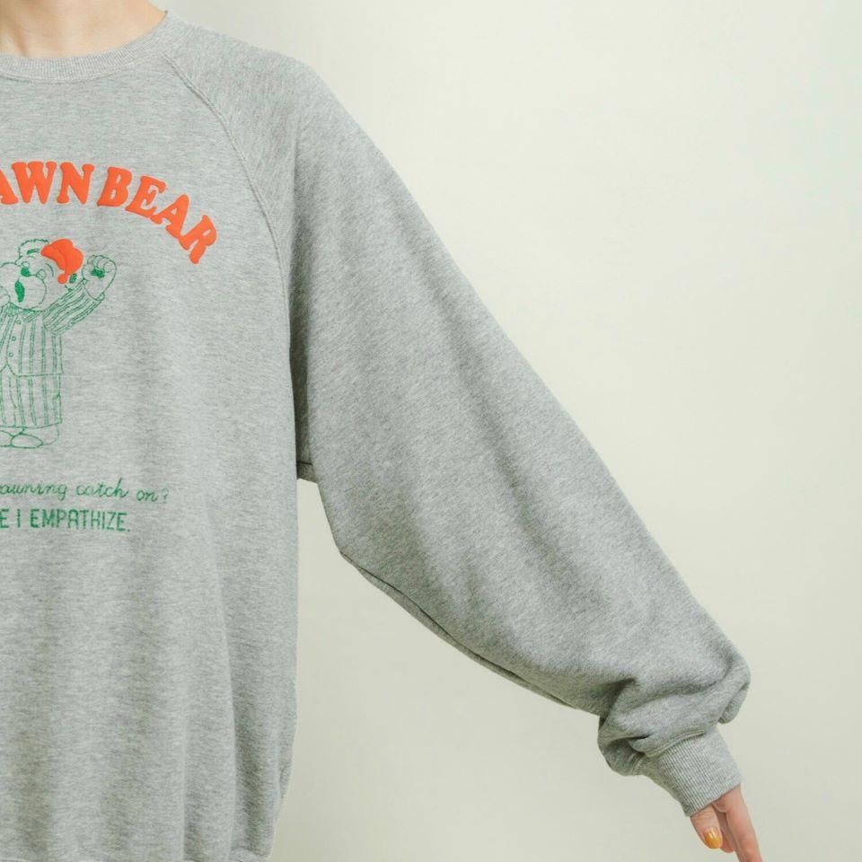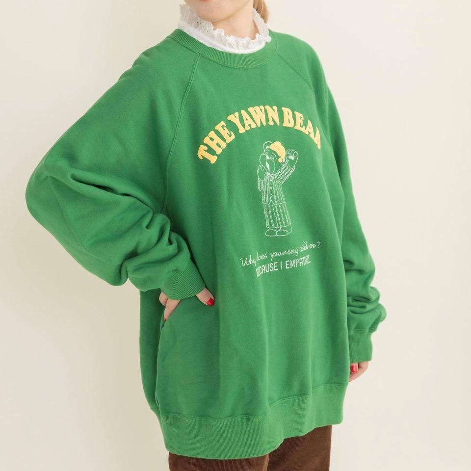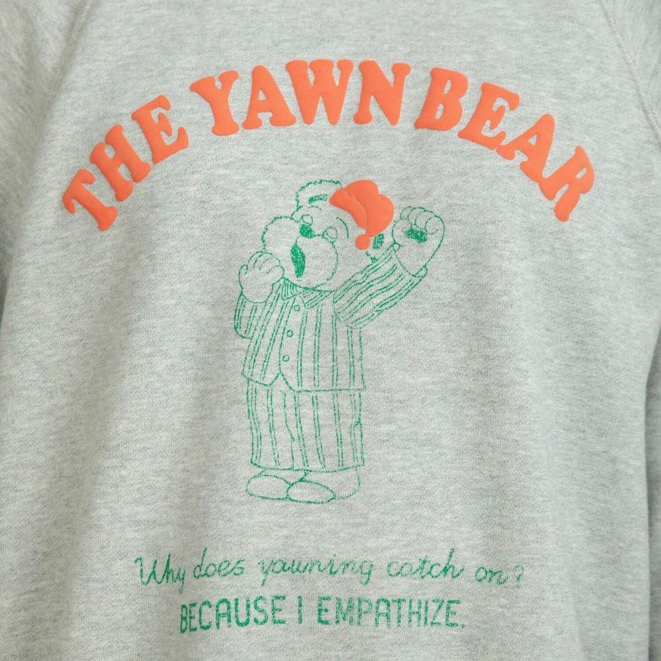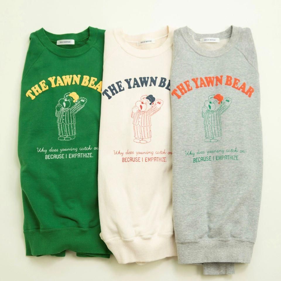 眠たそうなクマが愛らしい裏毛スウェットプルオーバー。