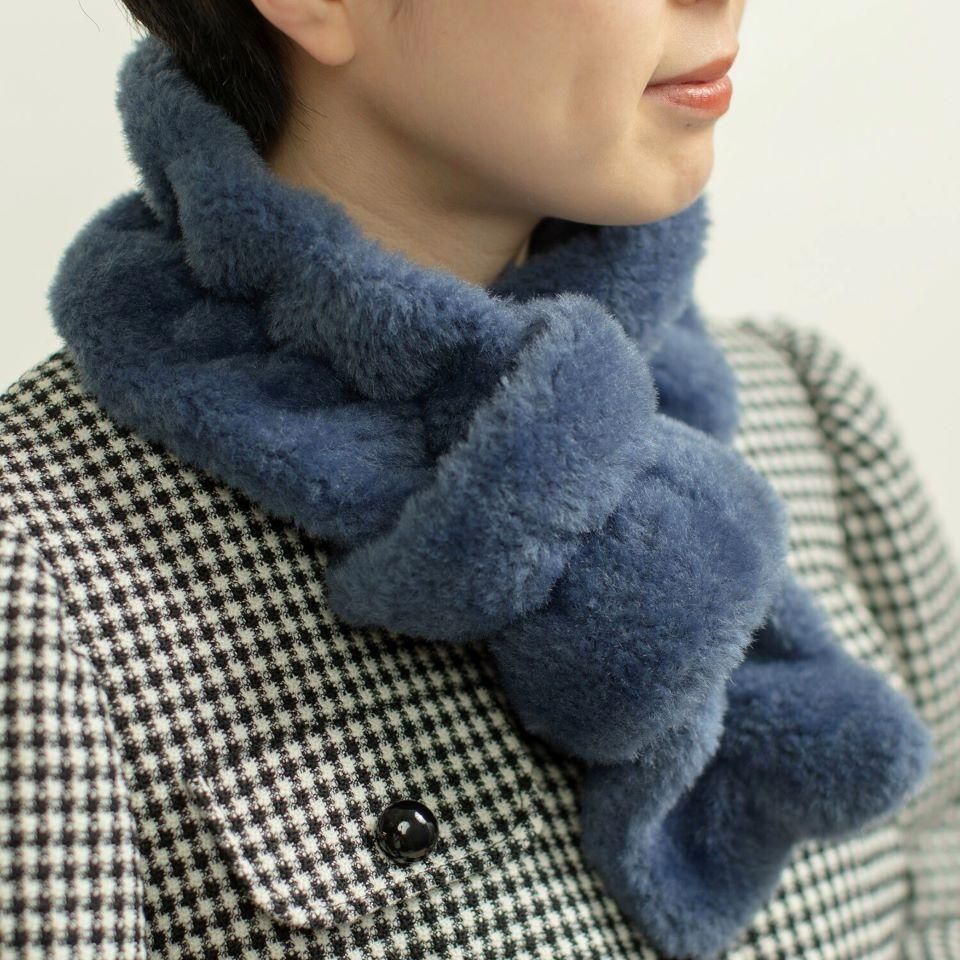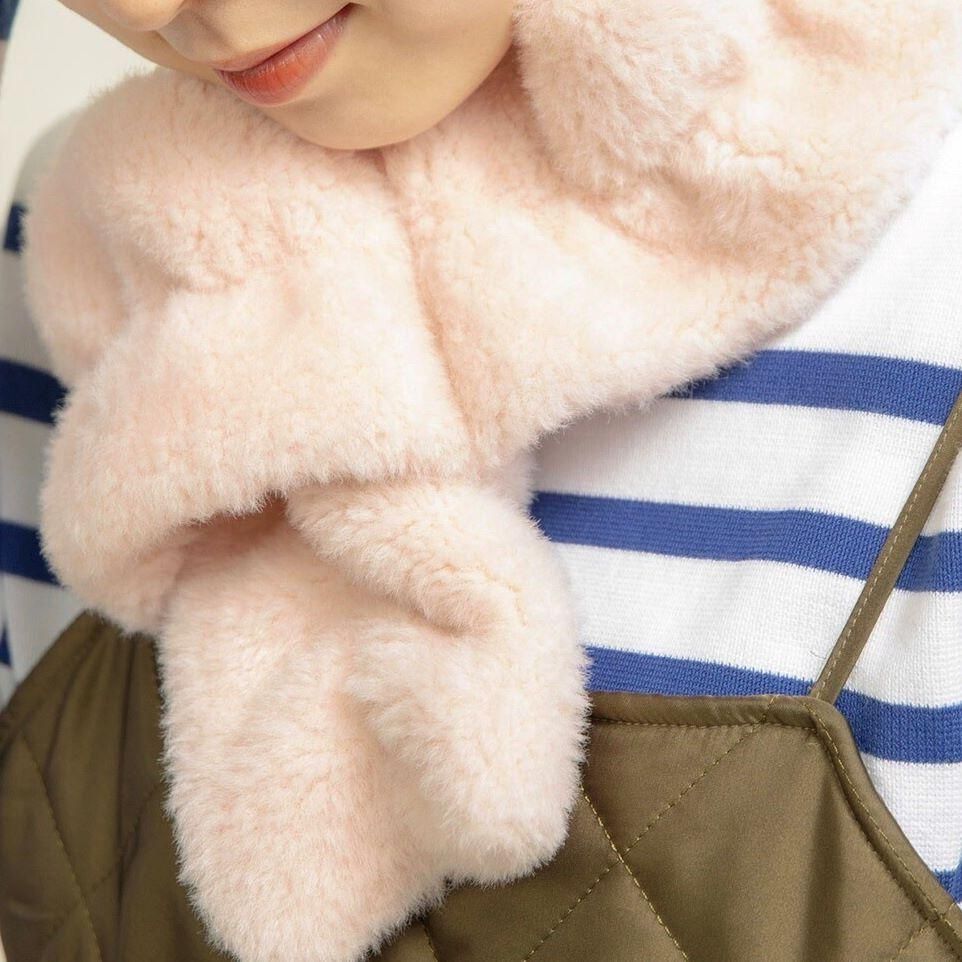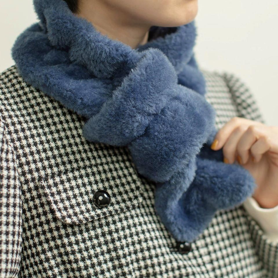 いつもよりも毛足の短いしなやかなフェイクファーを使用し、ふんわりと柔らかで肌触りも良く、巻いた時にストレスなく身に付けて頂けます。