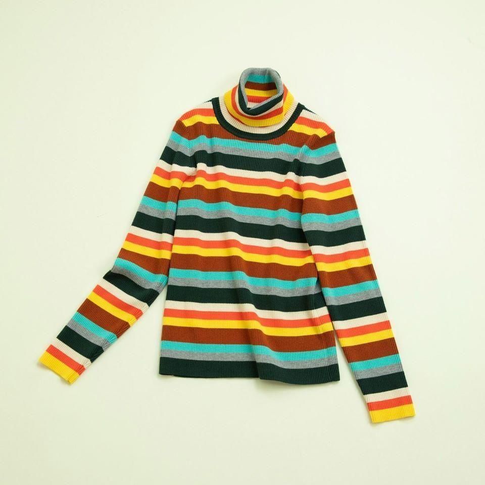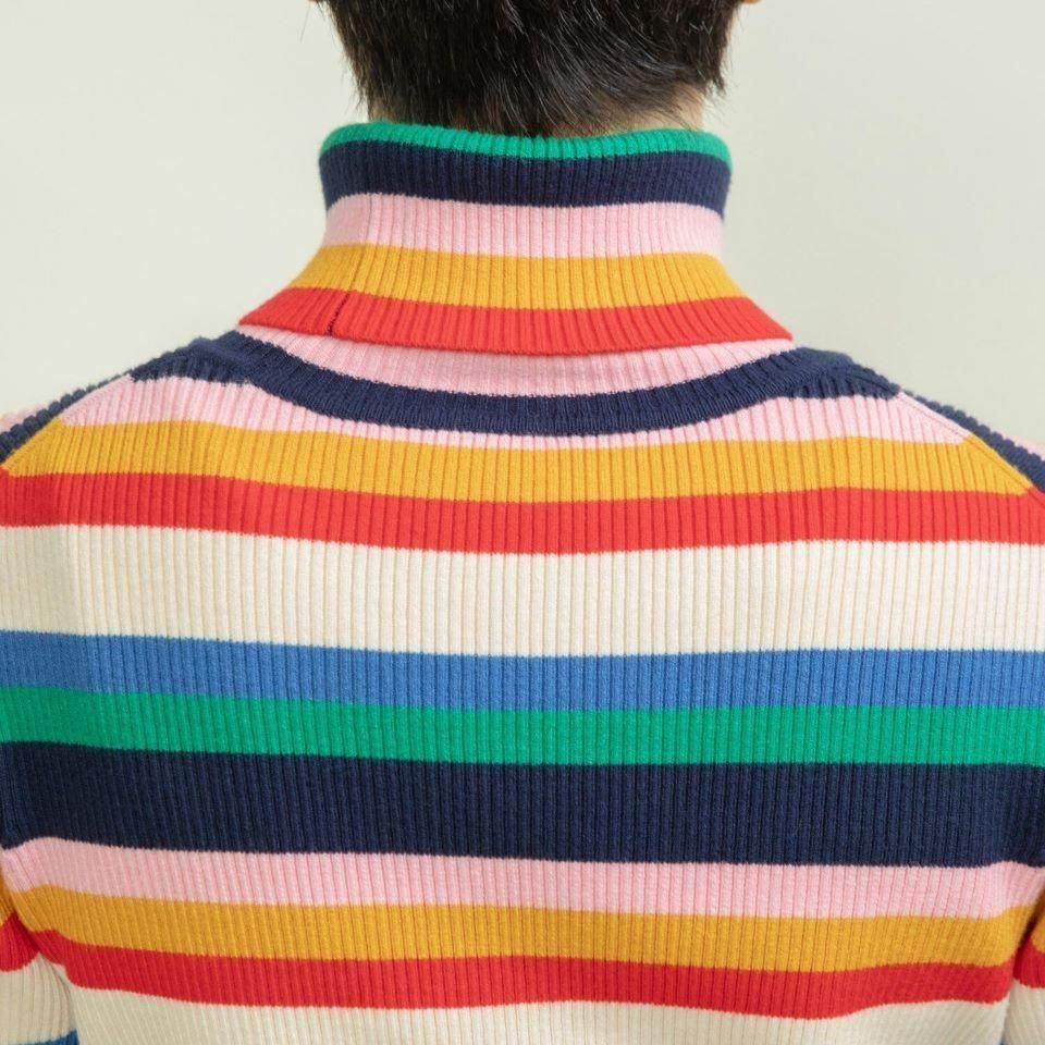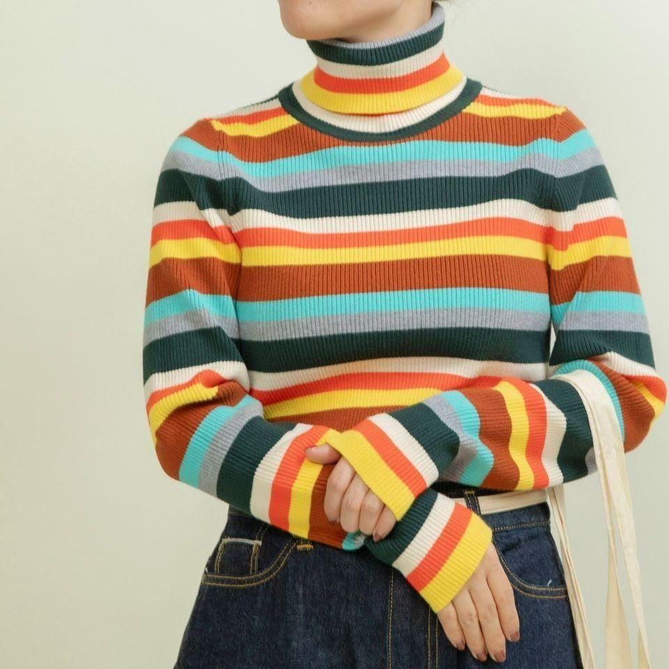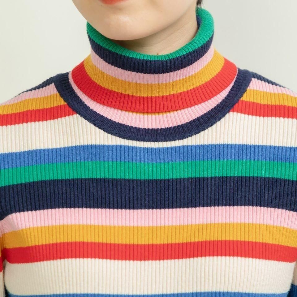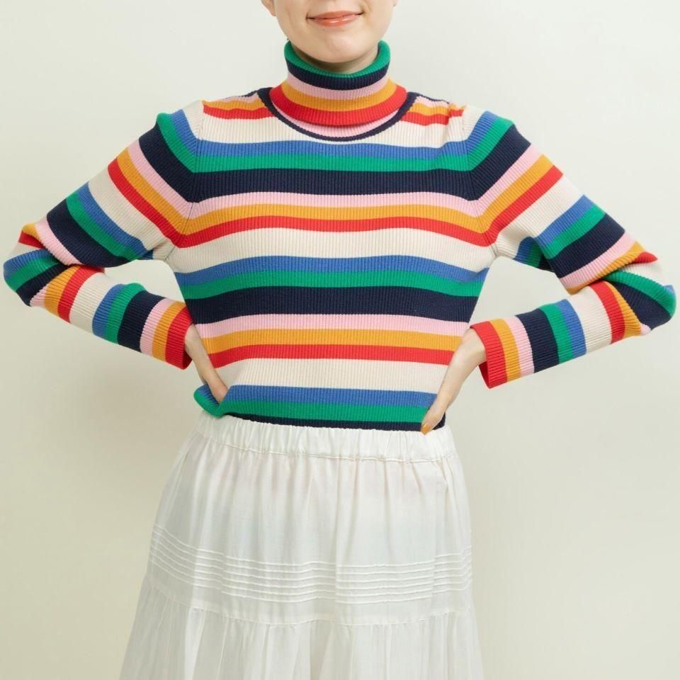 CHILD WOMANらしい元気でカラフルなカラーリングが目を引くタートルニット。