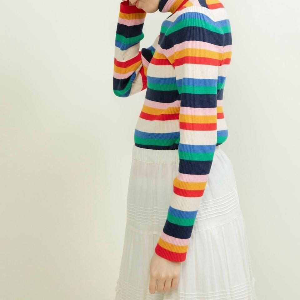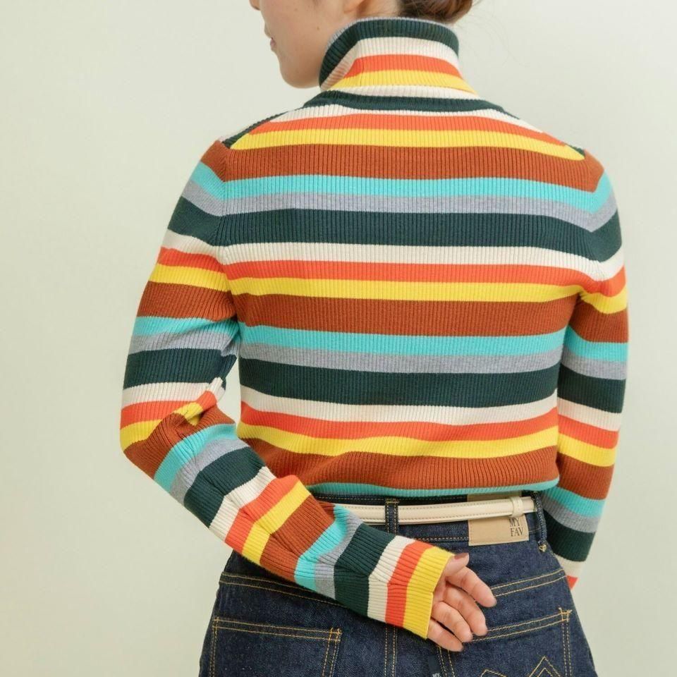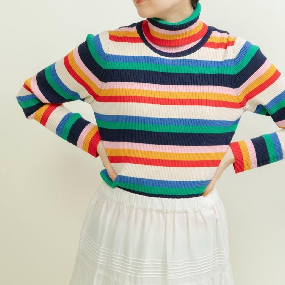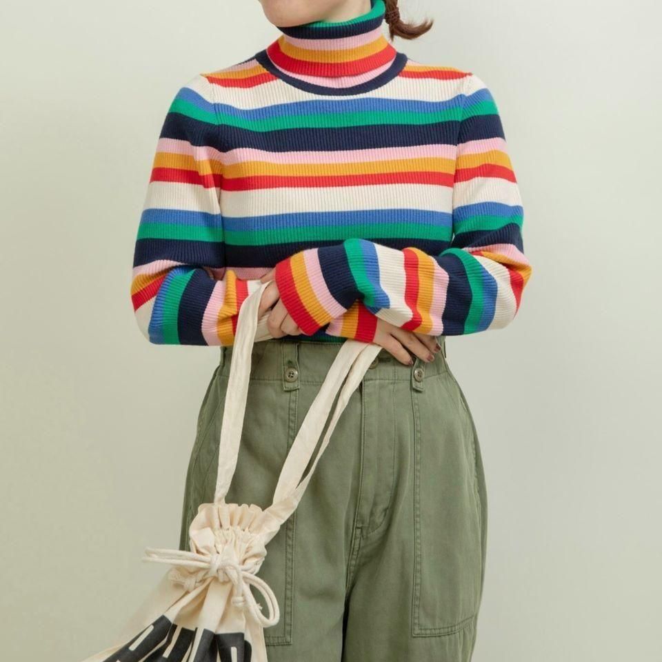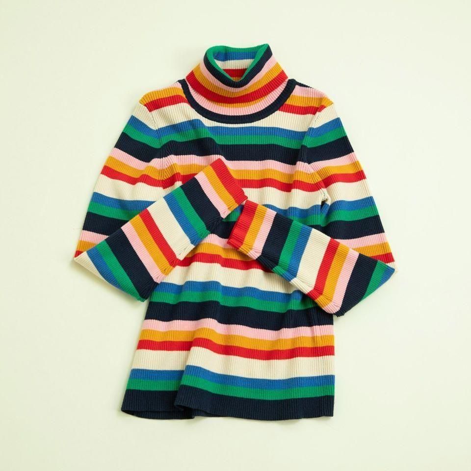 CHILD WOMANらしい元気でカラフルなカラーリングが目を引くタートルニット。