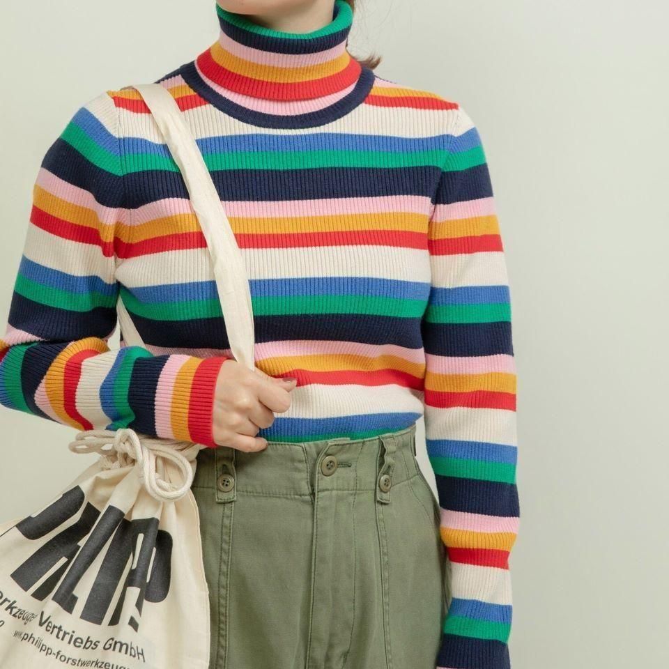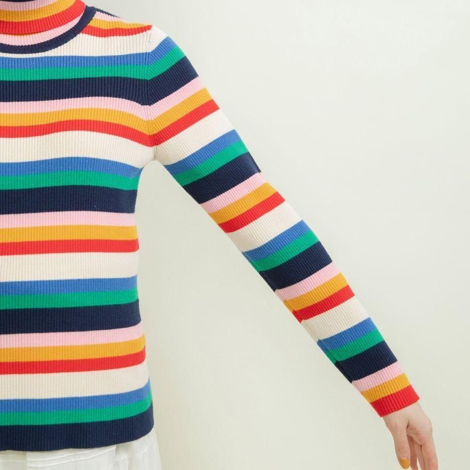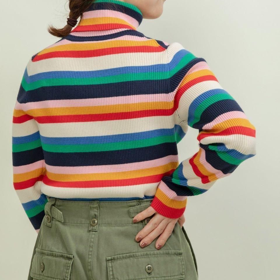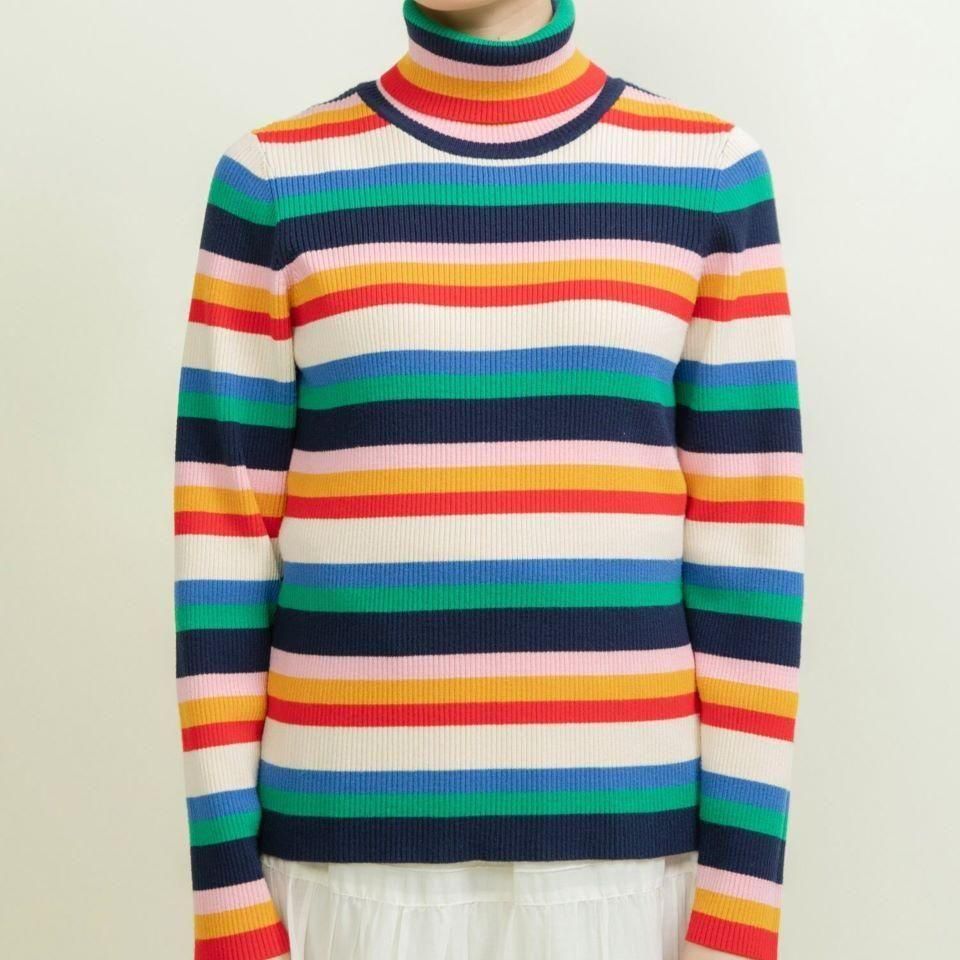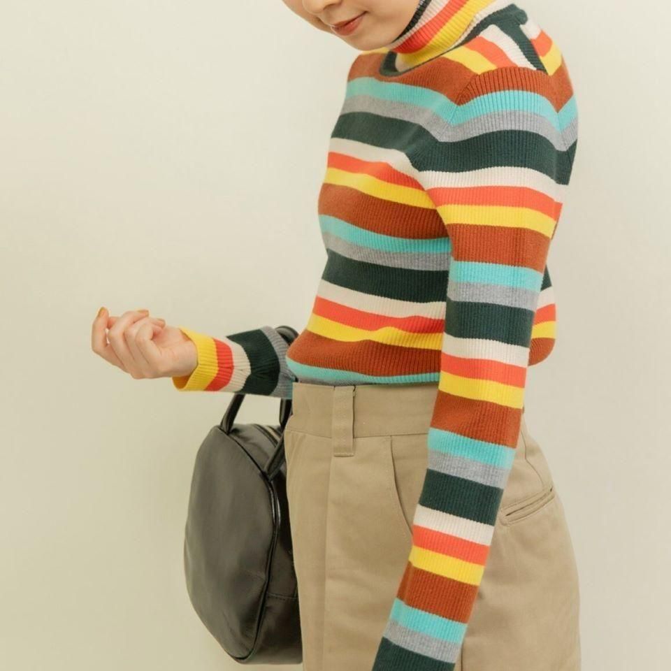 CHILD WOMANらしい元気でカラフルなカラーリングが目を引くタートルニット。