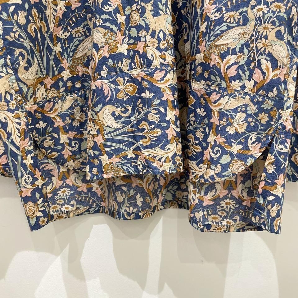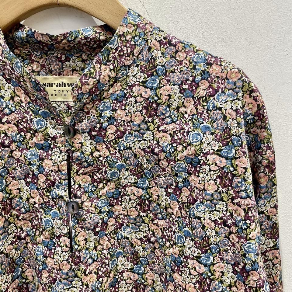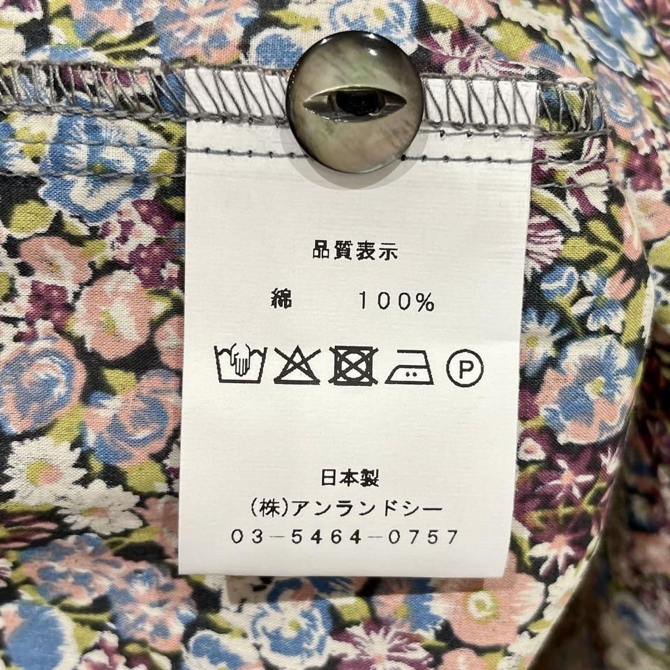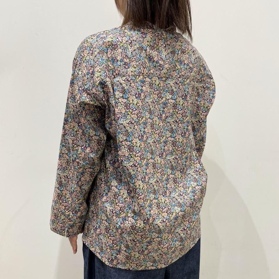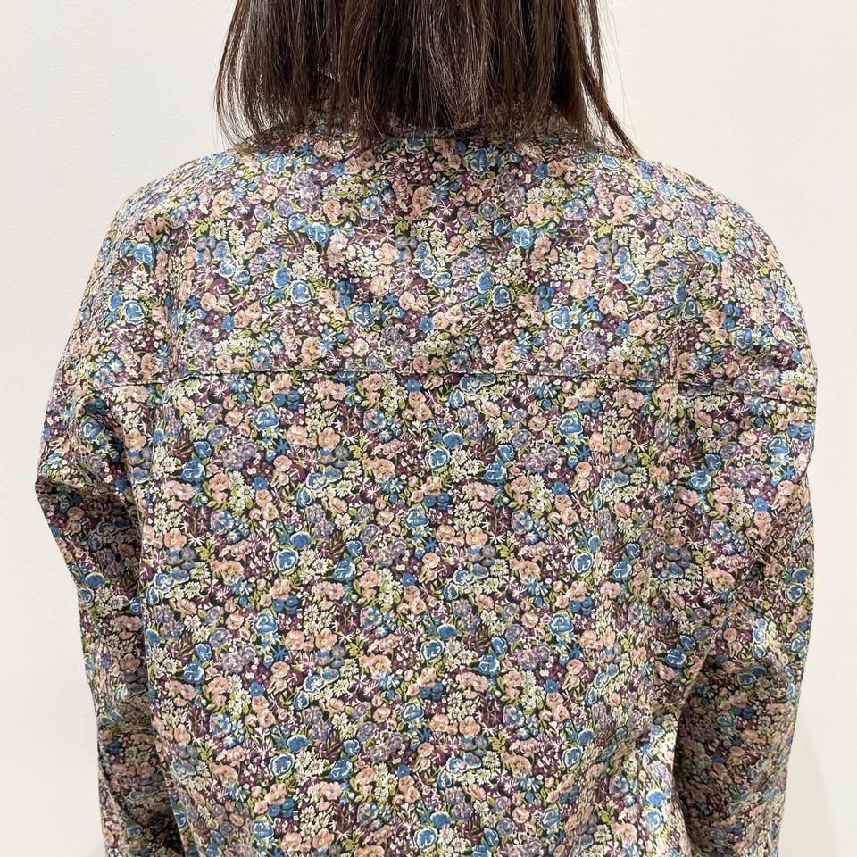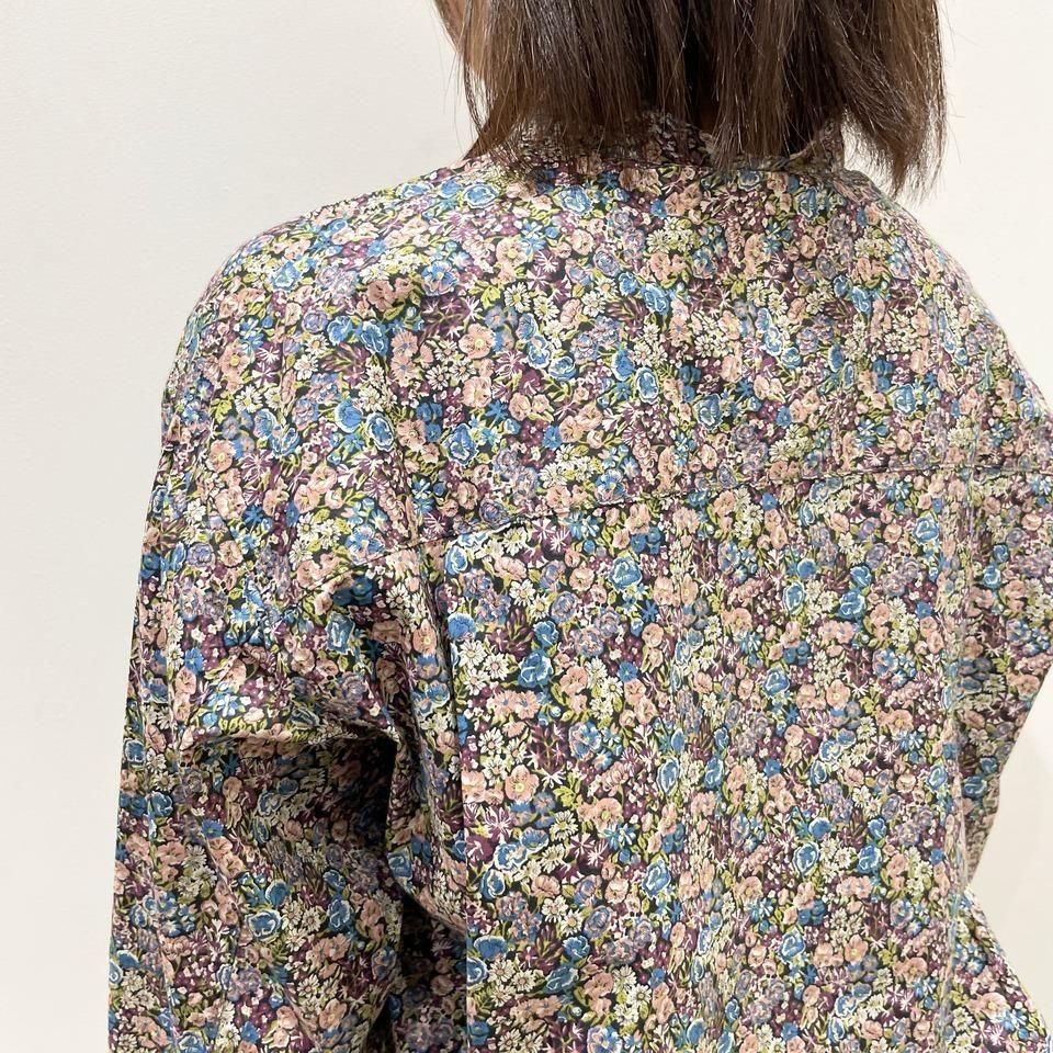 パープルがベースの小花柄リバティプリントのポッターシャツ。