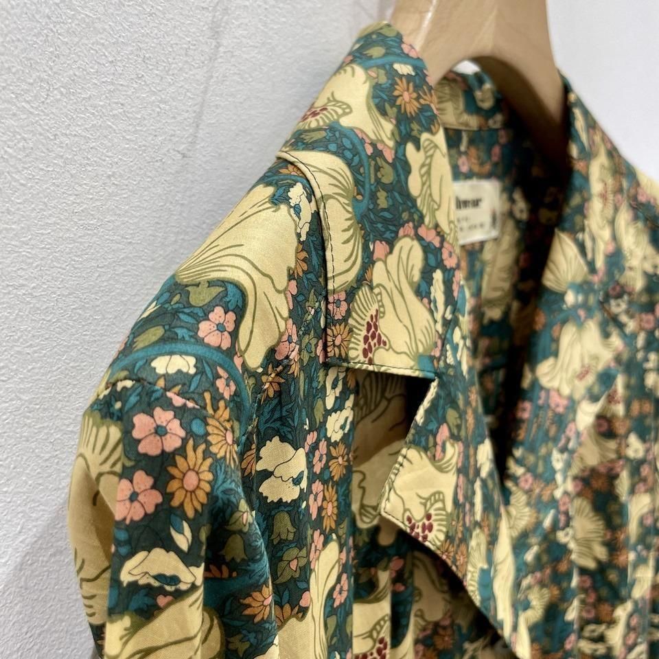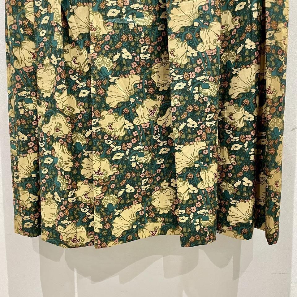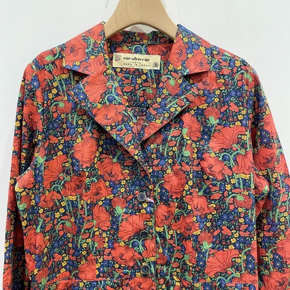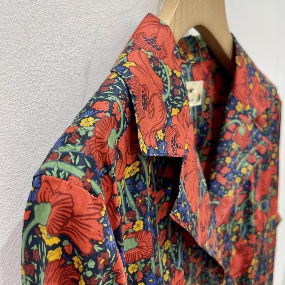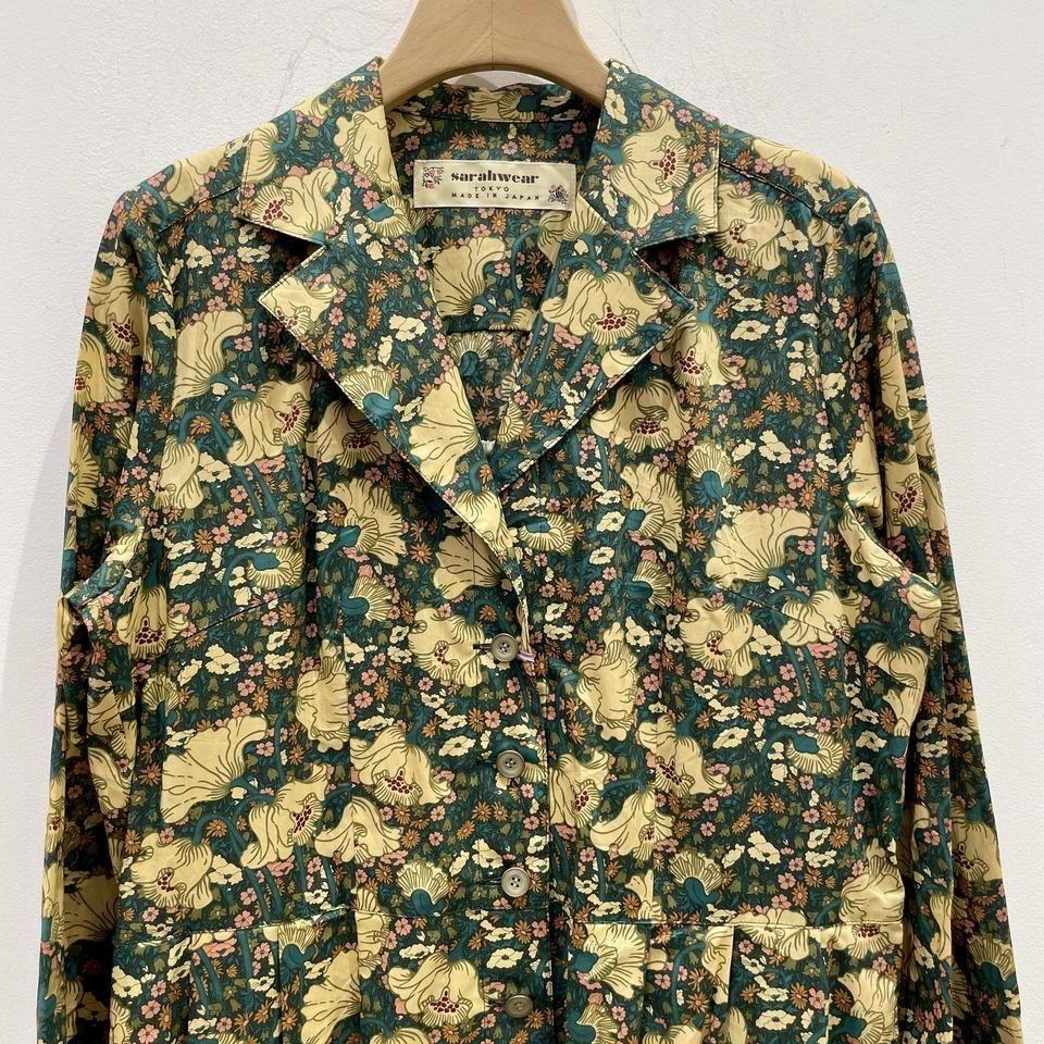 レトロな花柄と楽しいアニマル柄の個性的なリバティプリントのオープンカラードレス。