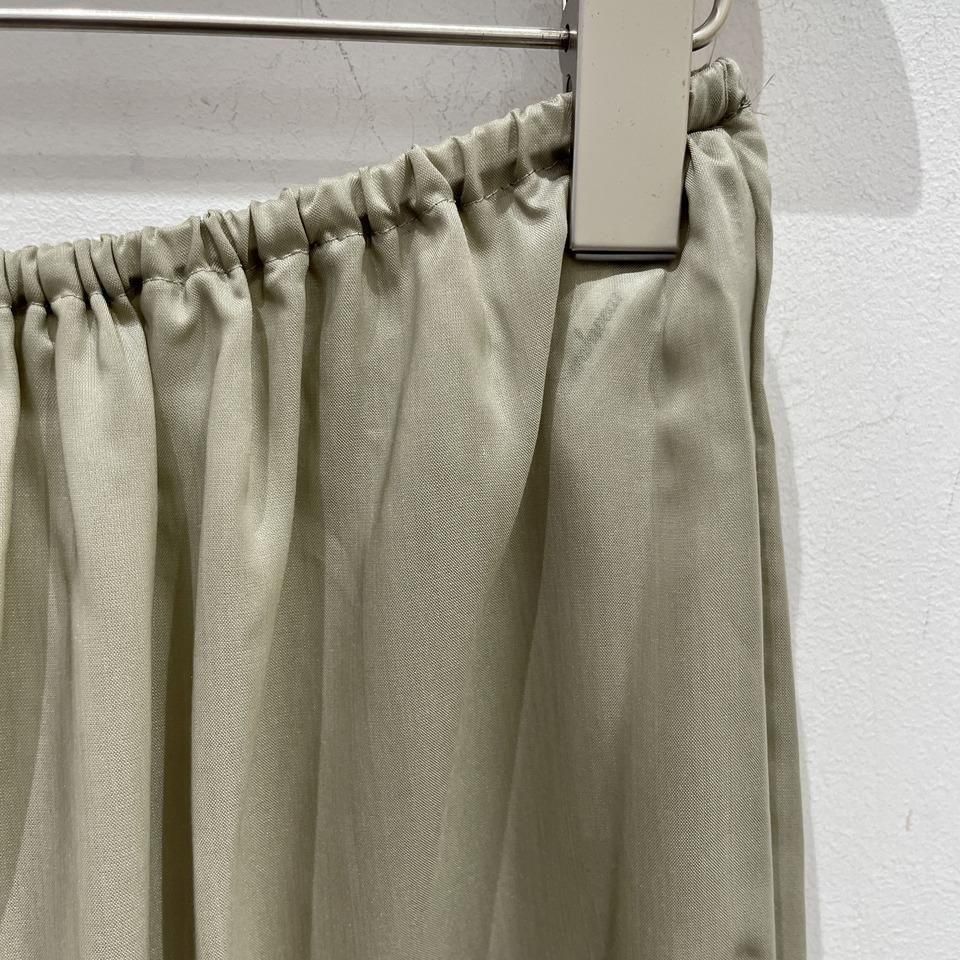 ウエストの後ろ側切替のギャザーはゴムになっていて自然にウエストマークされすっきりと見せてくれます。