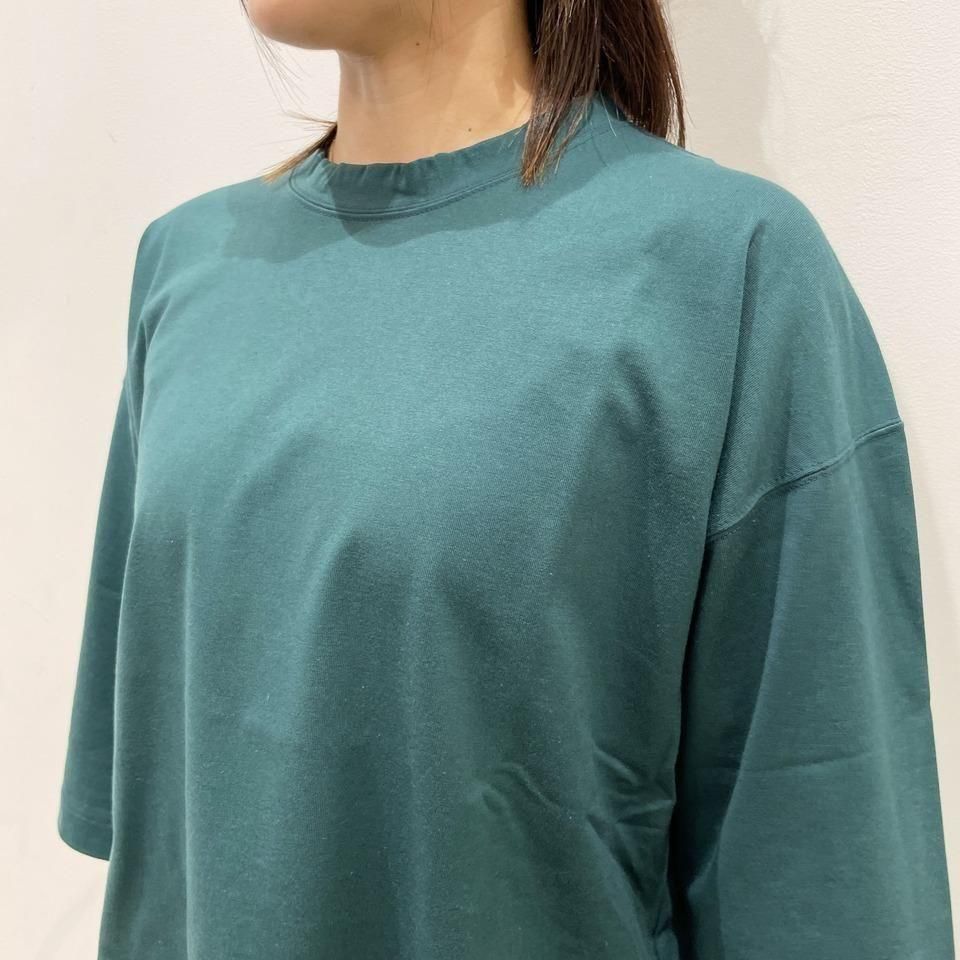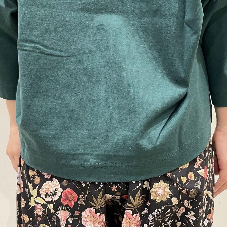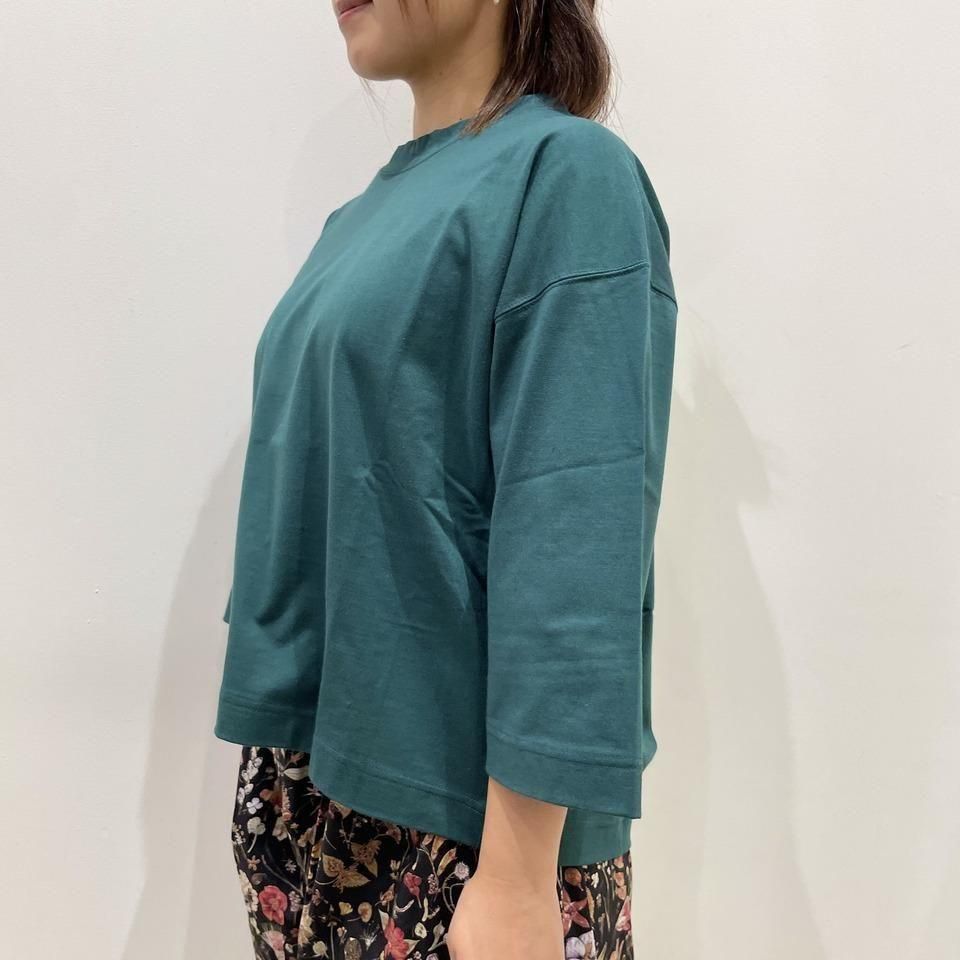 しなやかな風合いで優しい肌触りと伸縮の良い天竺ジャージーの七分袖クルーネックTee。