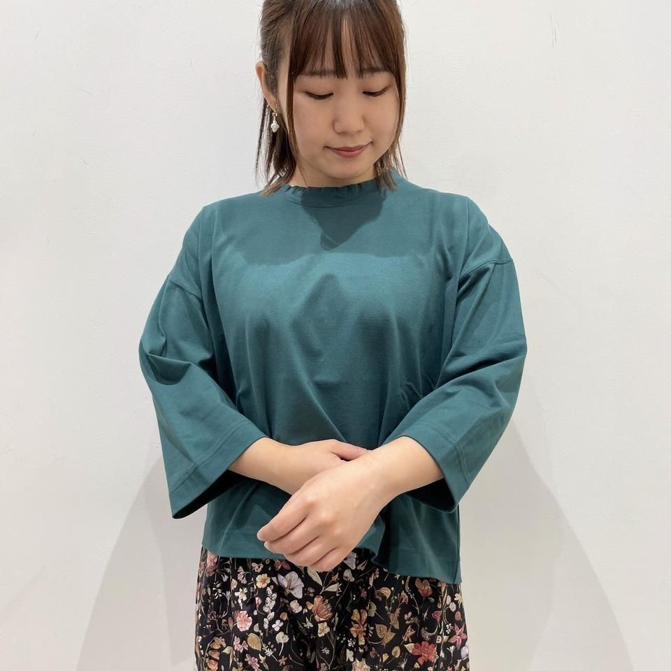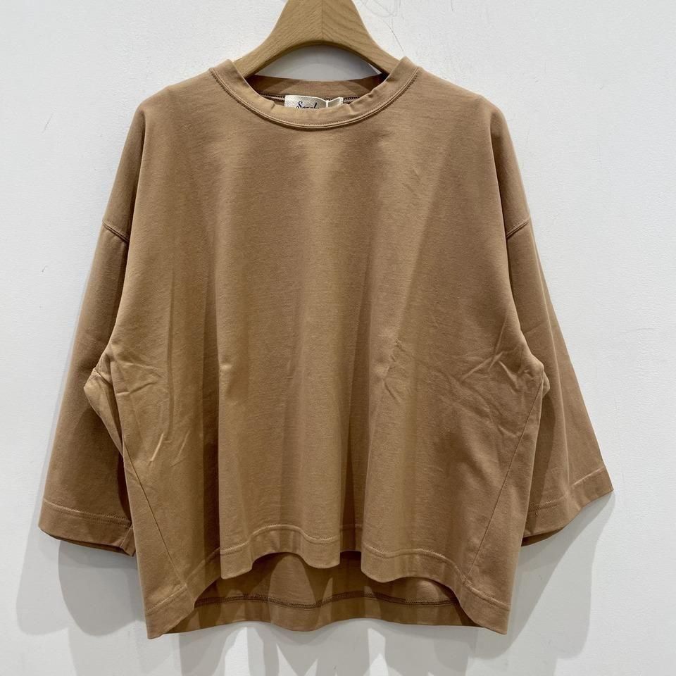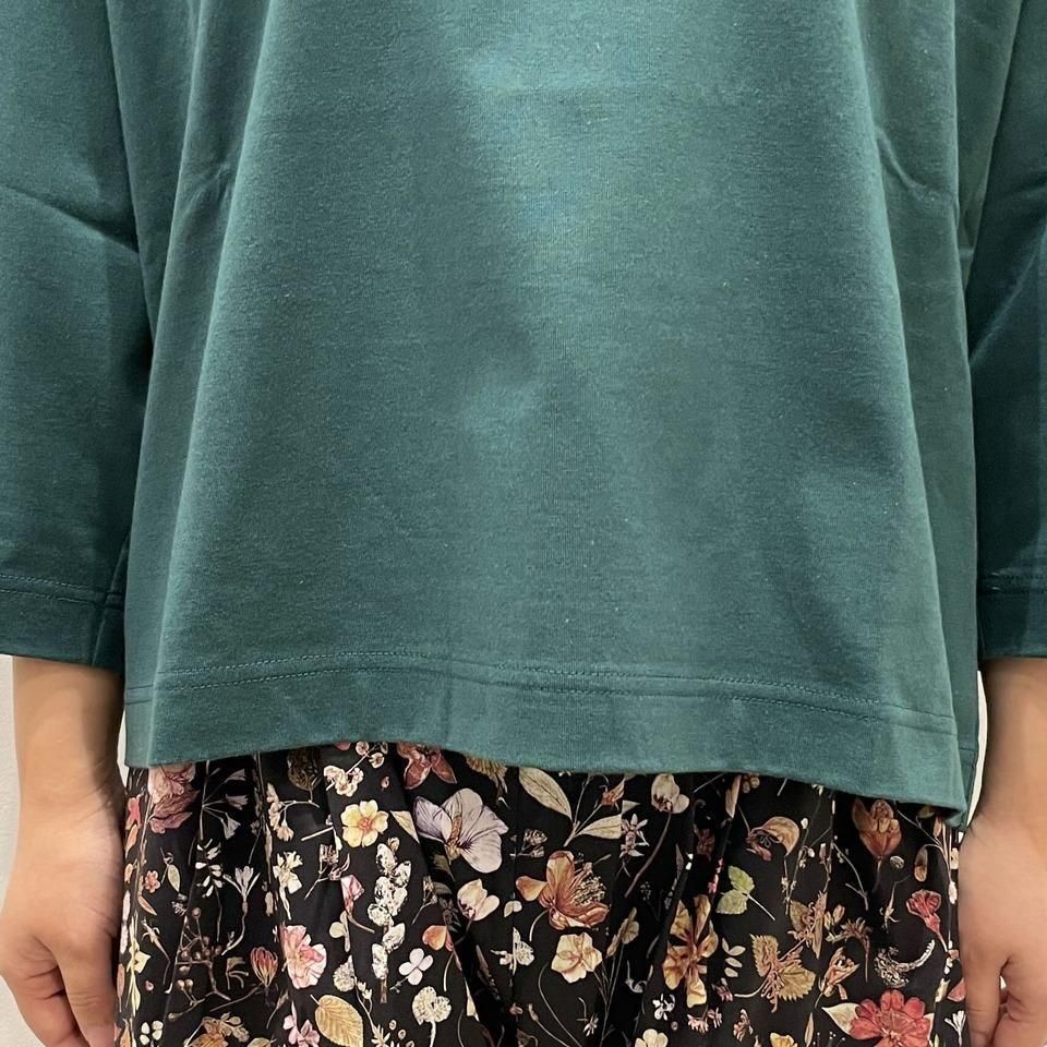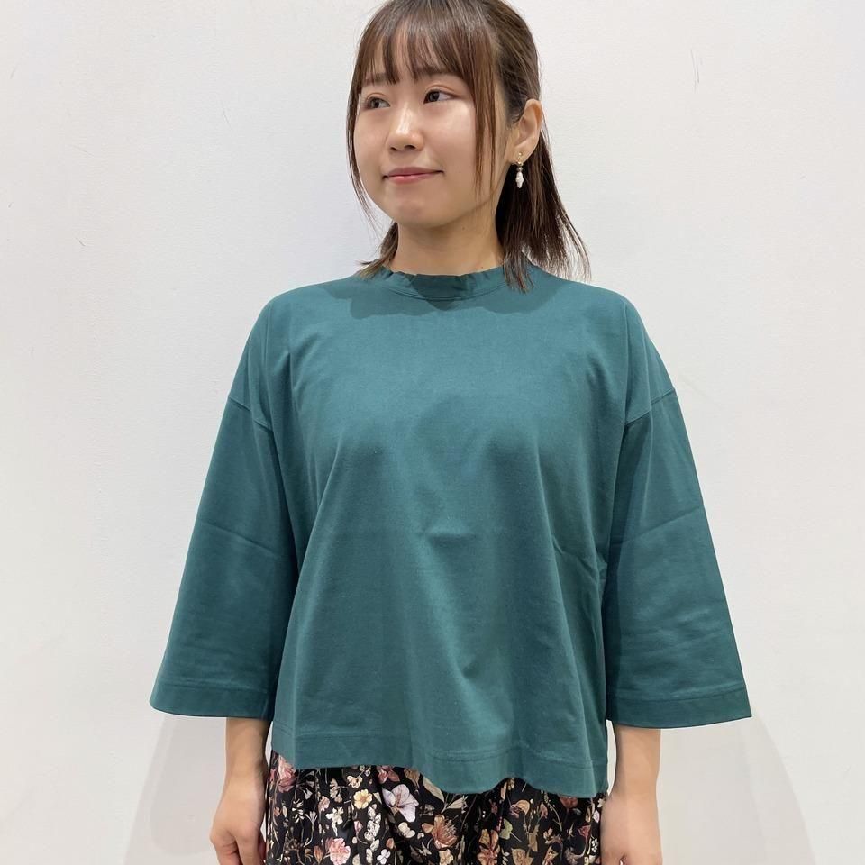しなやかな風合いで優しい肌触りと伸縮の良い天竺ジャージーの七分袖クルーネックTee。
