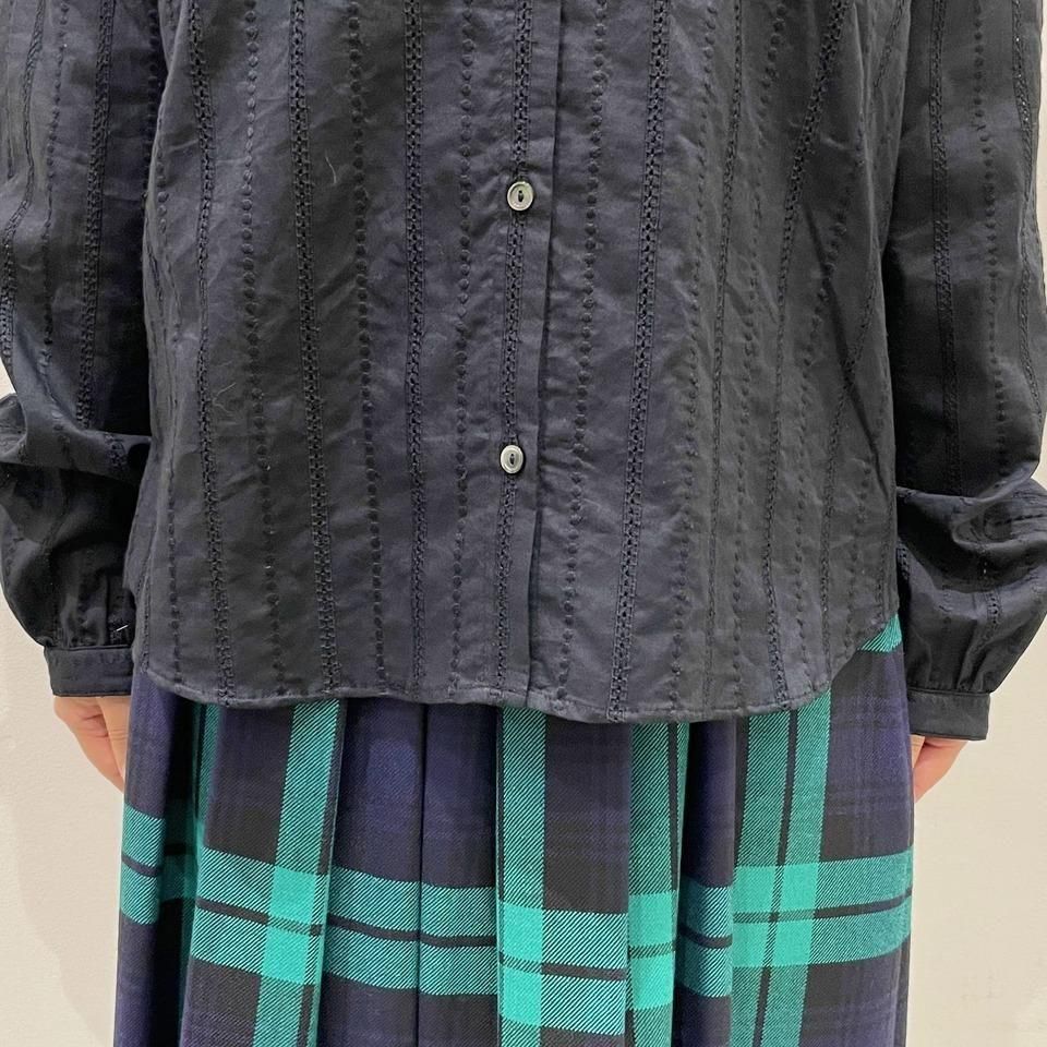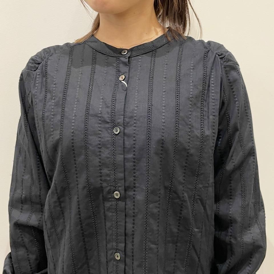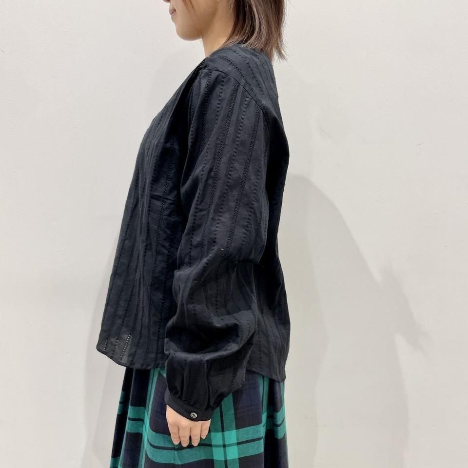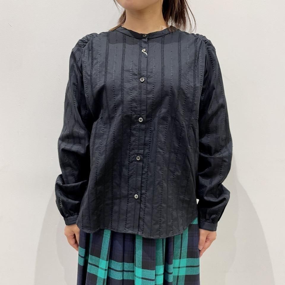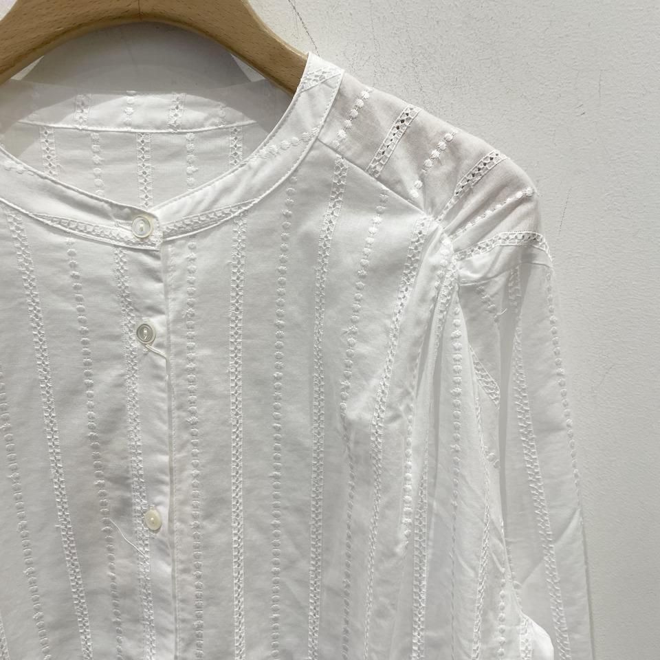 国内生産による高技術で繊細な刺繍が施された小花柄 / ストライプ柄の【スミレ】ブラウス。