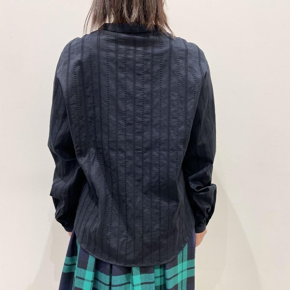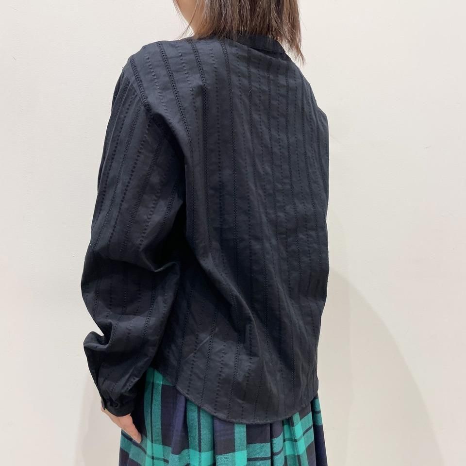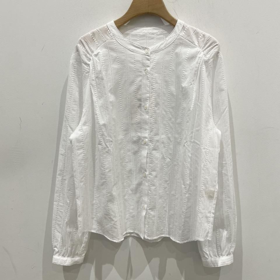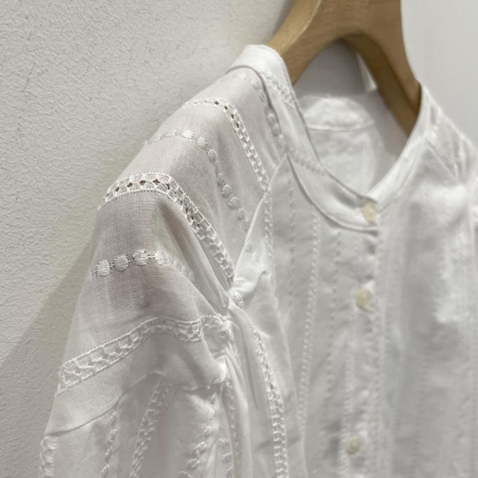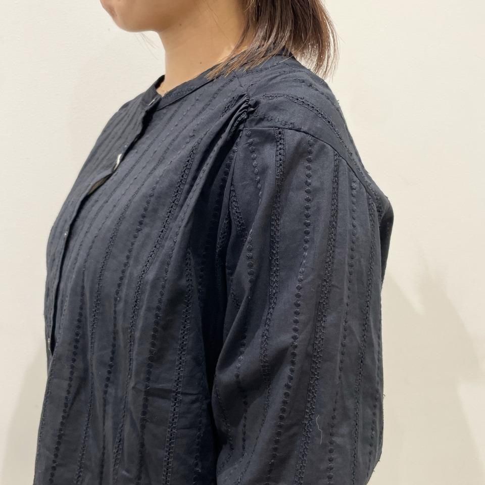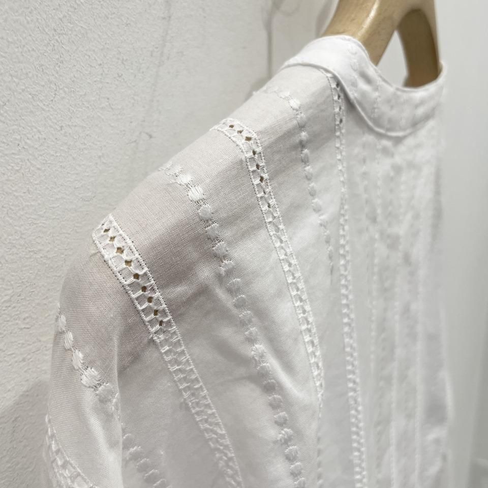 国内生産による高技術で繊細な刺繍が施された小花柄 / ストライプ柄の【スミレ】ブラウス。