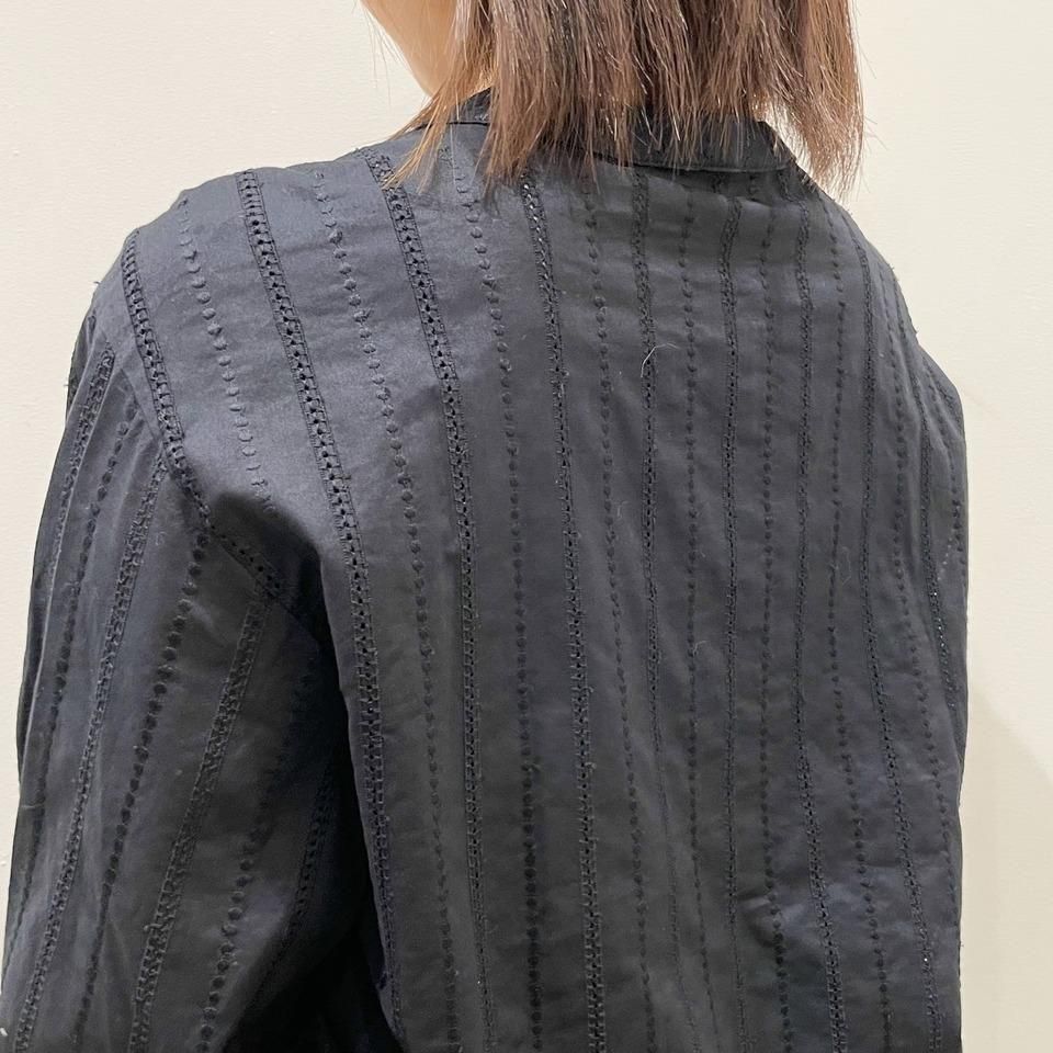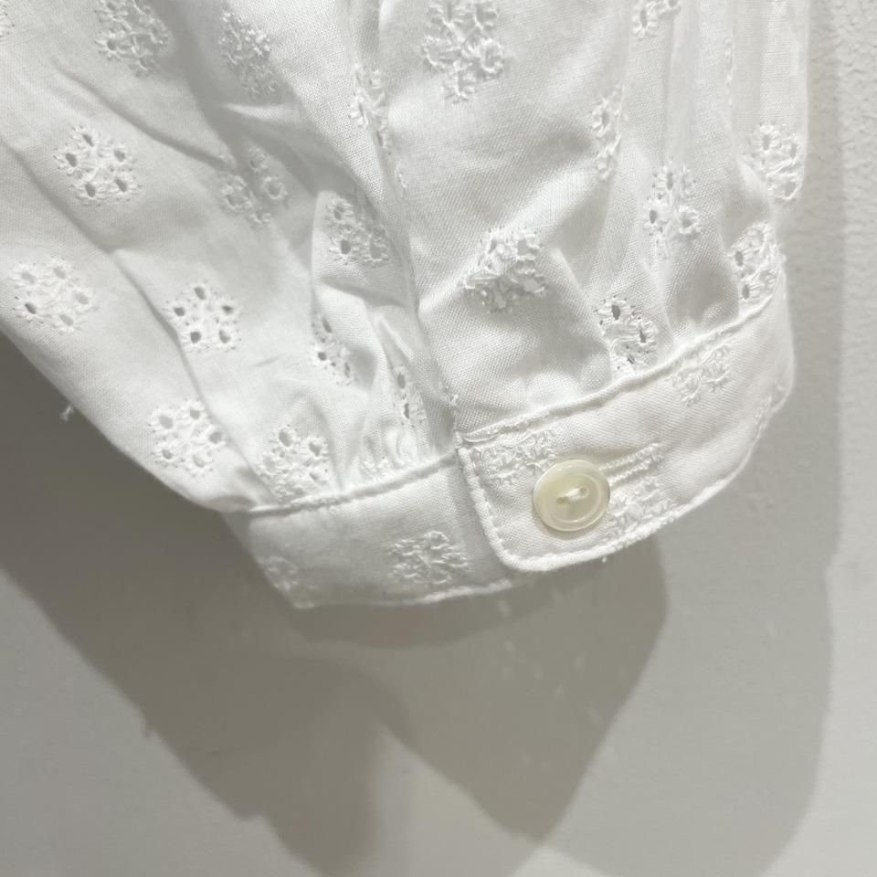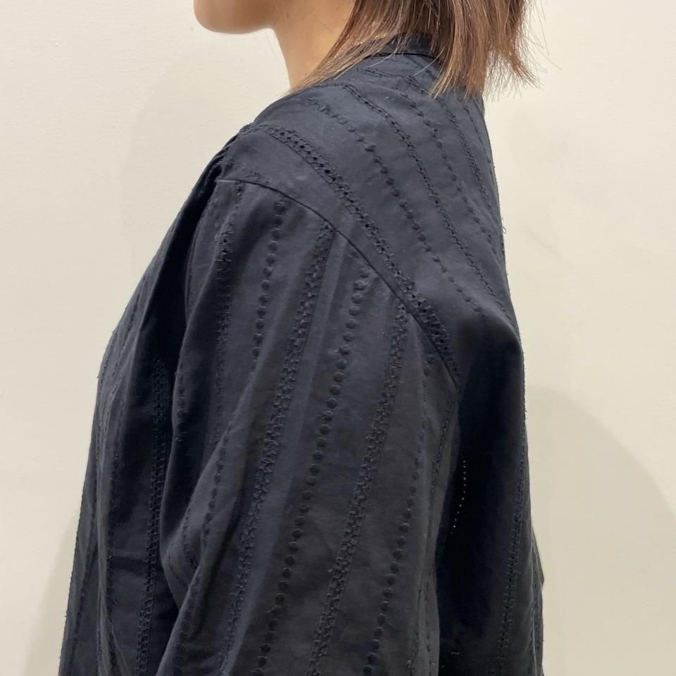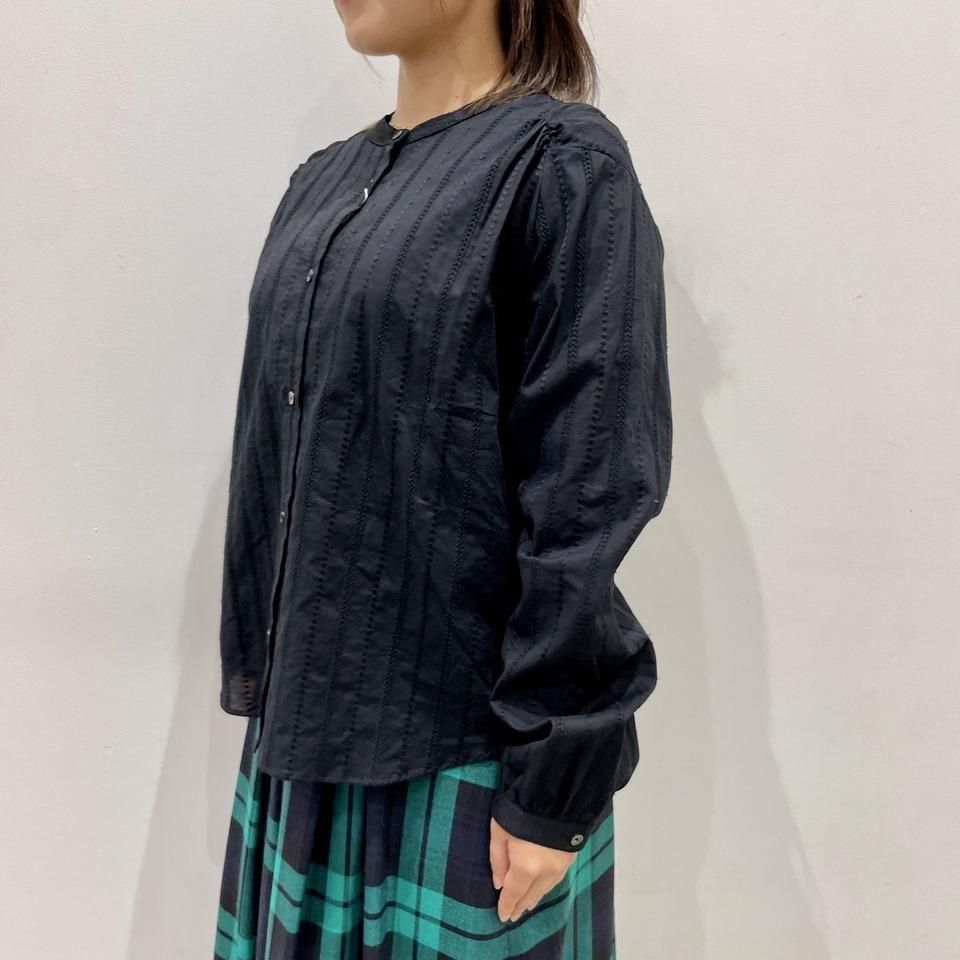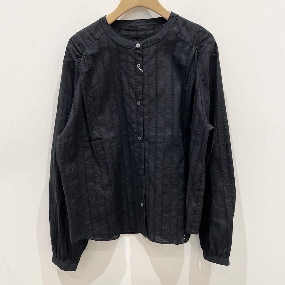 国内生産による高技術で繊細な刺繍が施された小花柄 / ストライプ柄の【スミレ】ブラウス。