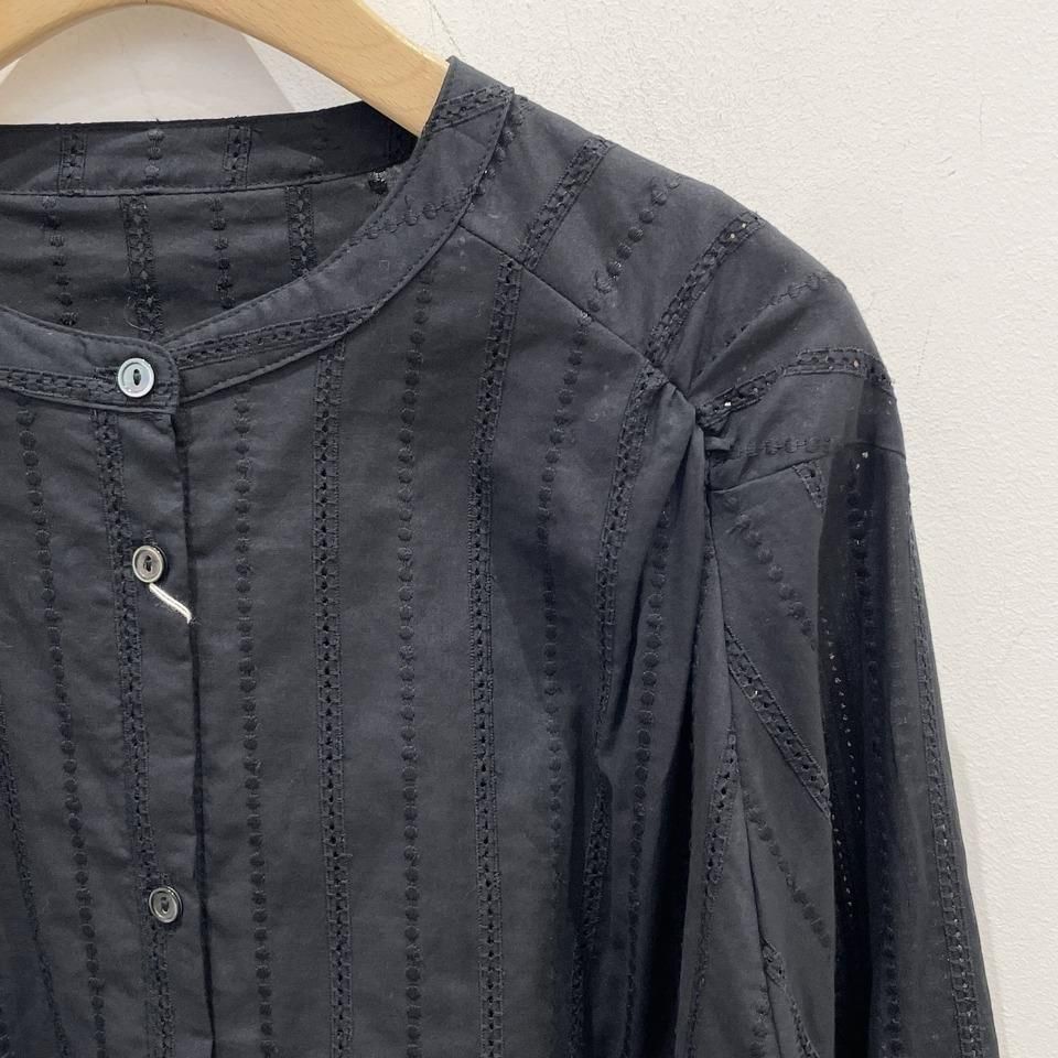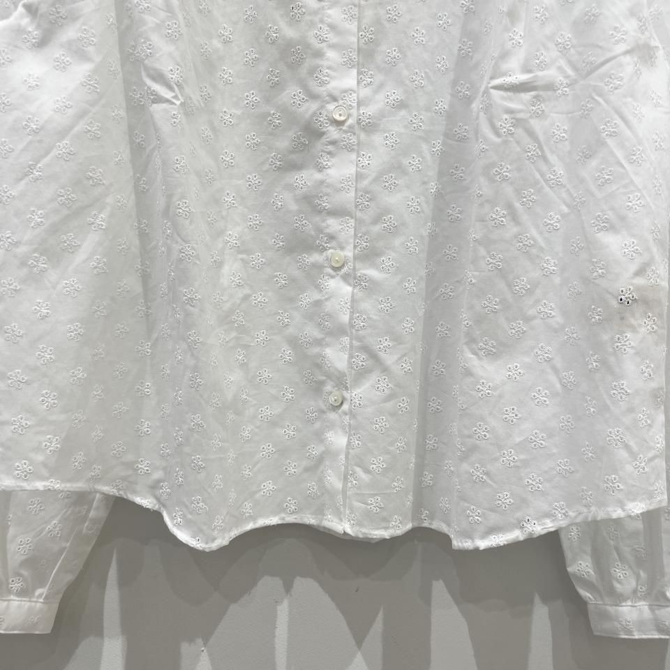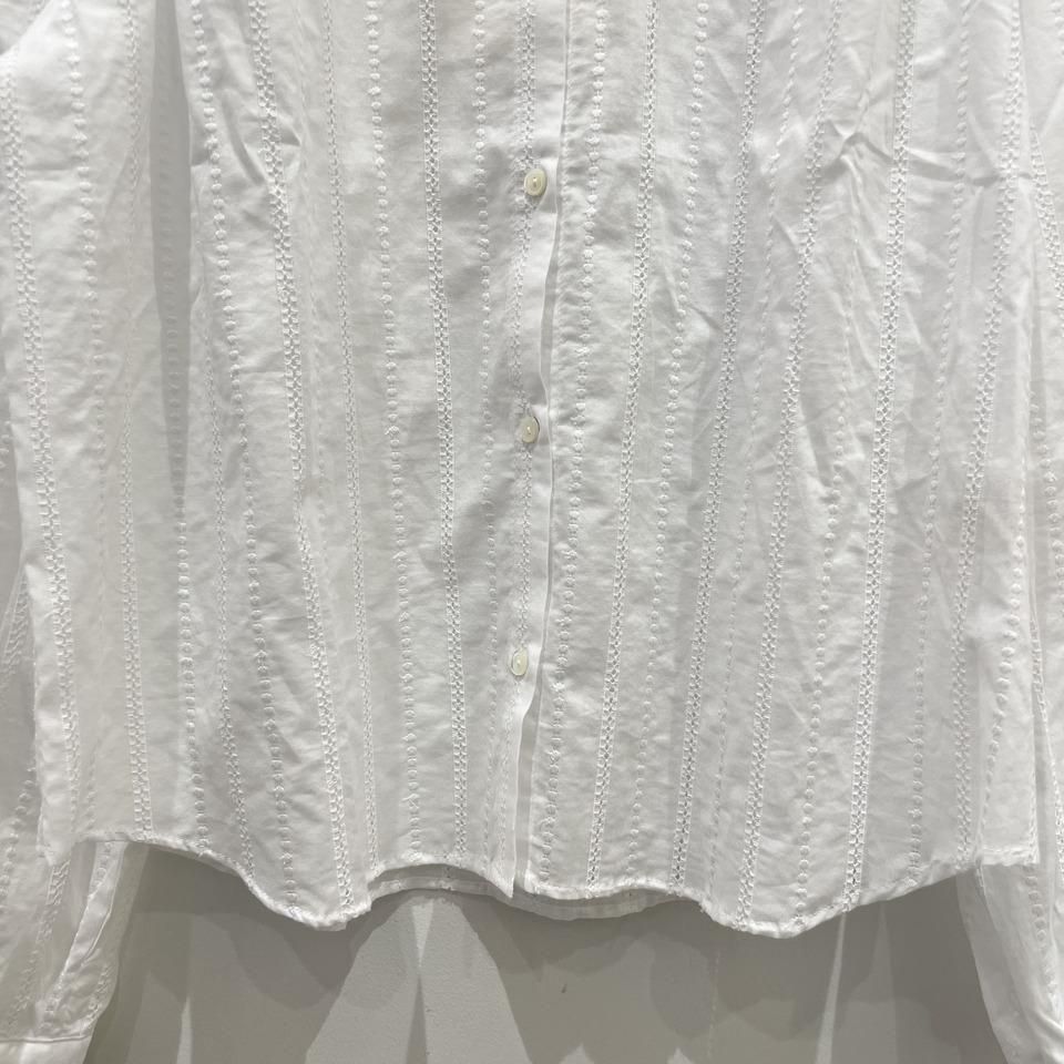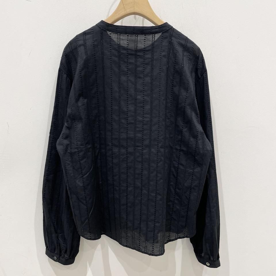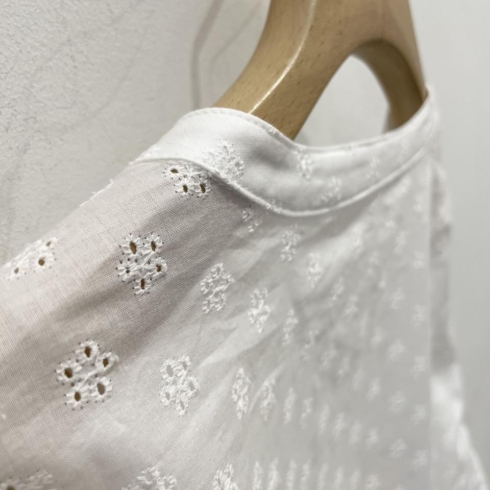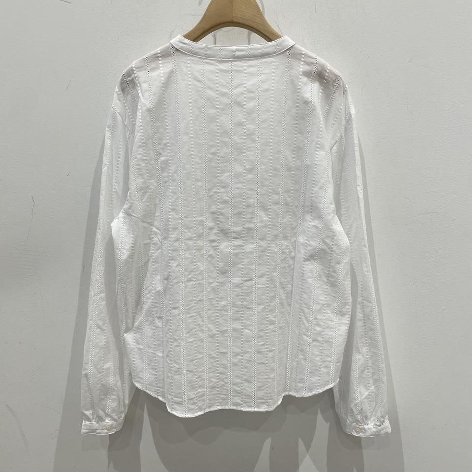 国内生産による高技術で繊細な刺繍が施された小花柄 / ストライプ柄の【スミレ】ブラウス。