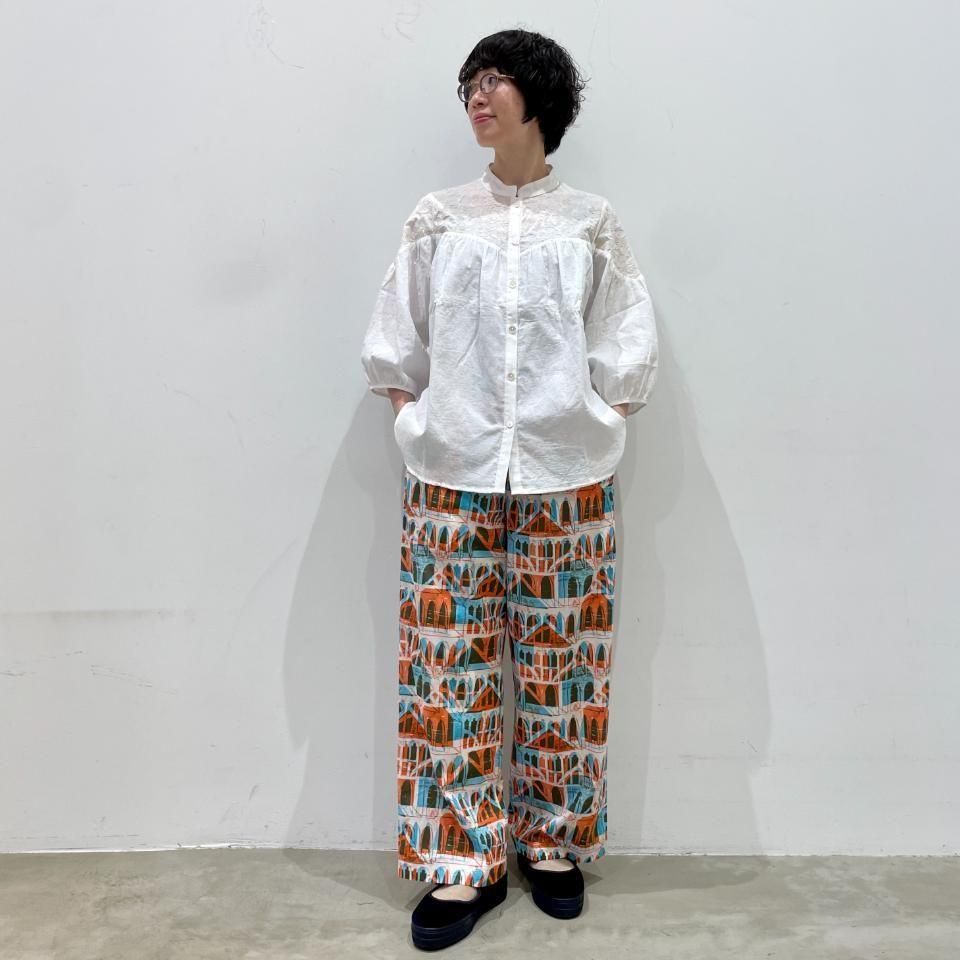 ゆったりした身頃にコンパクトなマオカラーの襟元でお顔周りが引き締まります。
