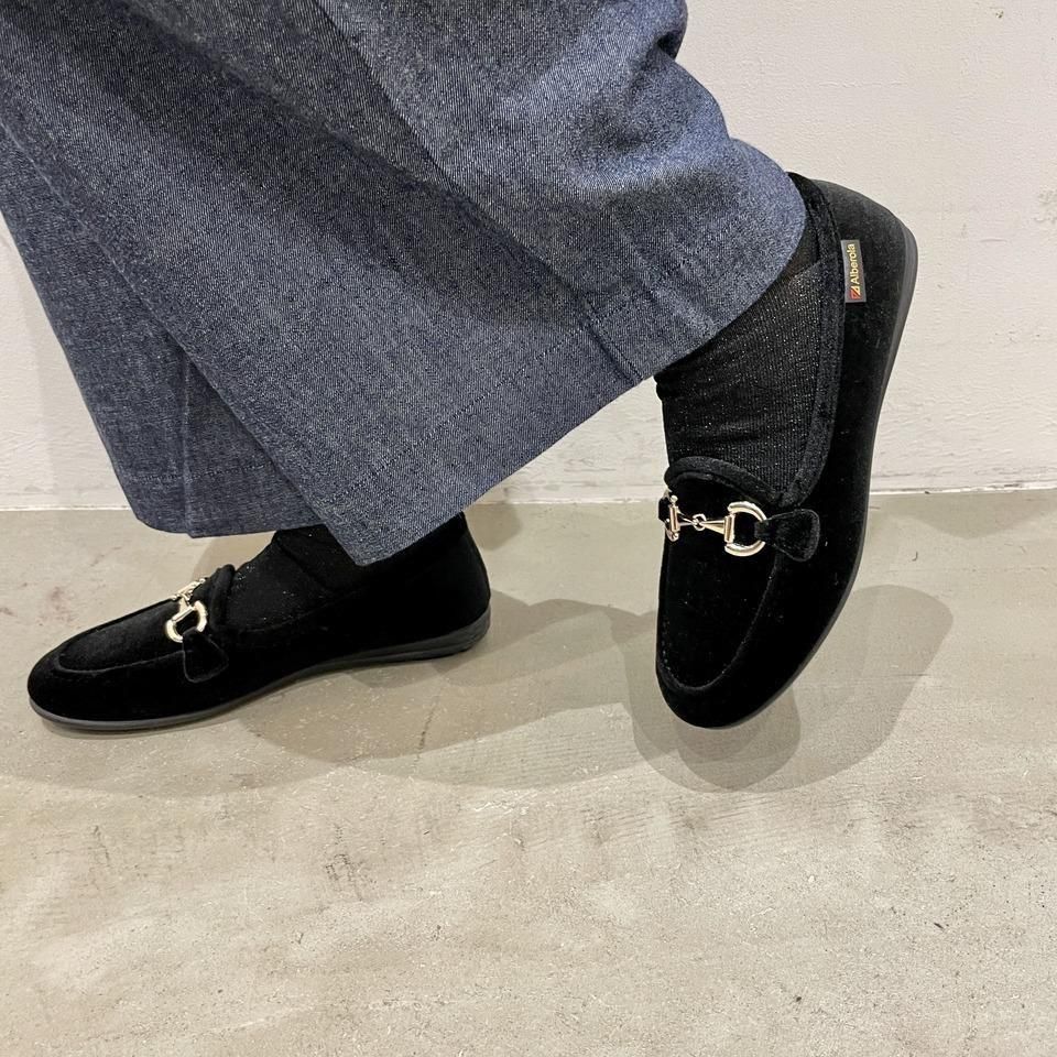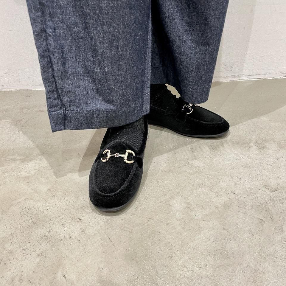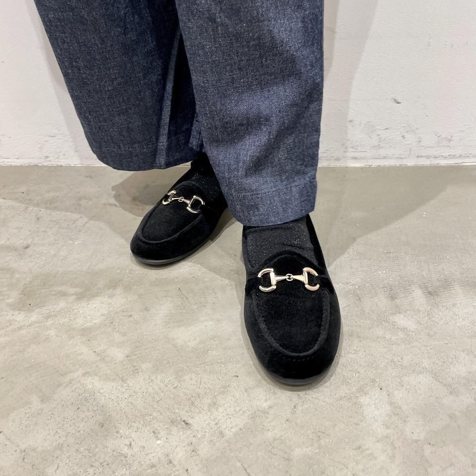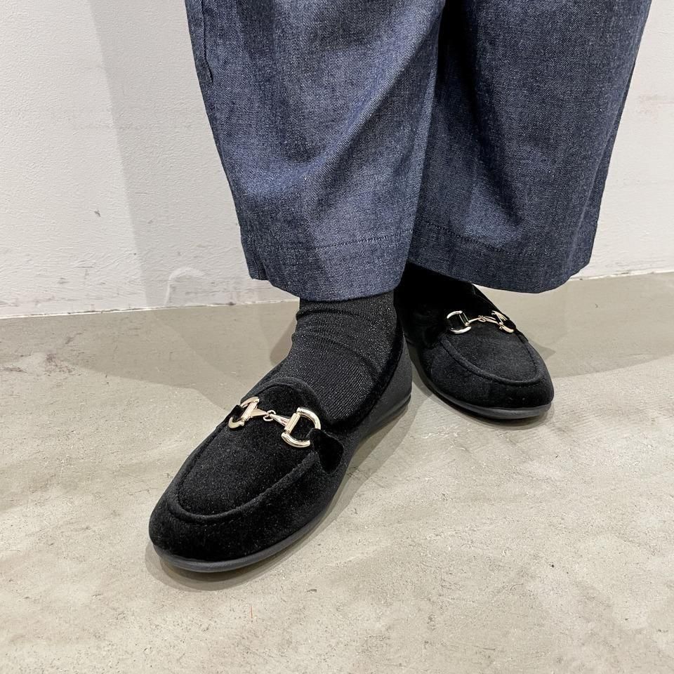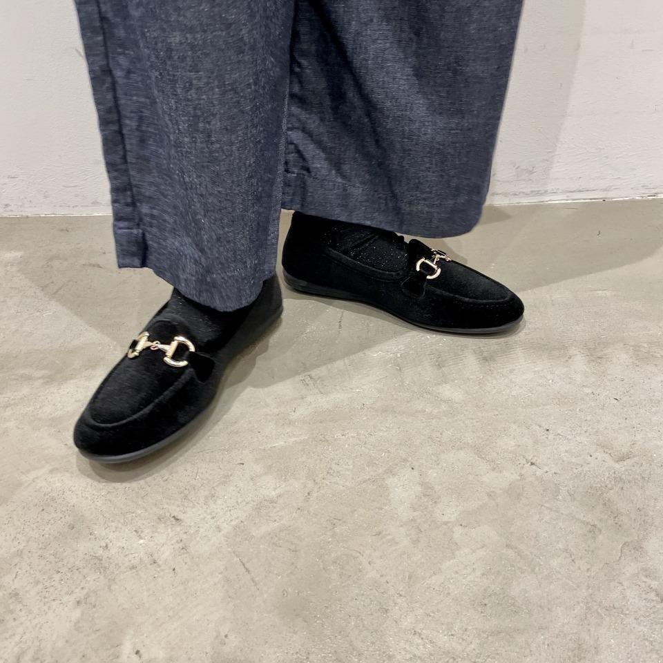 大人らしい上品な足元を演出してくれるベロアビットローファー。