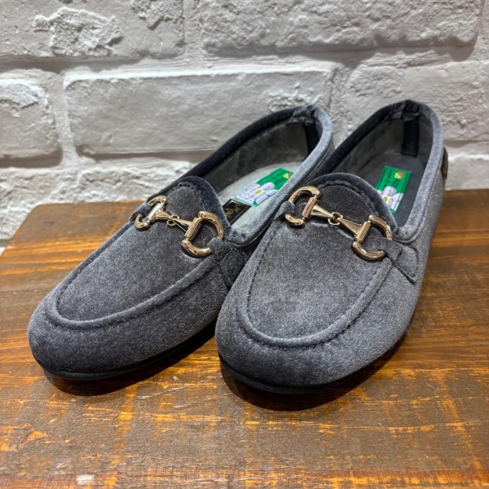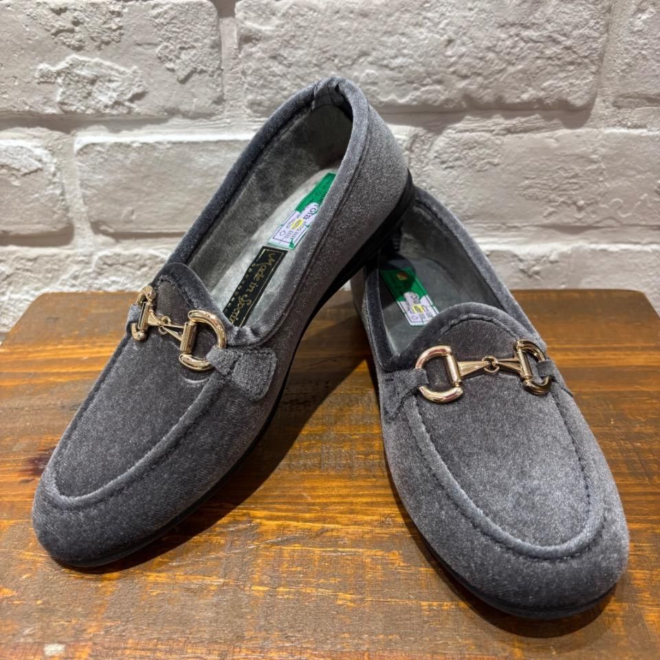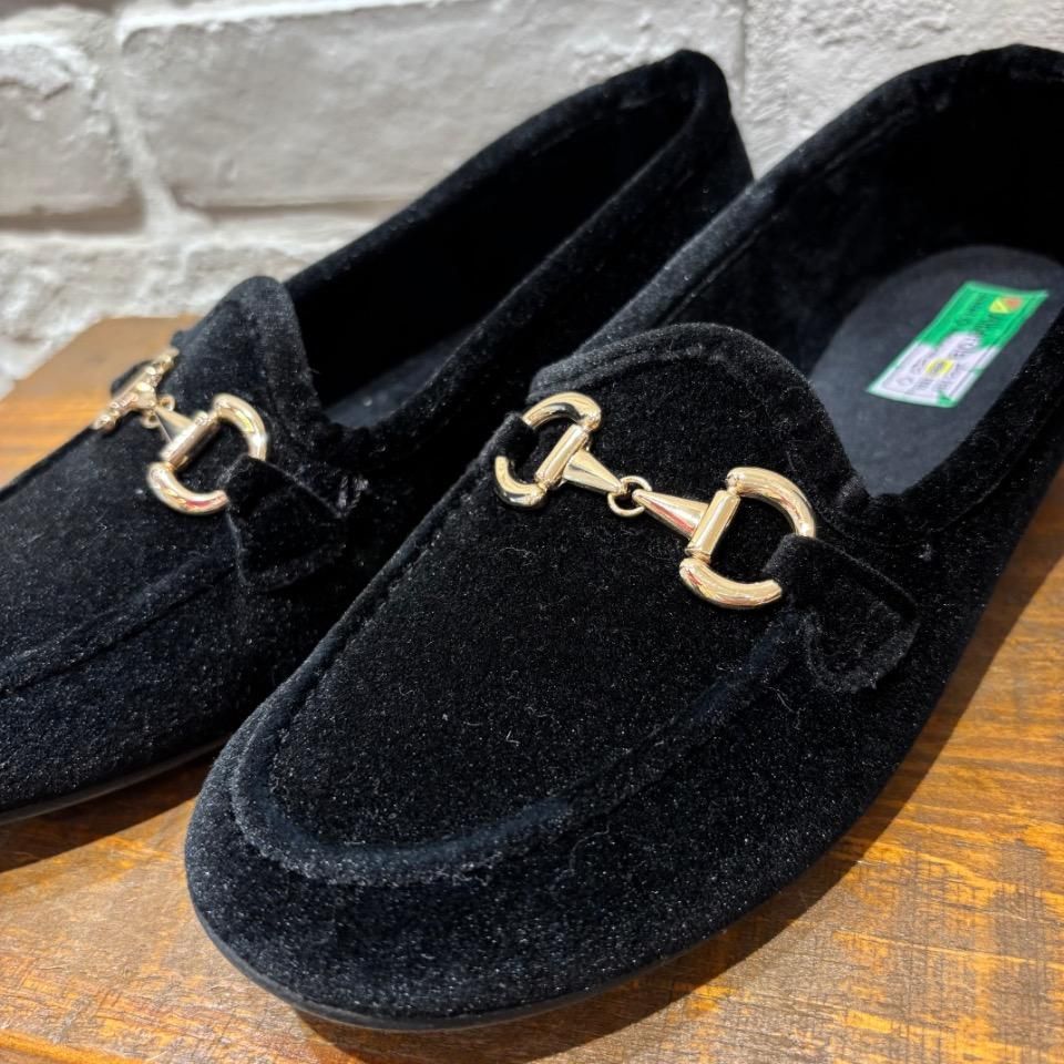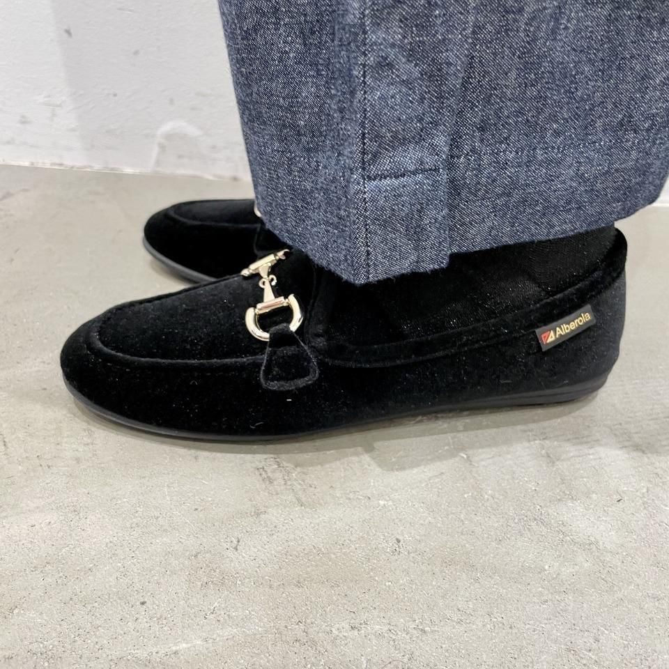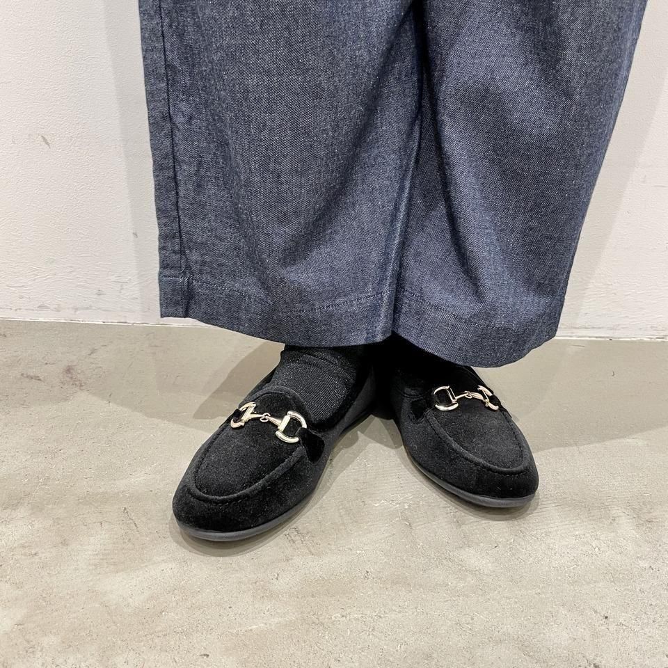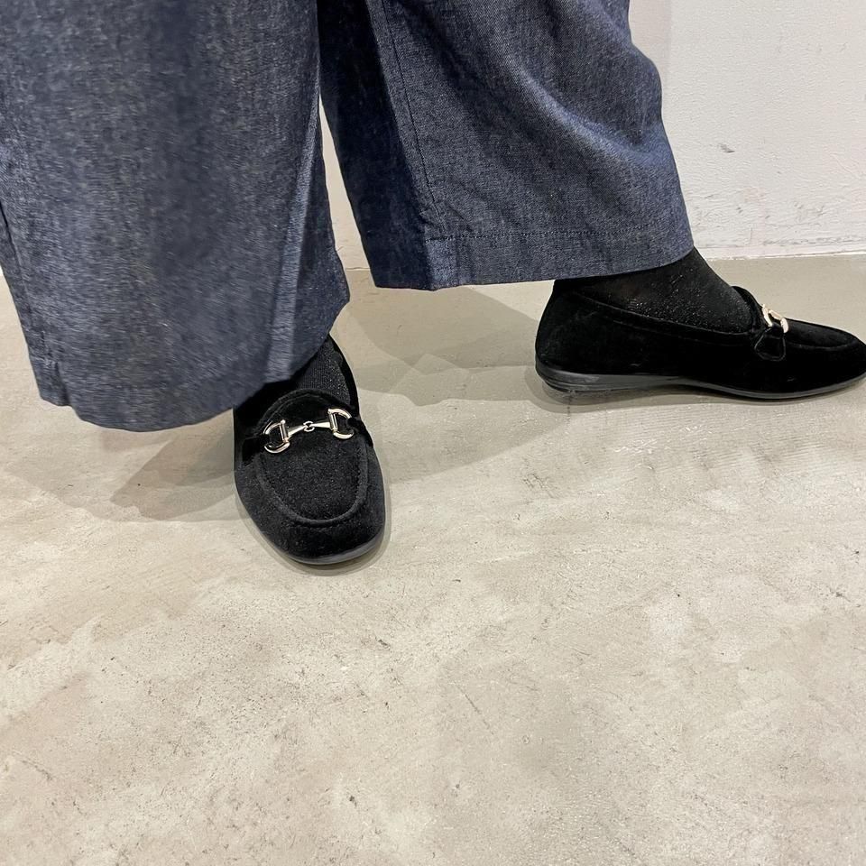 大人らしい上品な足元を演出してくれるベロアビットローファー。