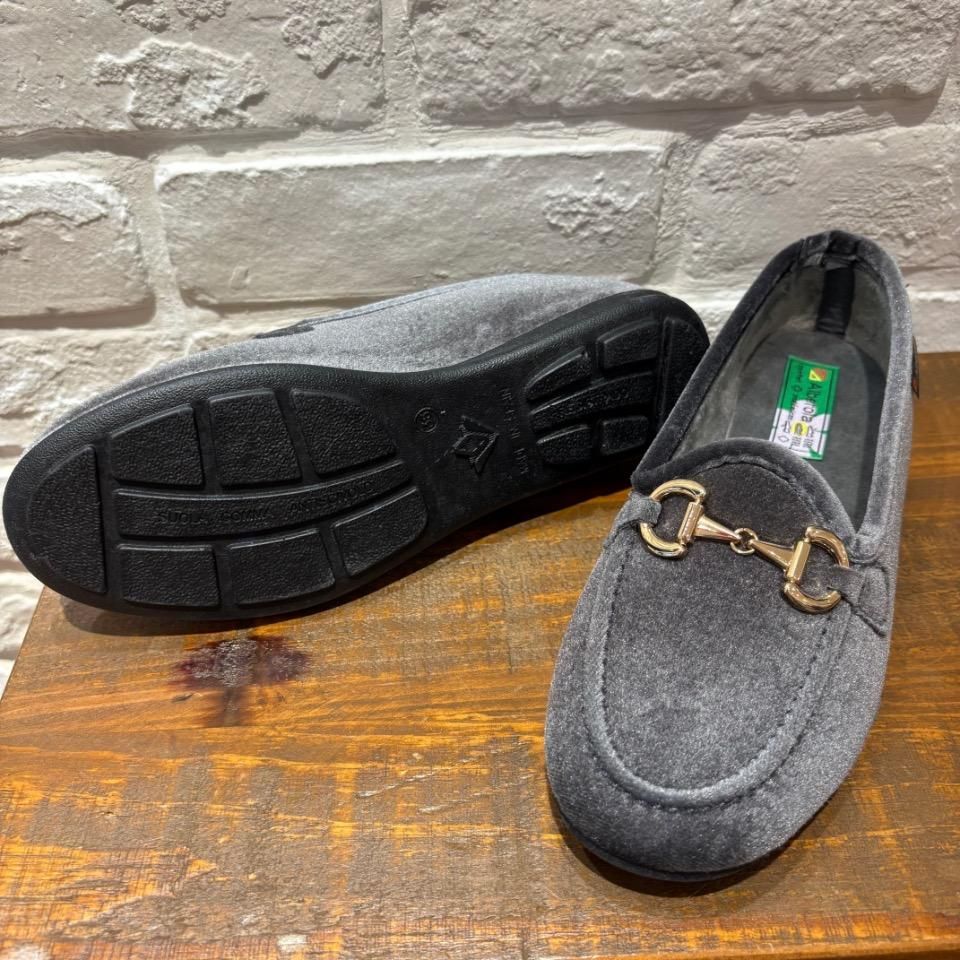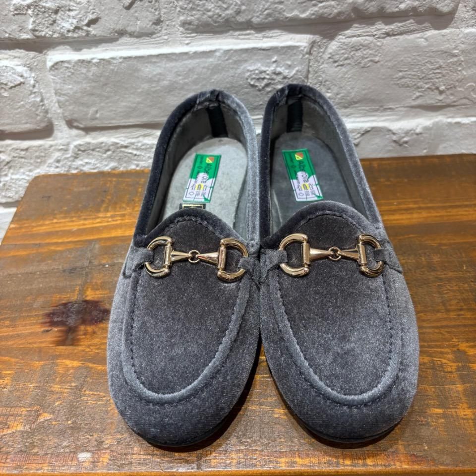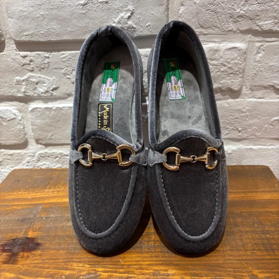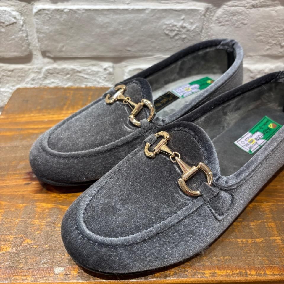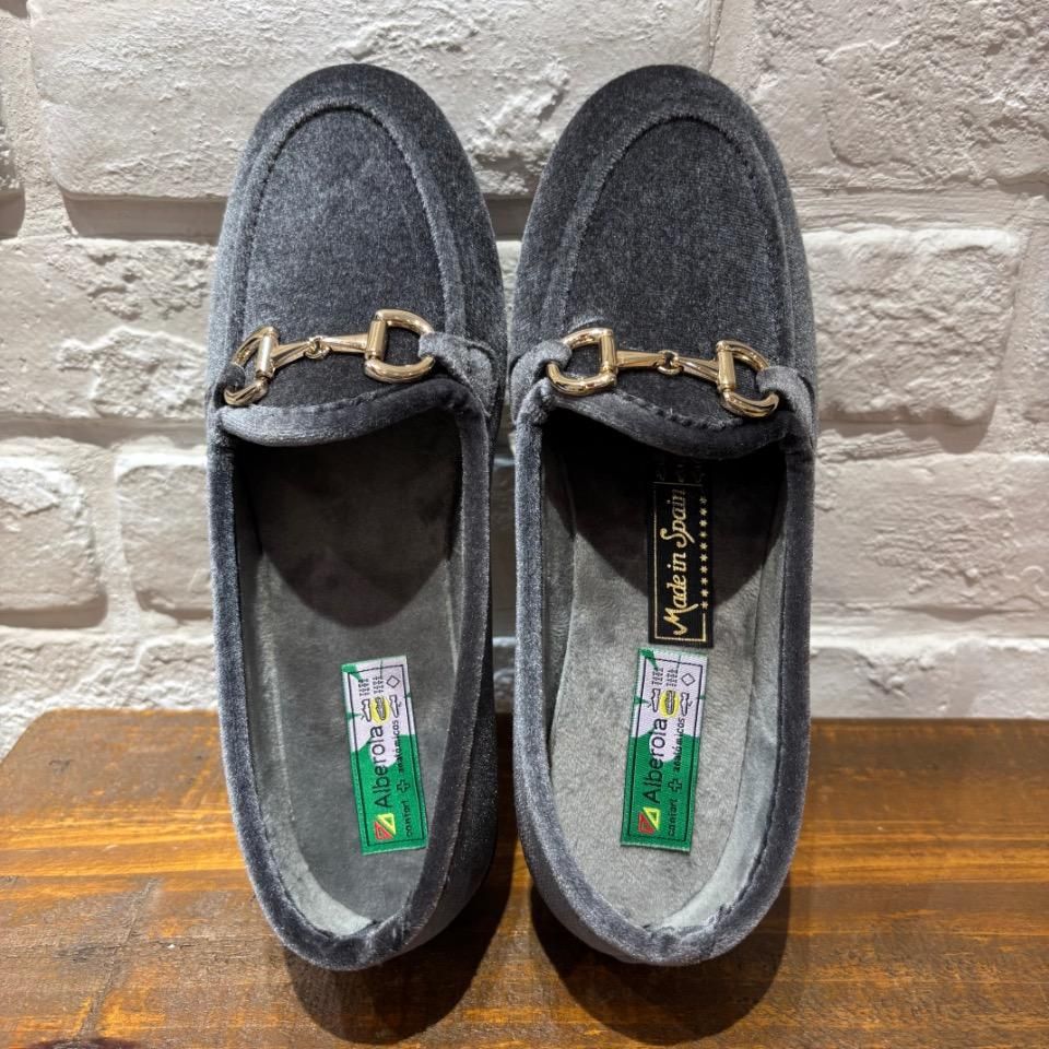 大人らしい上品な足元を演出してくれるベロアビットローファー。