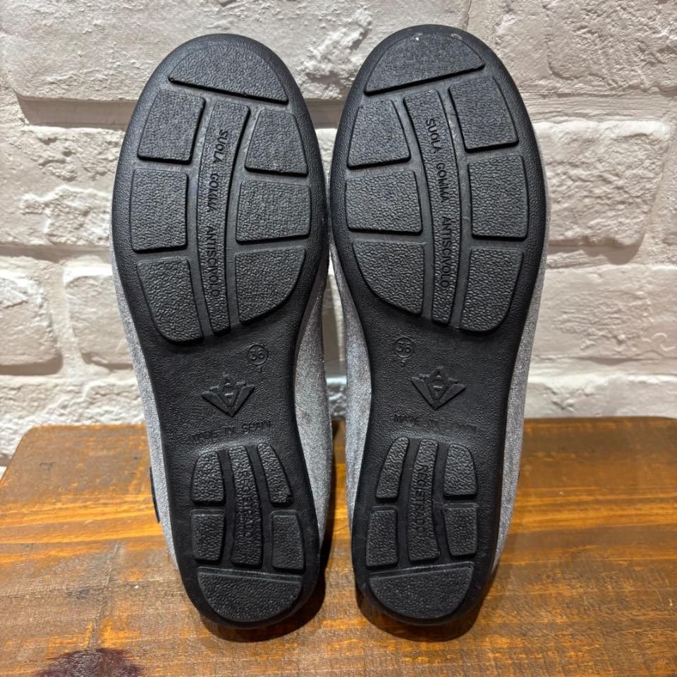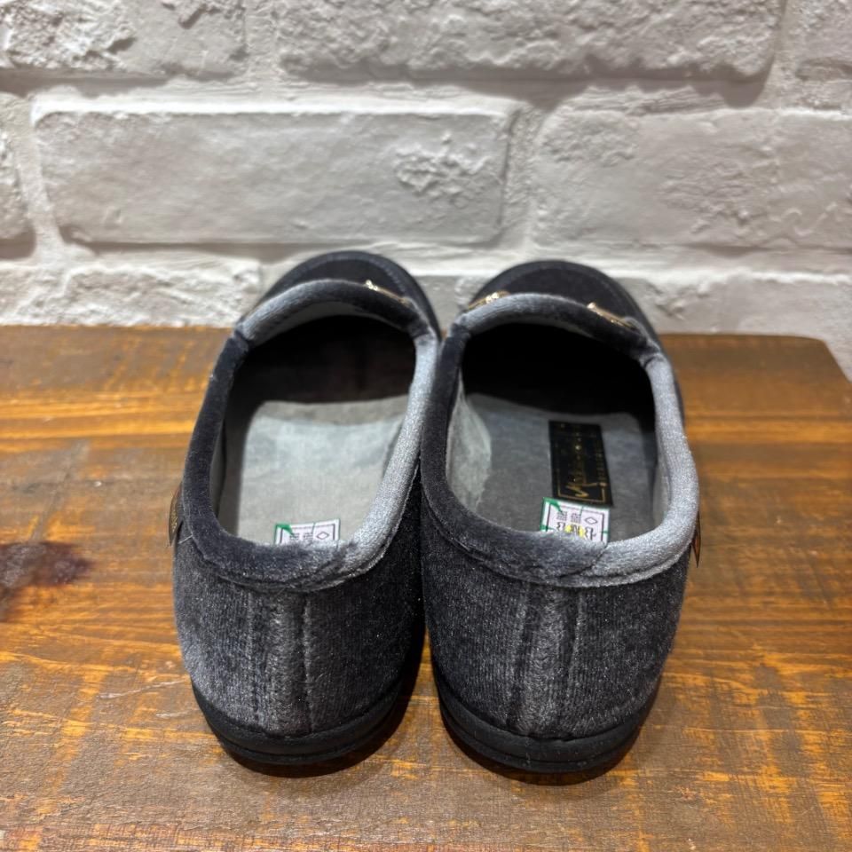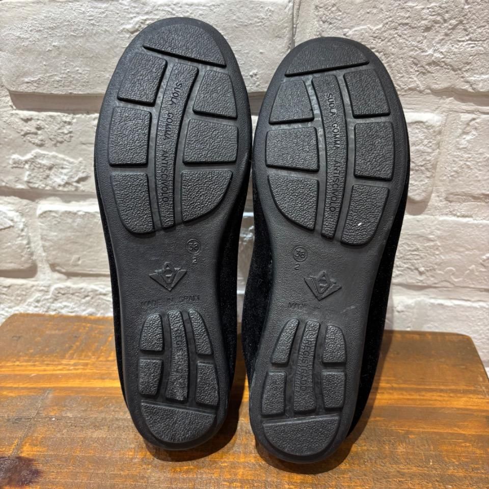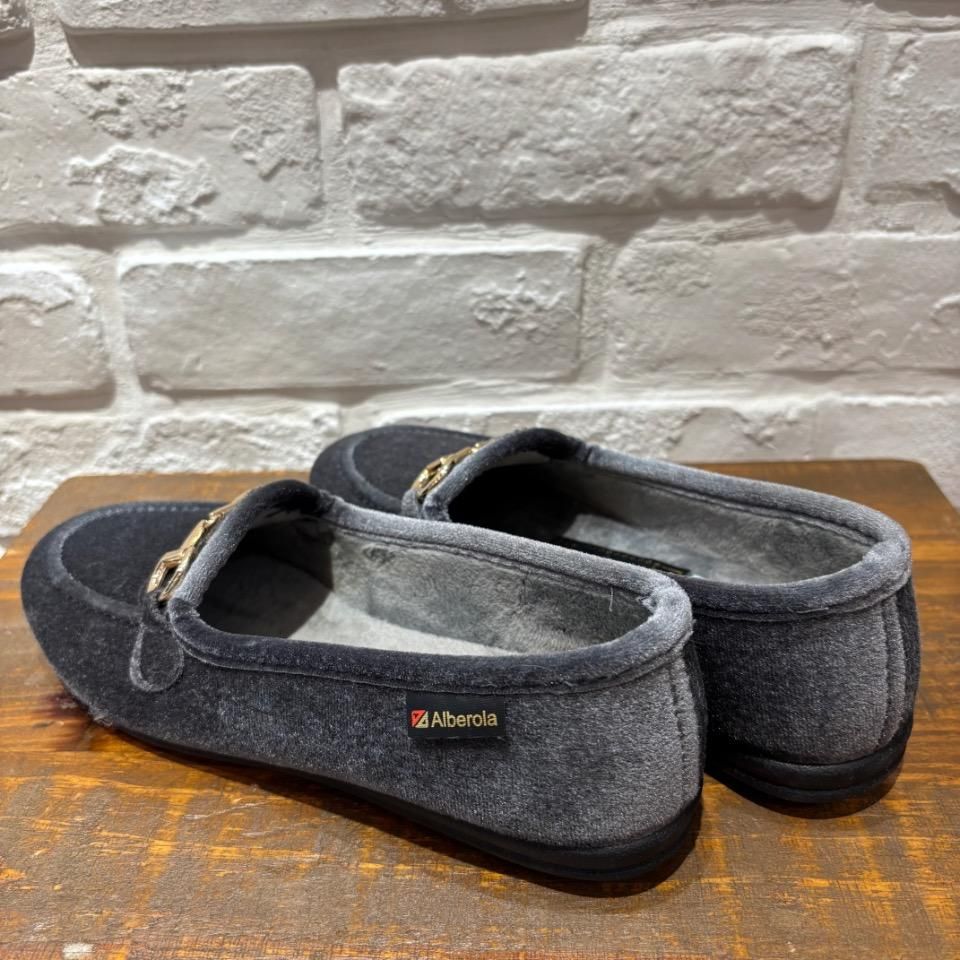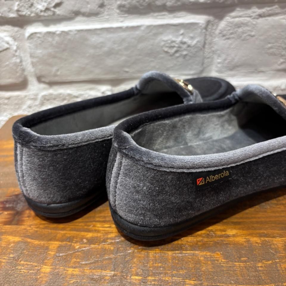 アッパーには光沢感が上品なベロア生地、アウトソールにはラバーを使用しています。