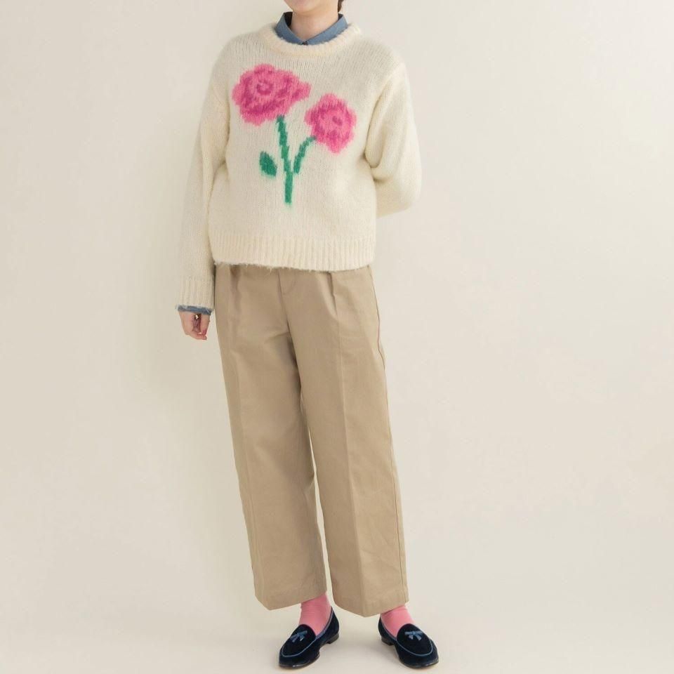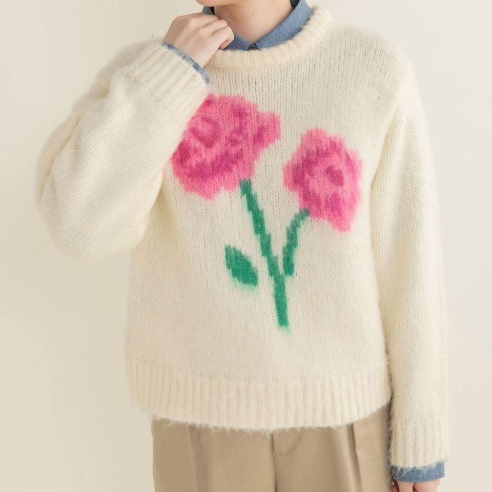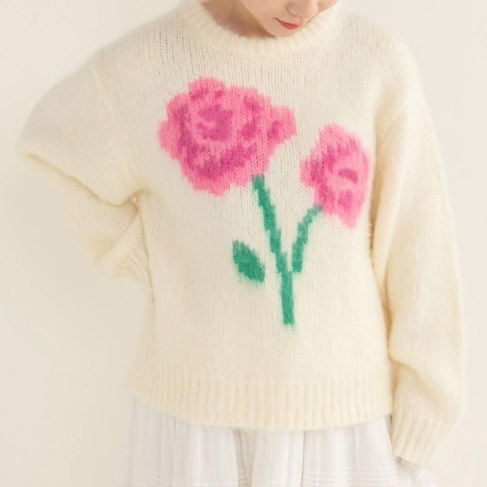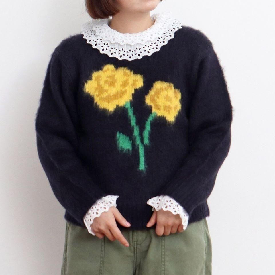花モチーフ起毛インターシャプルオーバー (0101KN016252) 正規取扱品