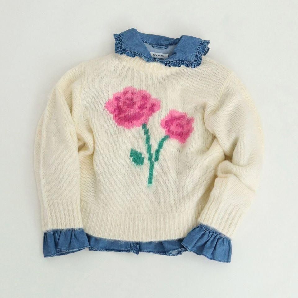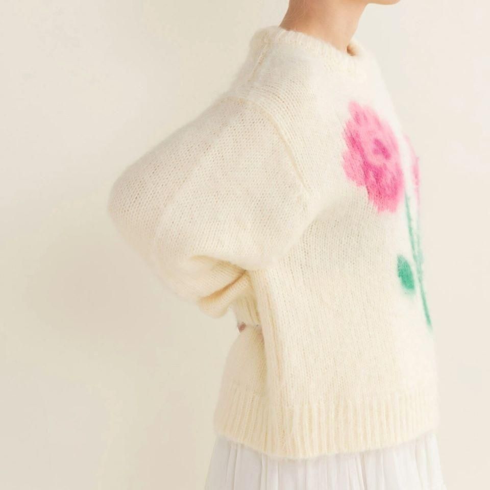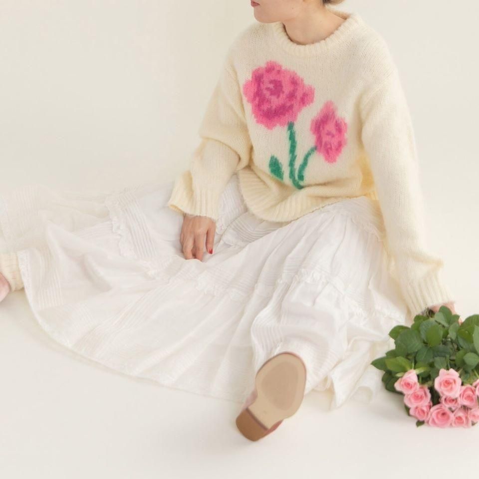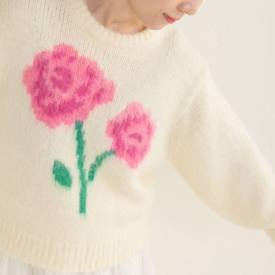 花モチーフ起毛インターシャプルオーバー (0101KN016252) 正規取扱品