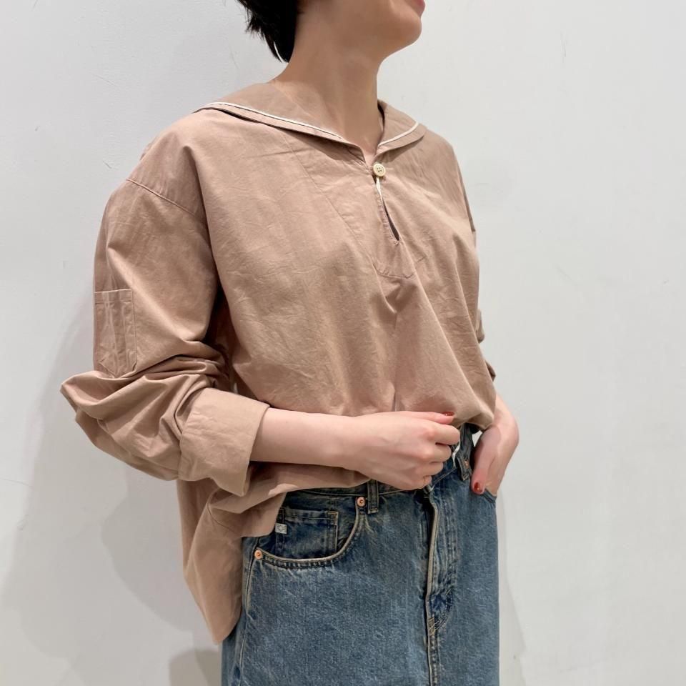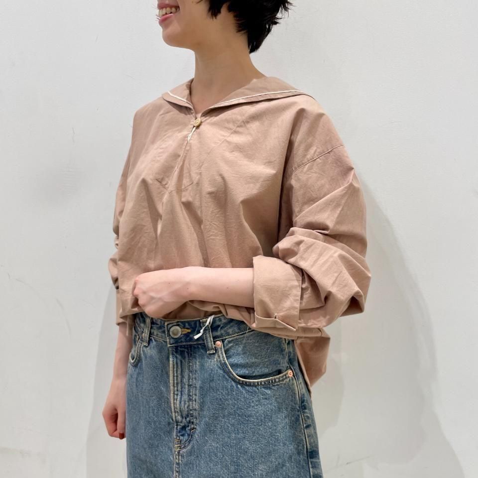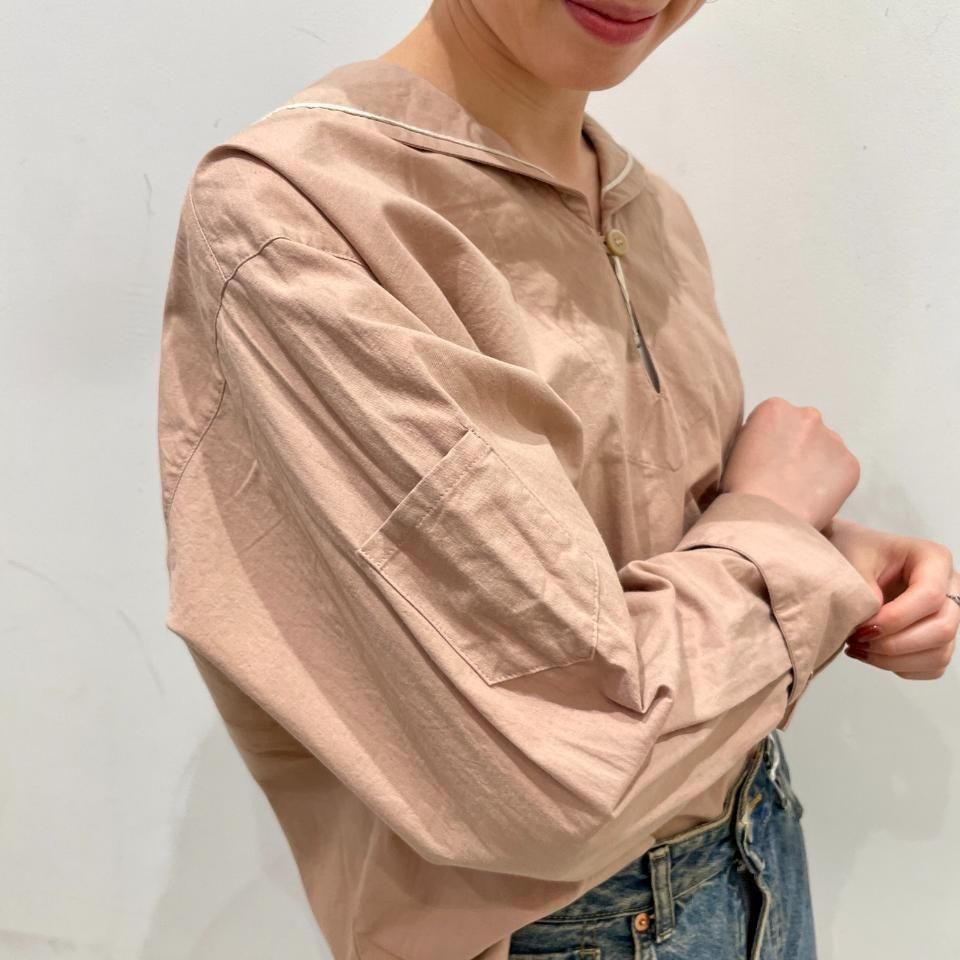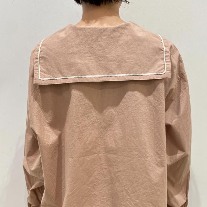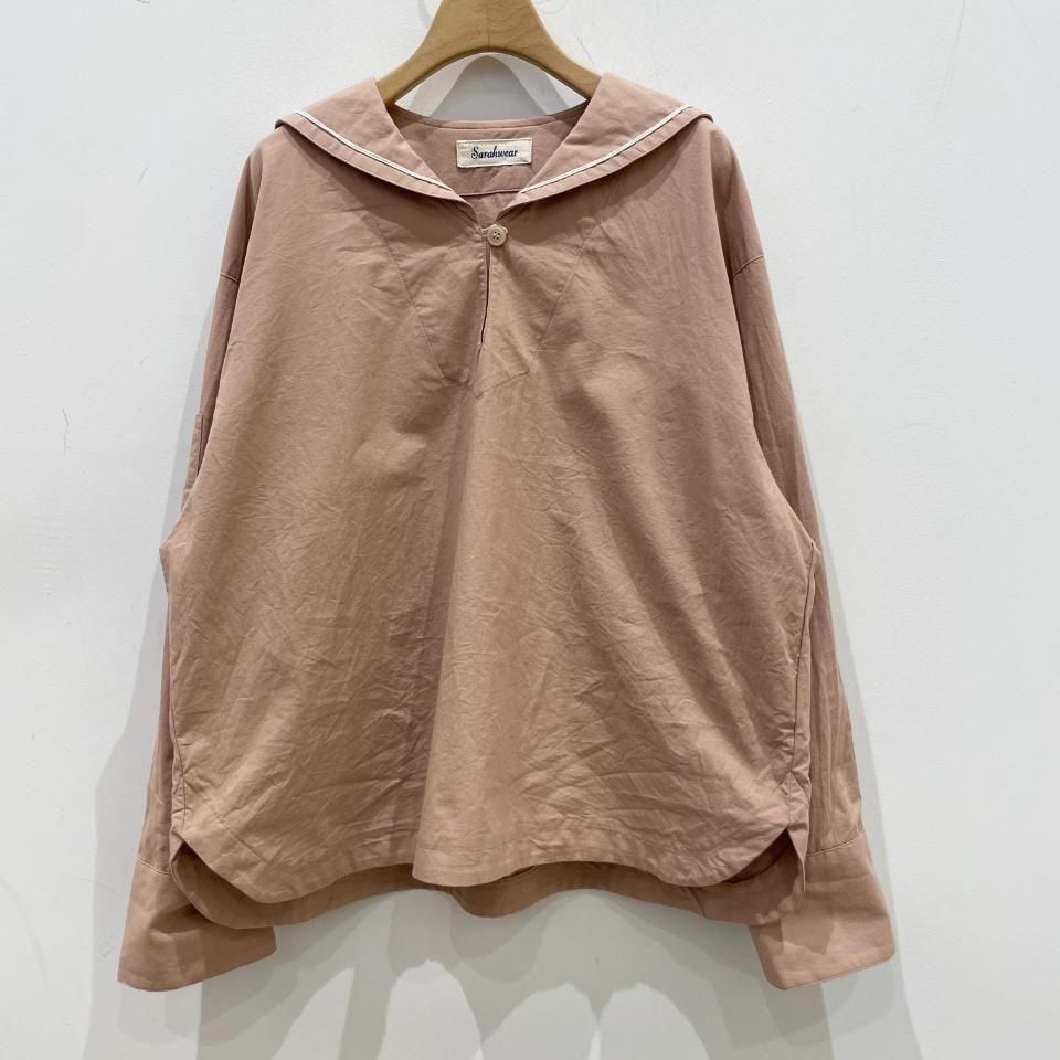 ダークピンクとインクブラックの落ち着いたスモーキーカラーのセーラ―カラーシャツ。