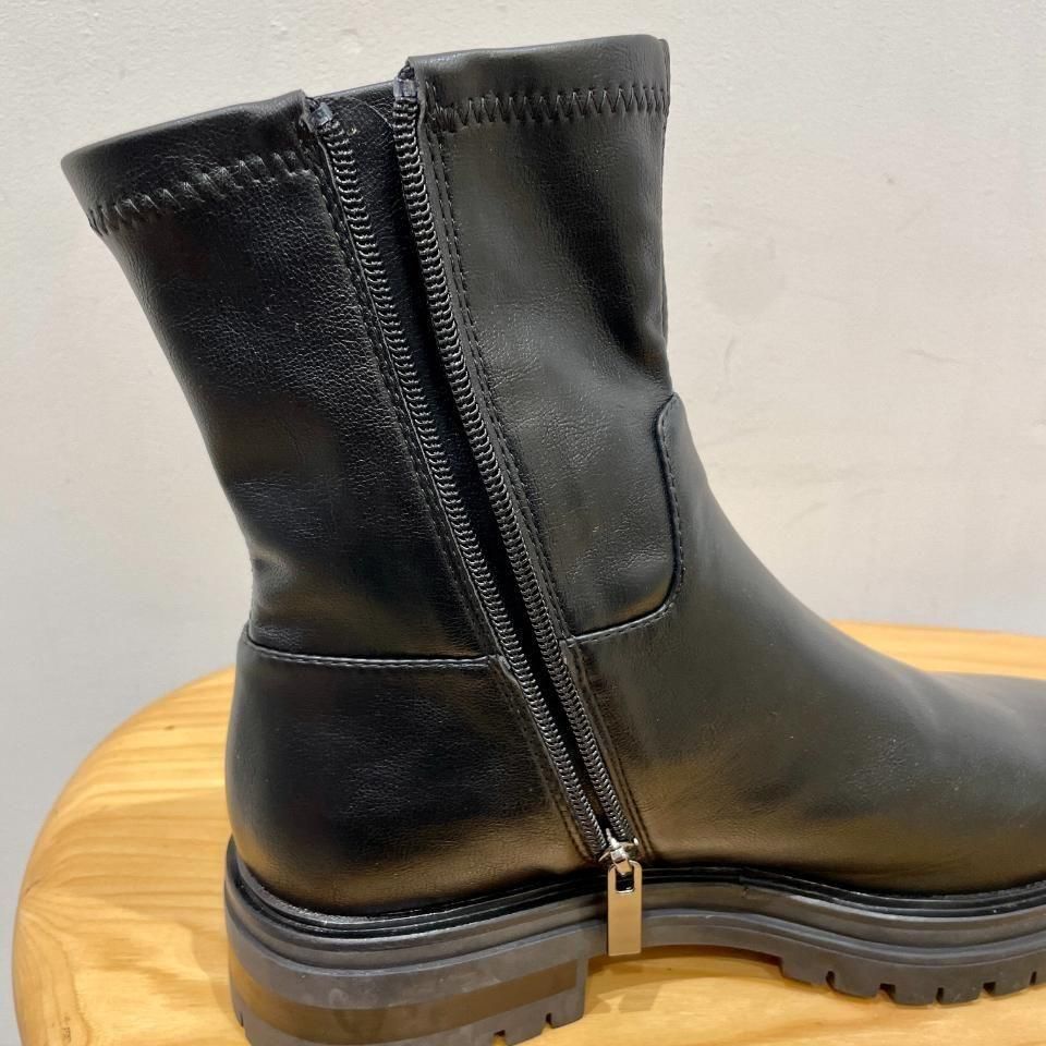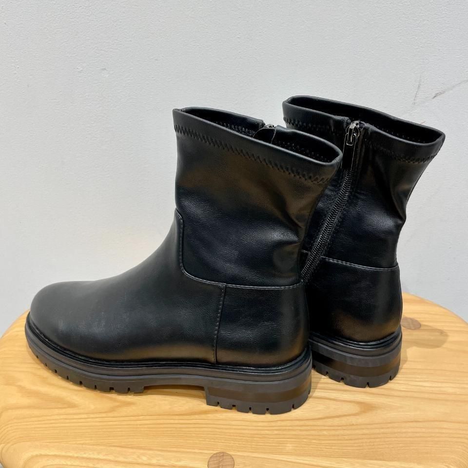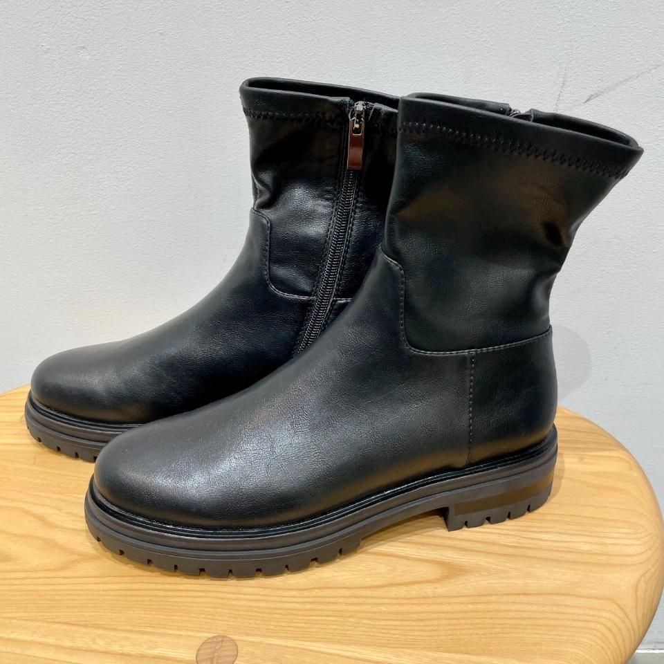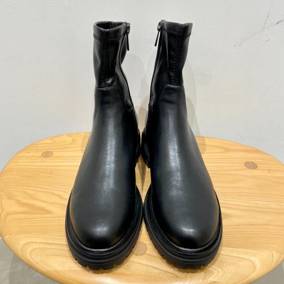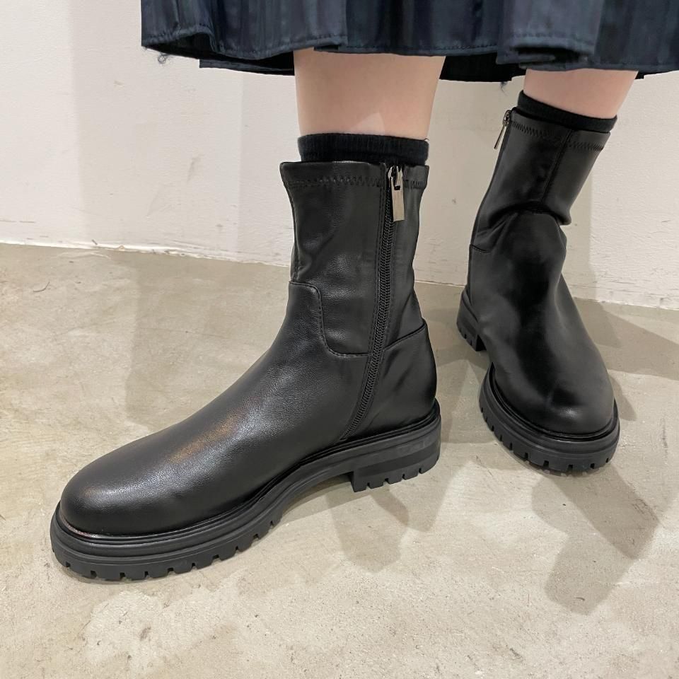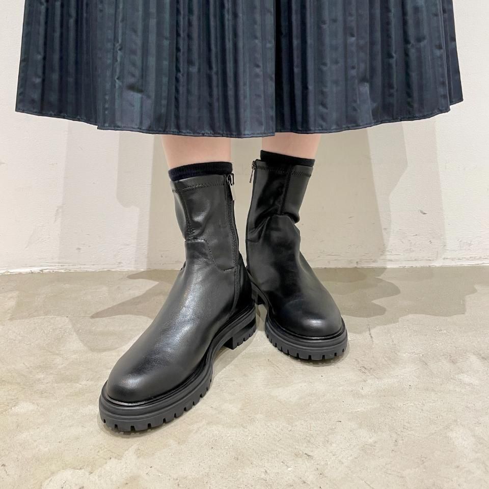 スッキリとした見た目かつ歩きやすいミディアムブーツ。
