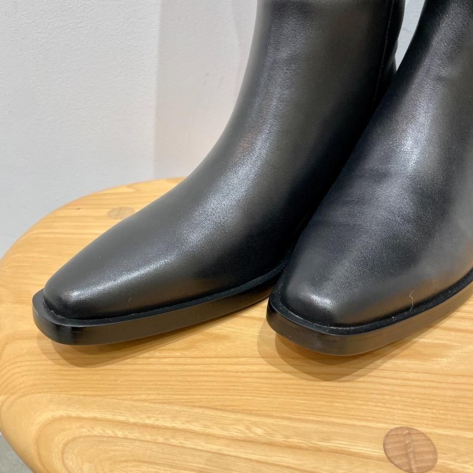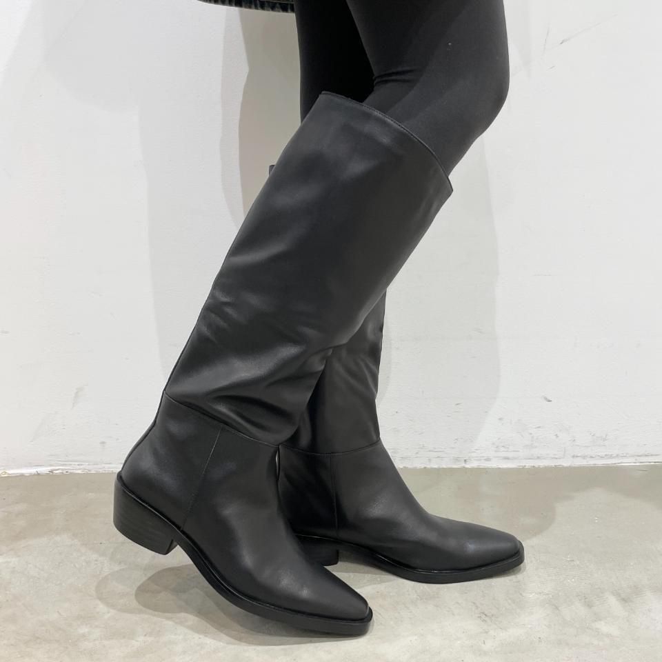 足元をすっきりと見せてくれるシャープなポインテッドトゥと、安定感のある太めのヒールで