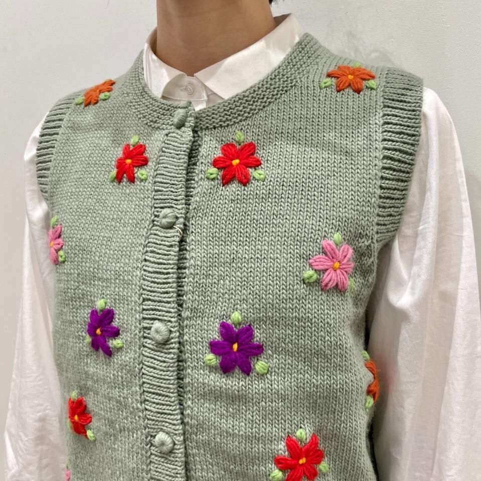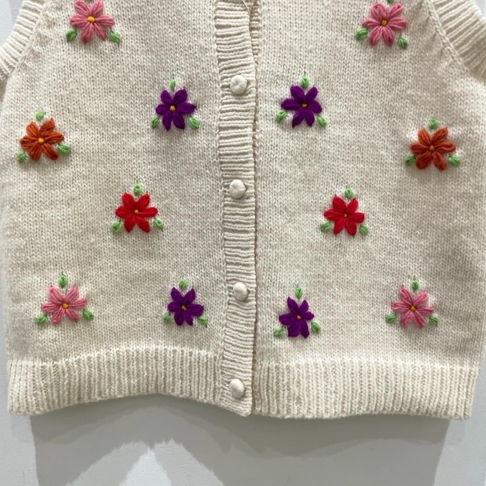 ペルーニットを代表するようなハンド刺繍が際立つ可愛いベストです。