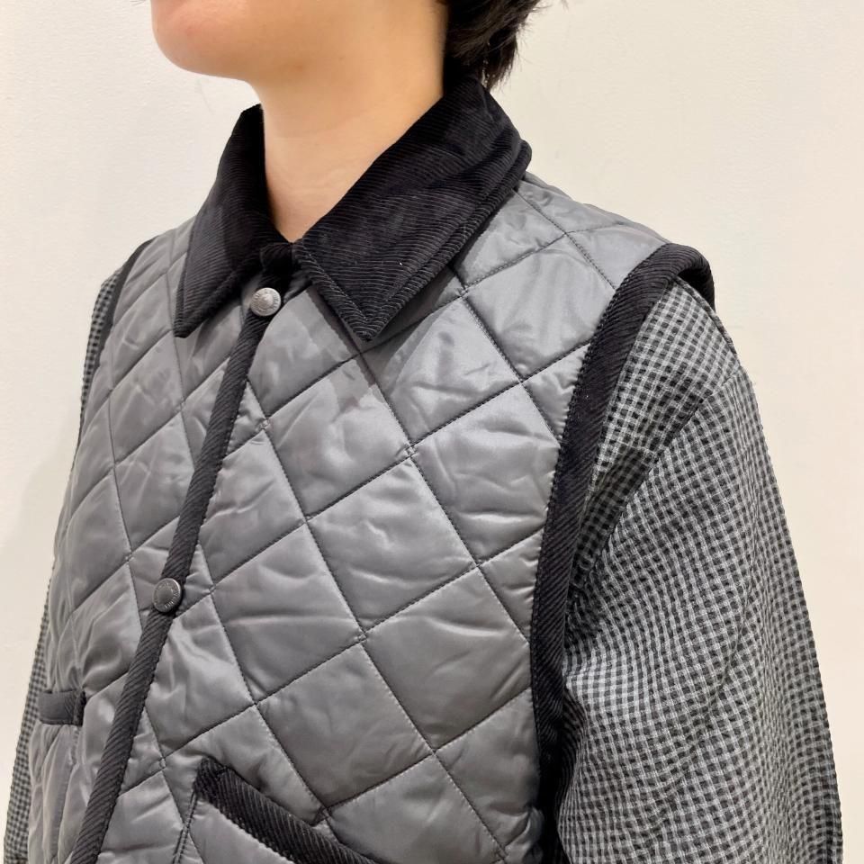 リサイクル・ポリエステル100%のラブンスター生地に、2インチダイヤモンドのキルティング加工を施し、オーガニックコットンのコーデュロイの襟とバインディング、使いやすいパッチポケット2つ、スタッドボタン留めとLavタブをあしらい仕上げました。