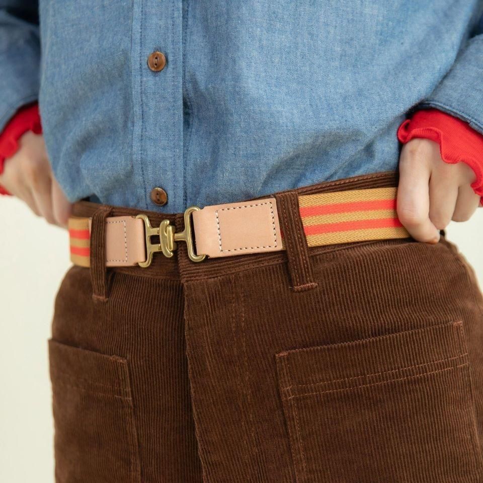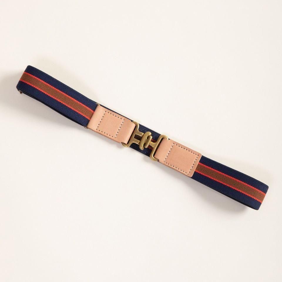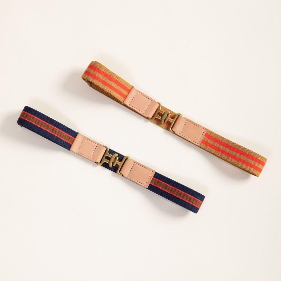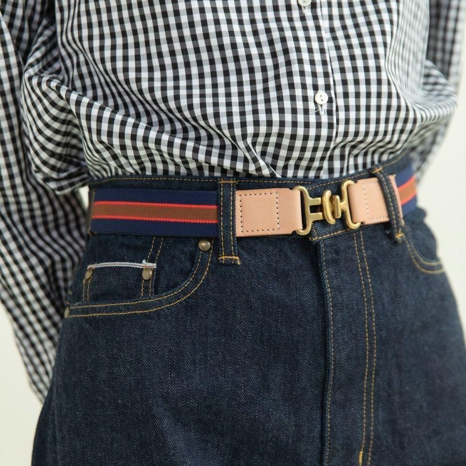トラッドな配色のゴムに牛革レザーを組み合わせたデザインベルト。