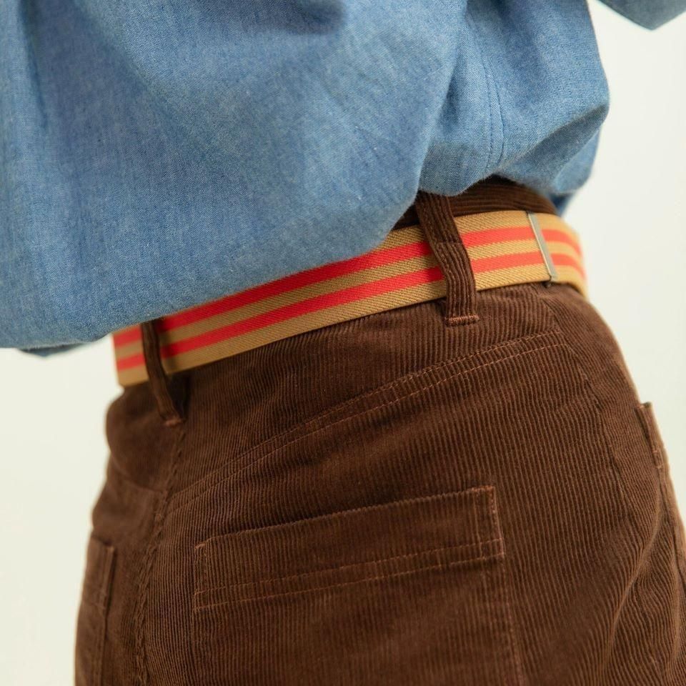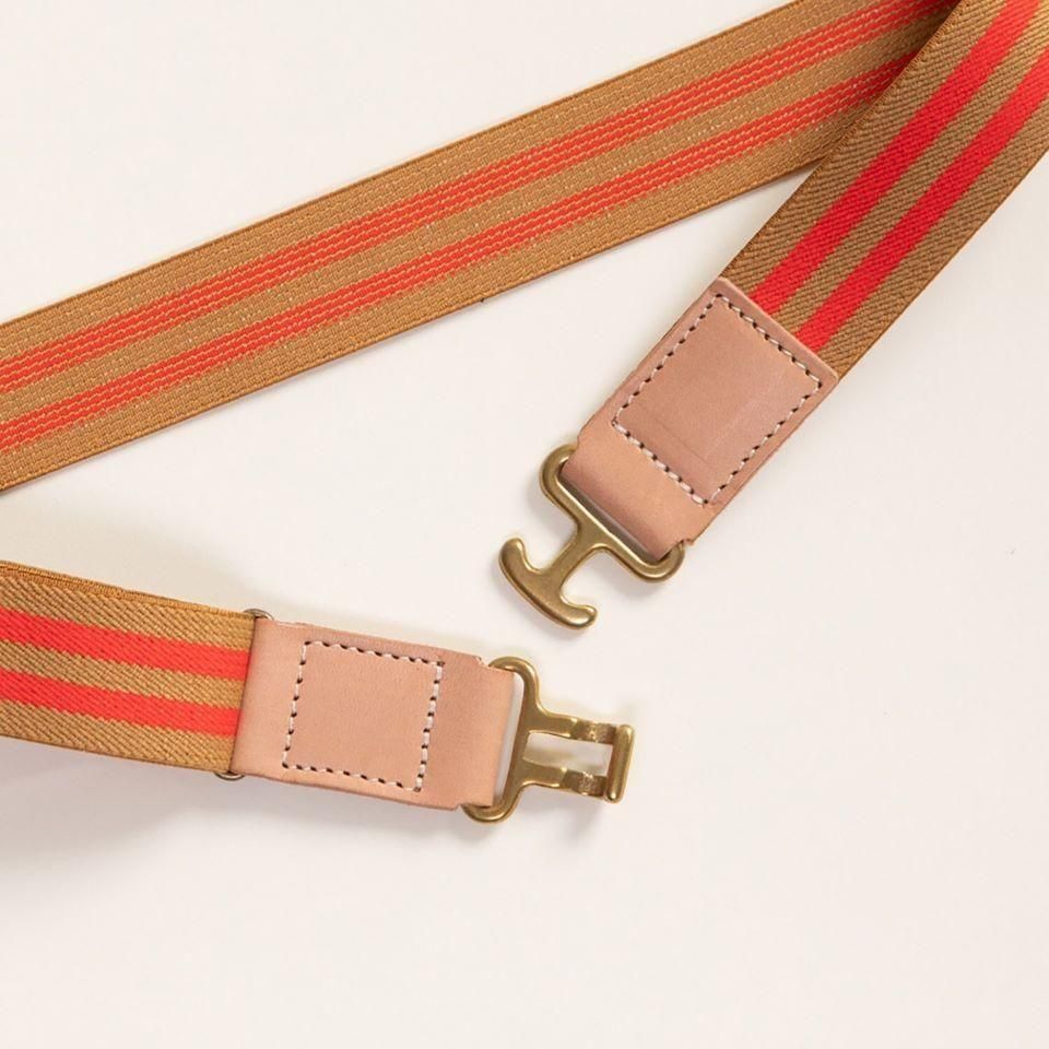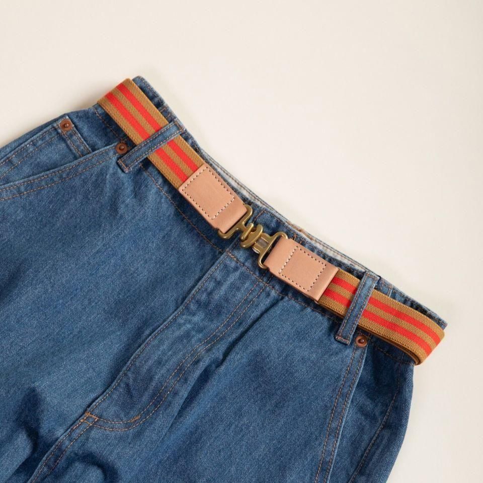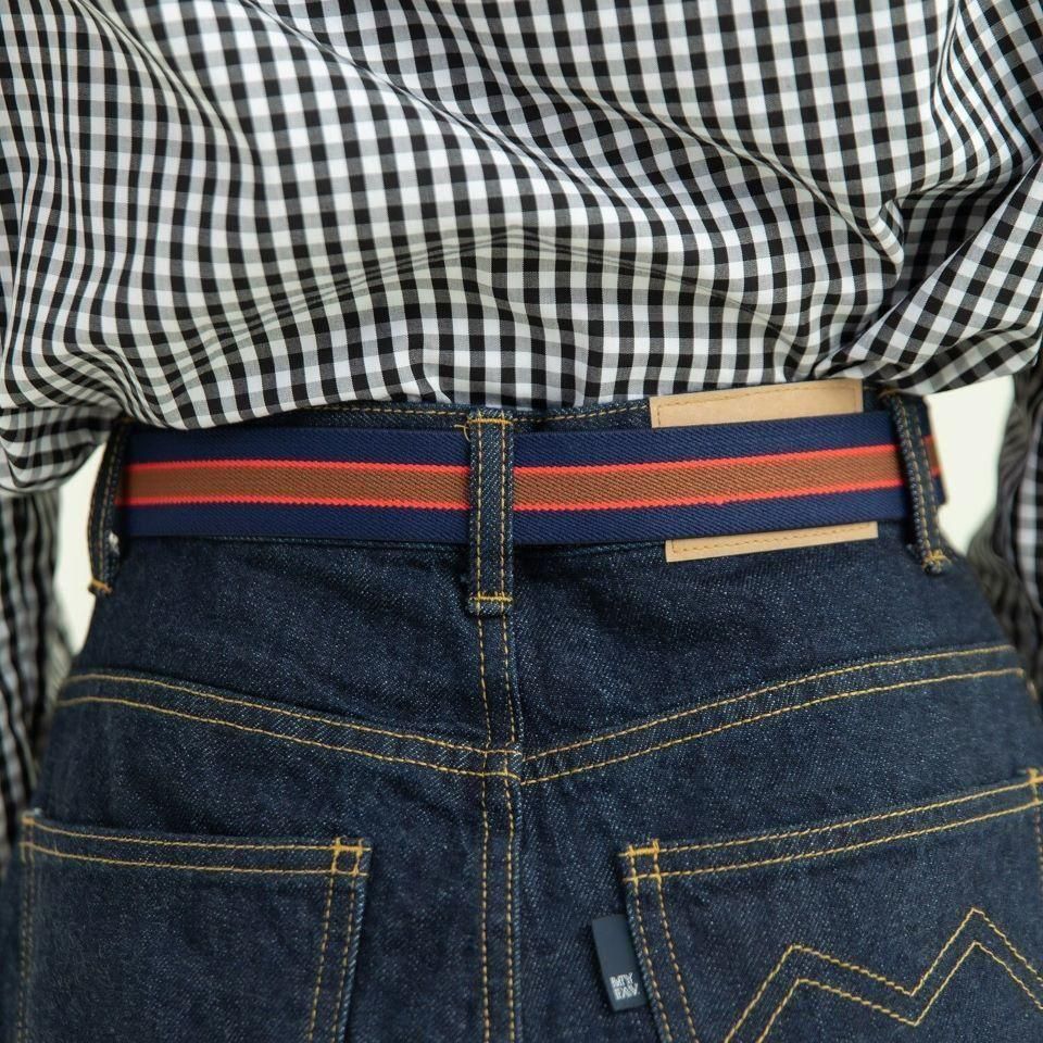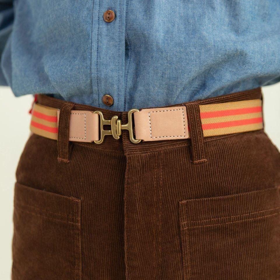 トラッドな配色のゴムに牛革レザーを組み合わせたデザインベルト。