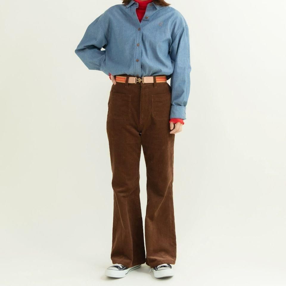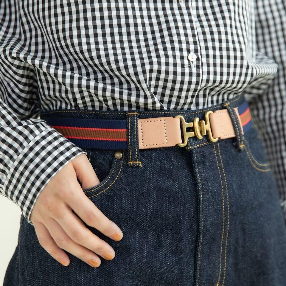 シンプルながらも真鍮のバックルがポイントとなりスタイリングにアクセントを加えてくれます。