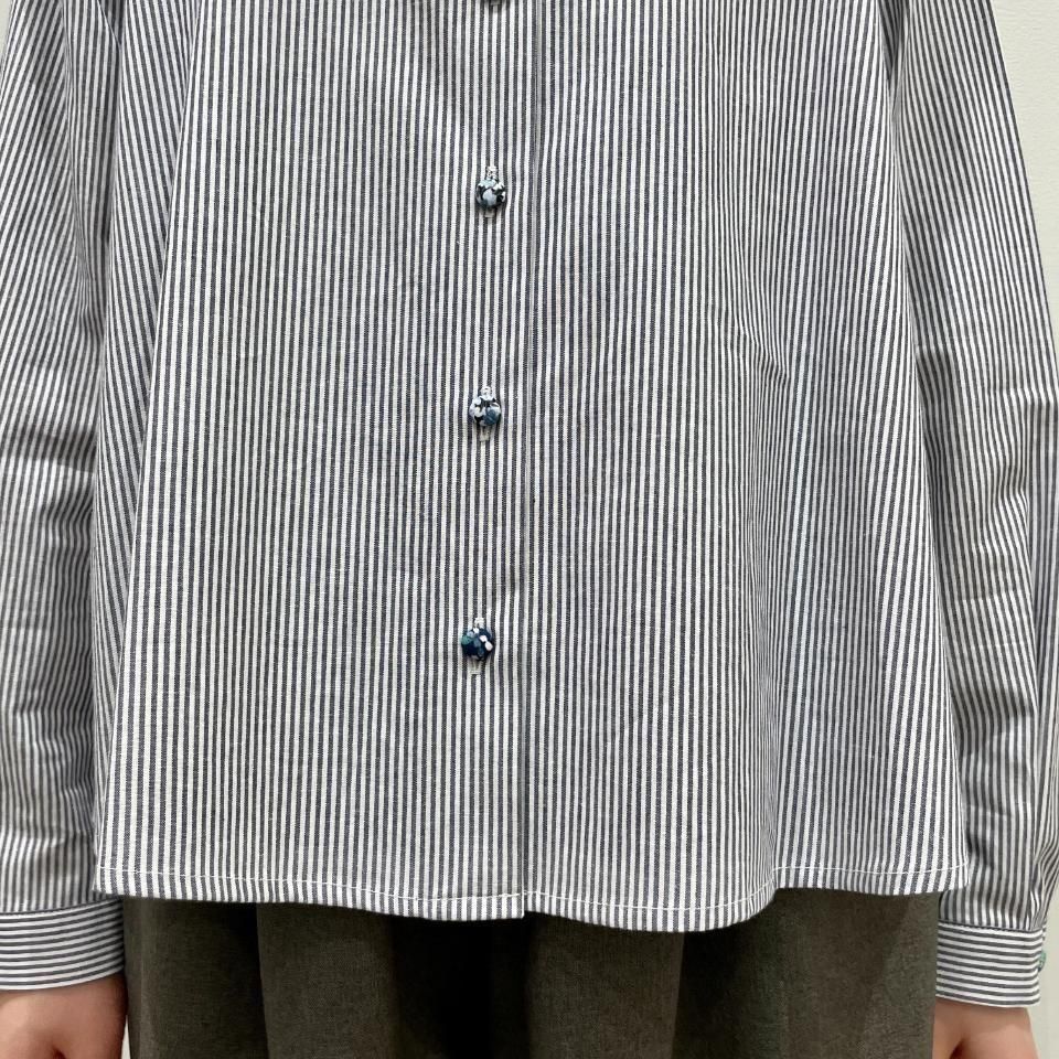 リバティアソートくるみ釦でさり気なく遊び心をプラスしたスタンドカラーAラインブラウス。