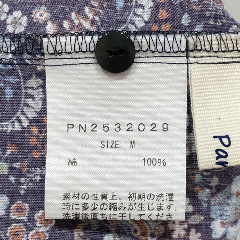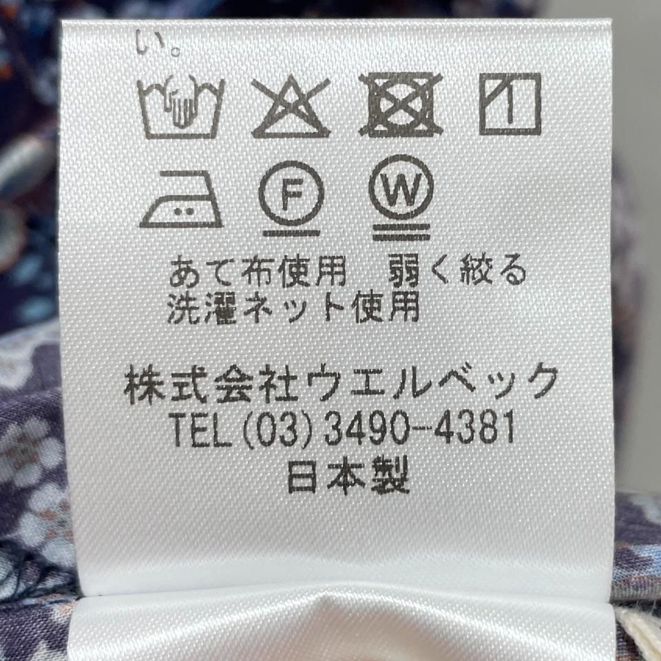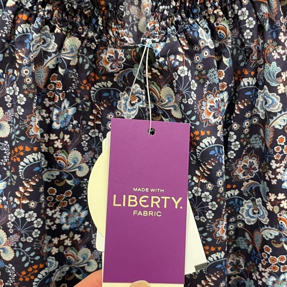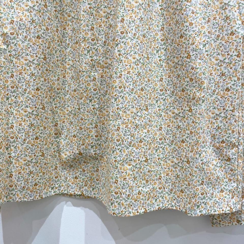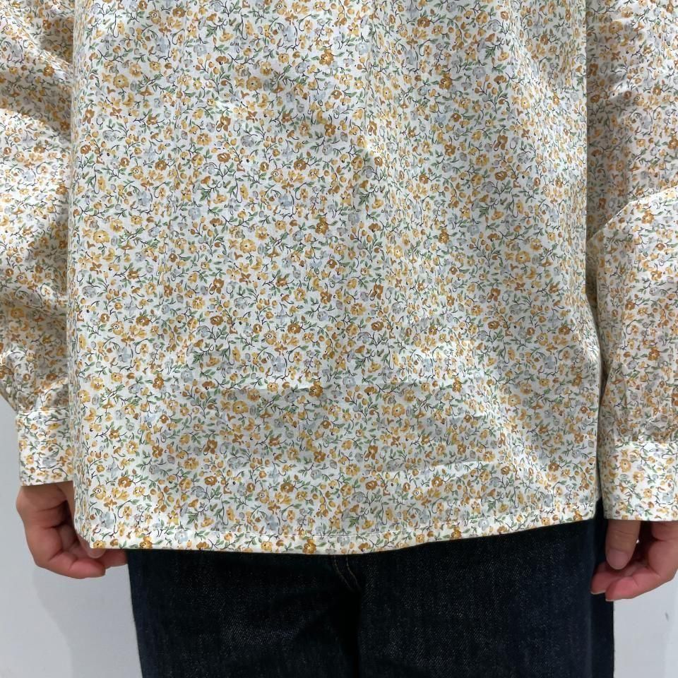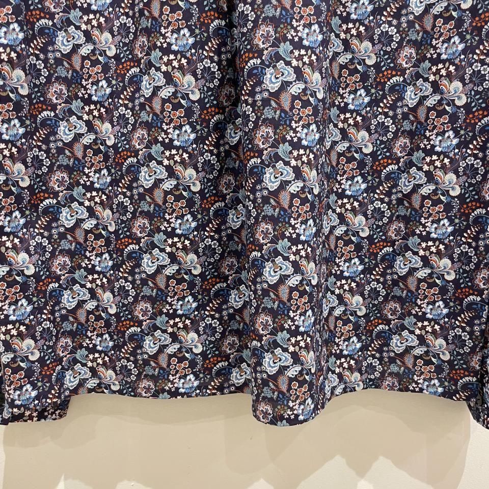 リバティプリントの襟シャーリング 前スリット開きブラウス。