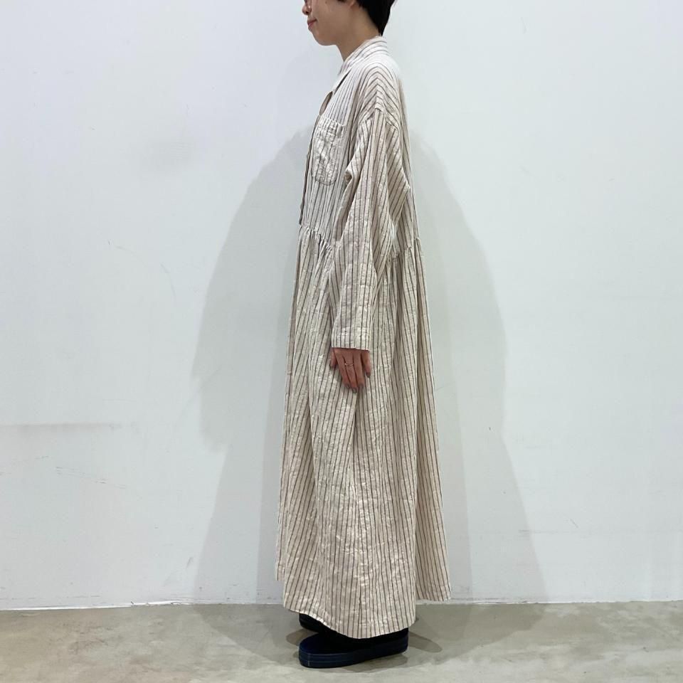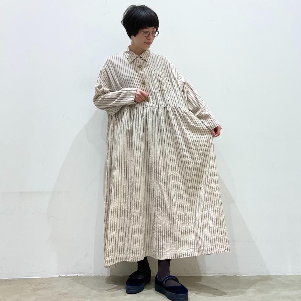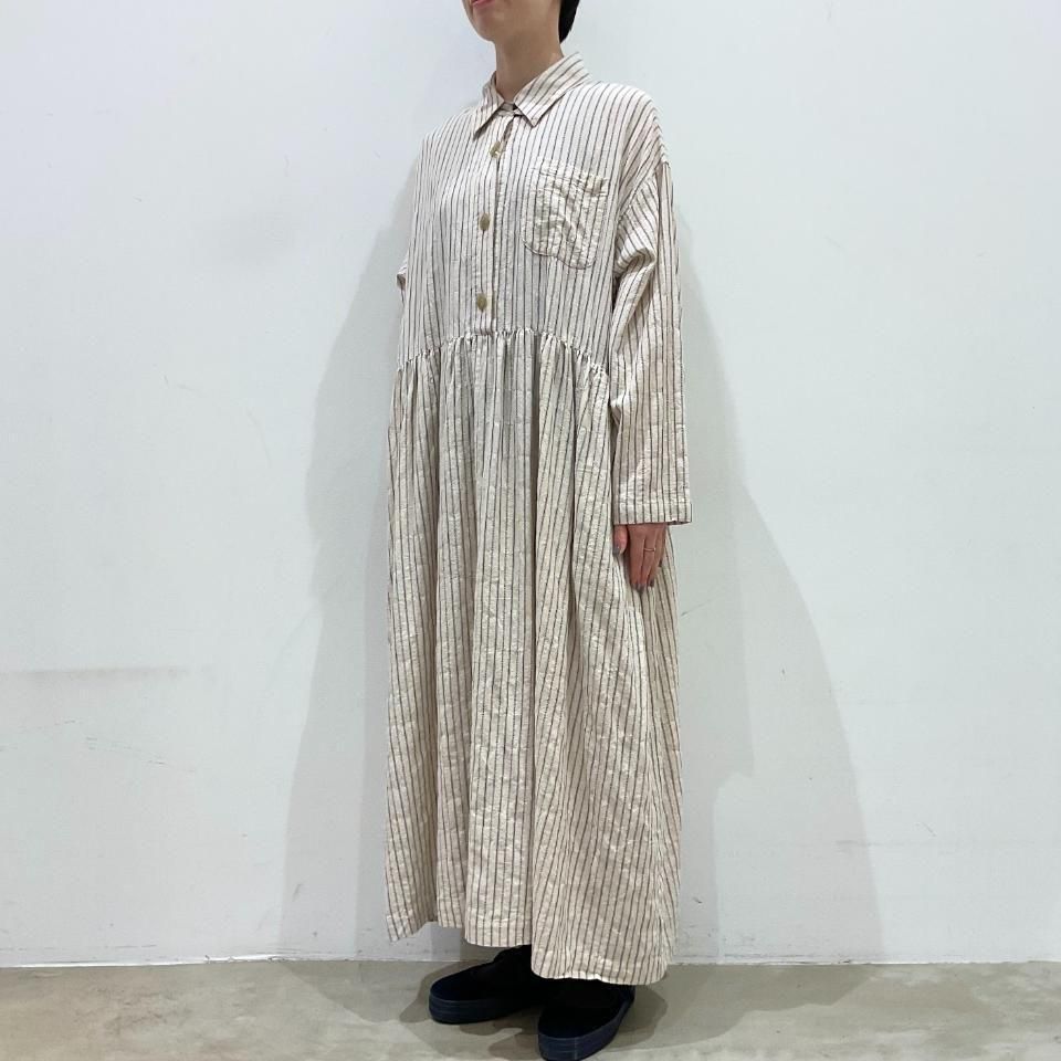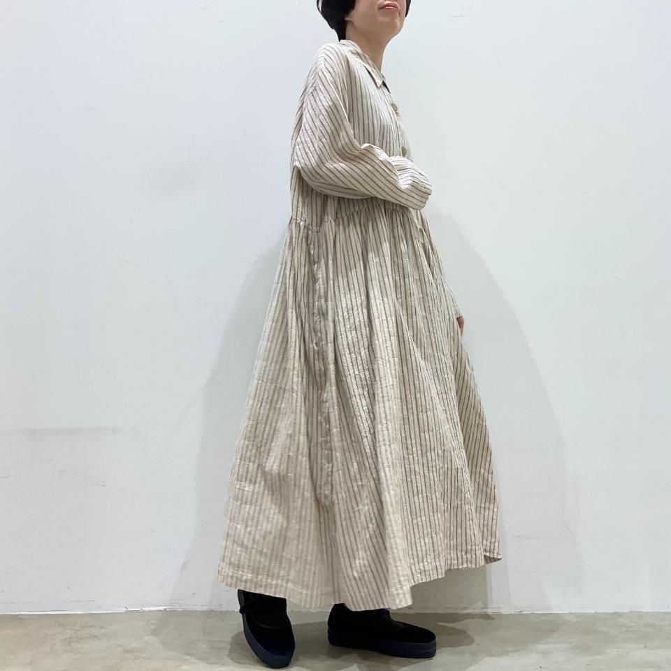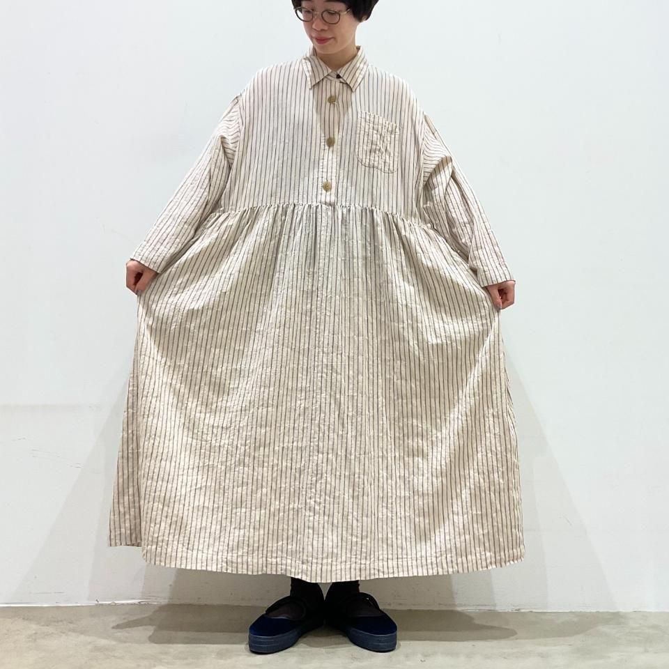 コンパクトな襟元とたっぷりとした身幅のバランスが良い、贅沢な生地使いのカントリードレス。