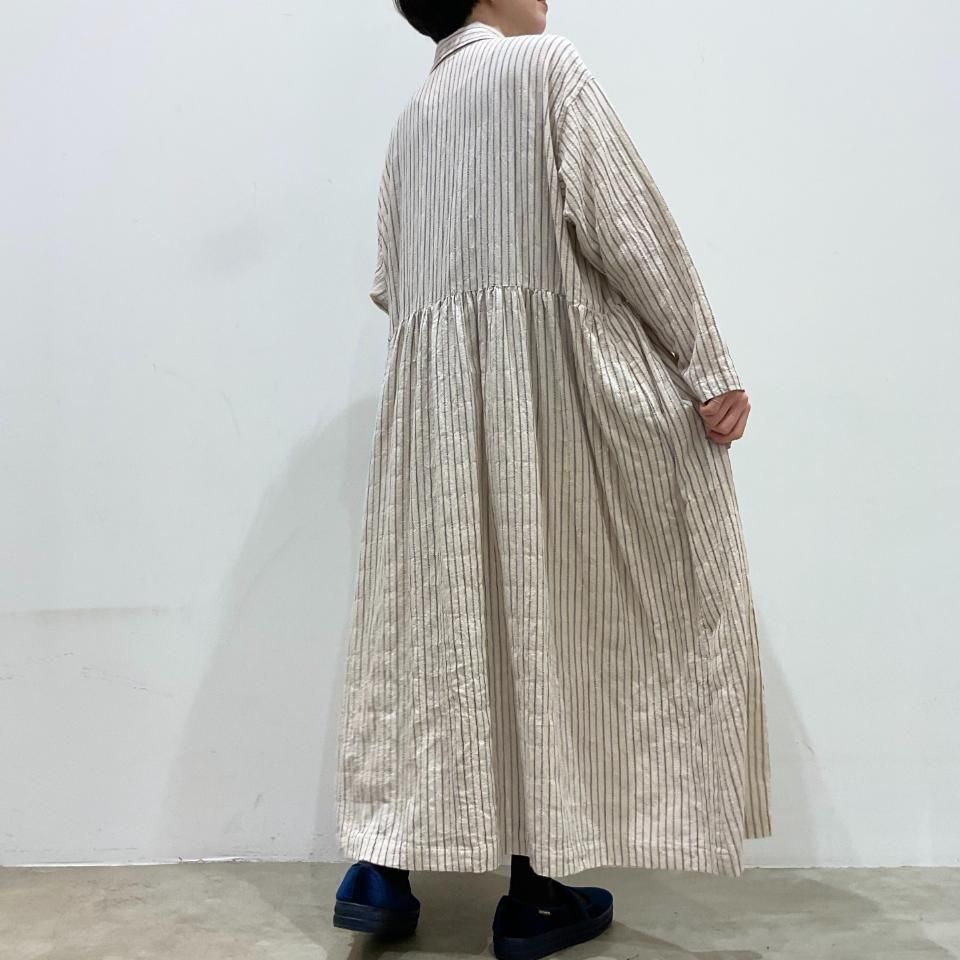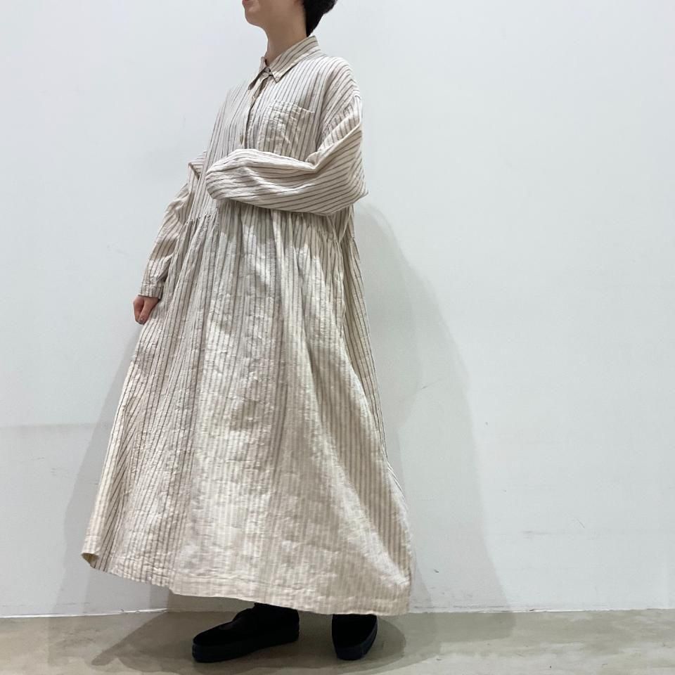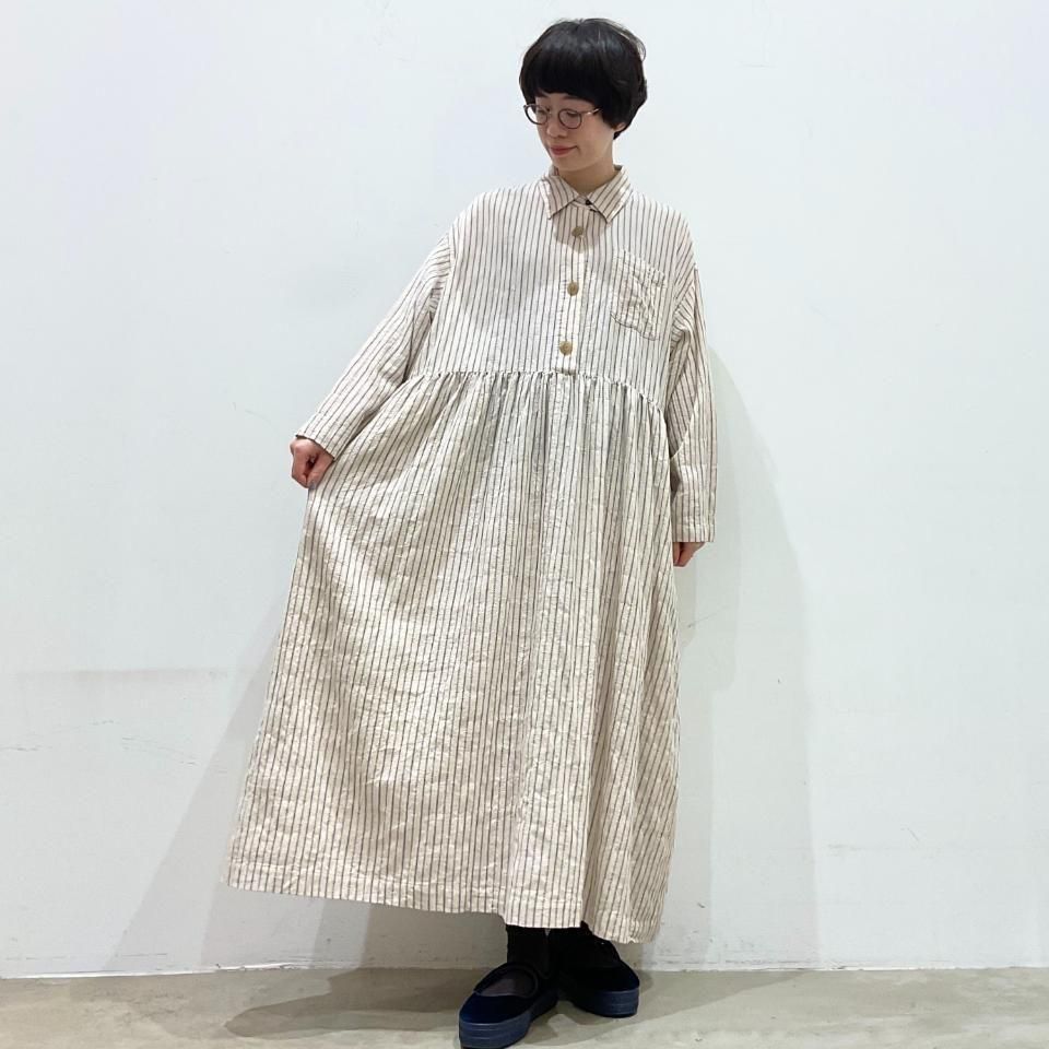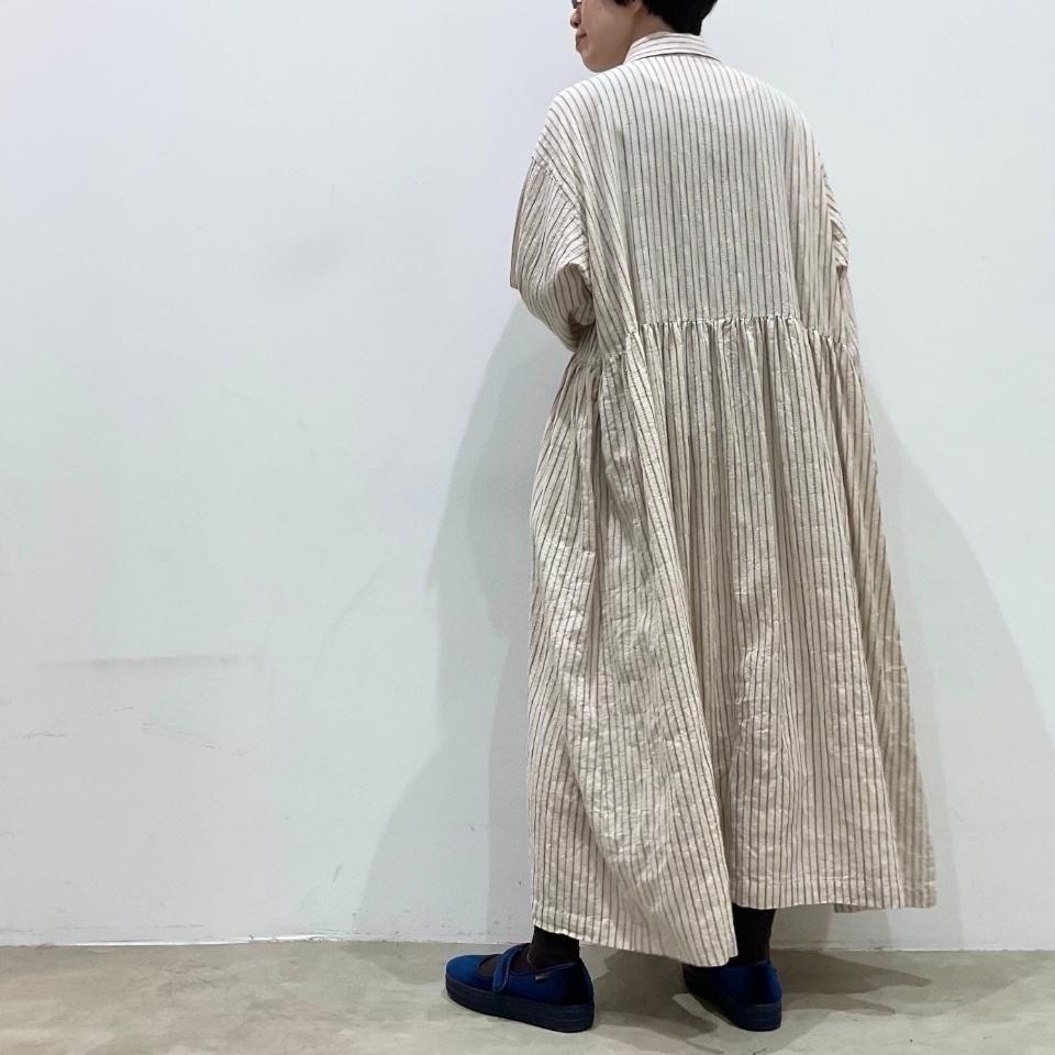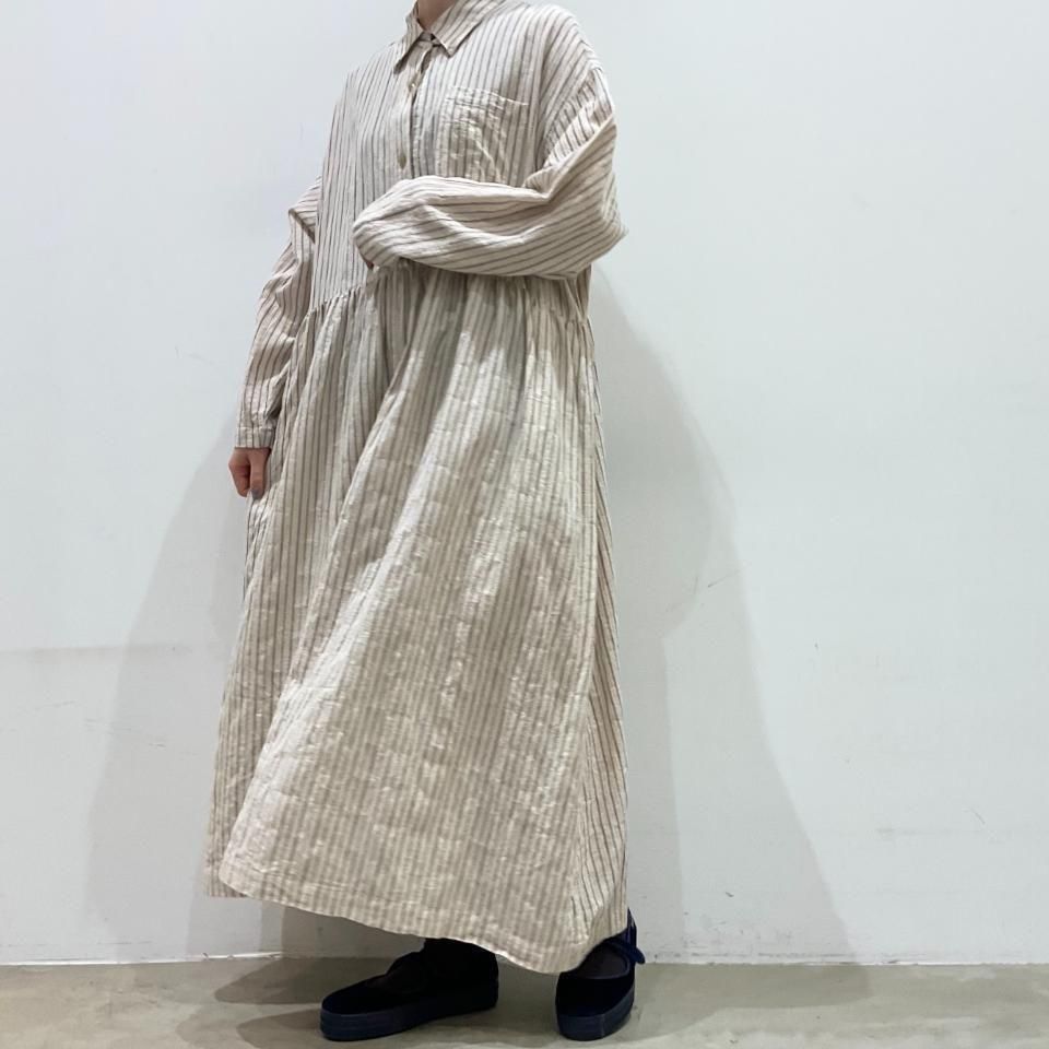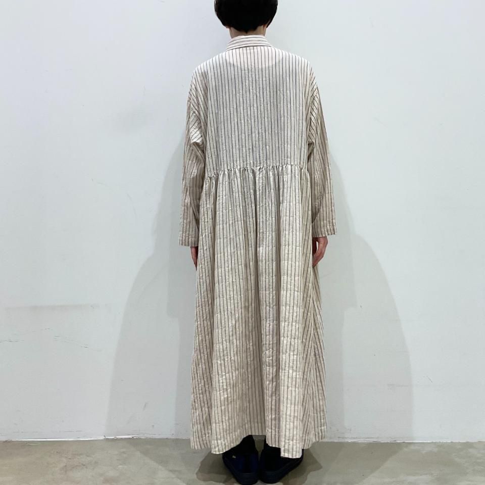 コンパクトな襟元とたっぷりとした身幅のバランスが良い、贅沢な生地使いのカントリードレス。