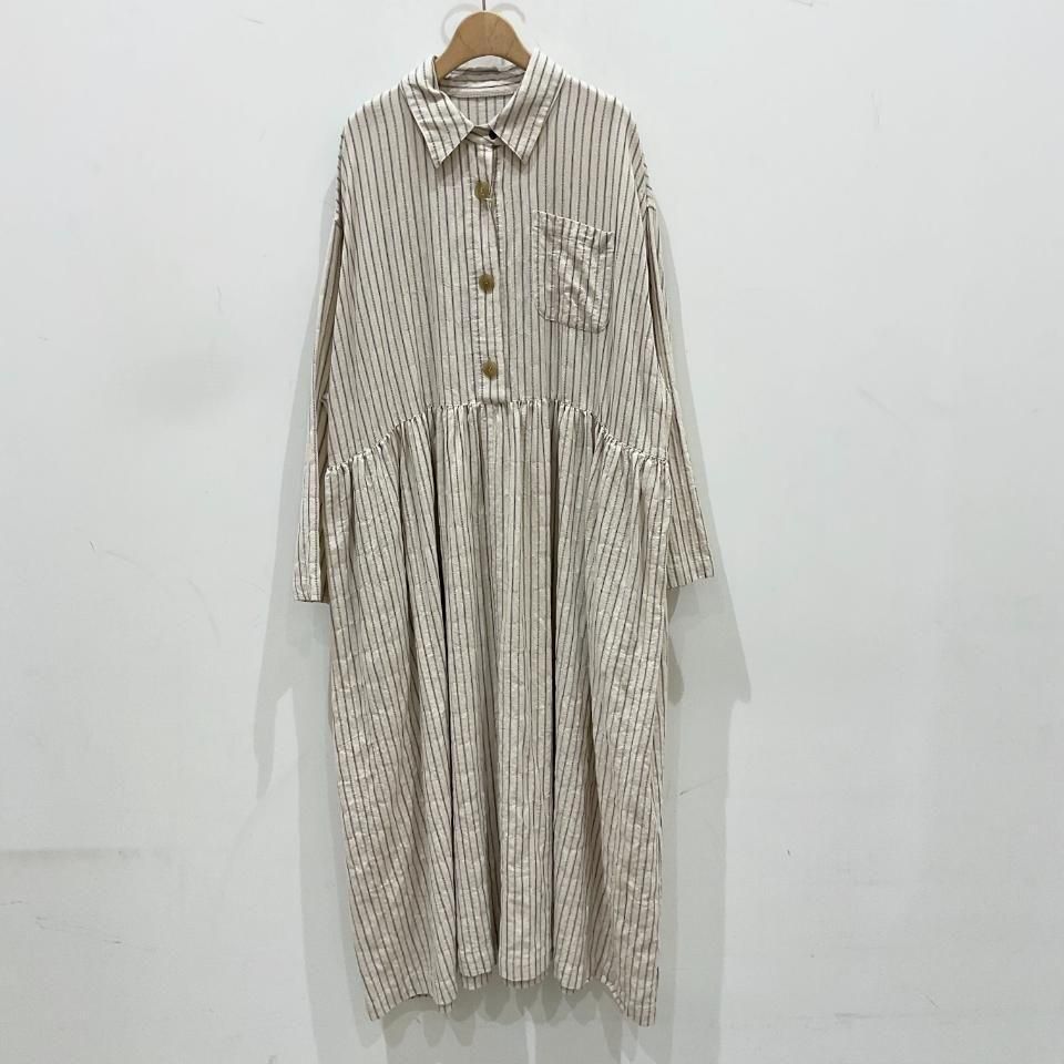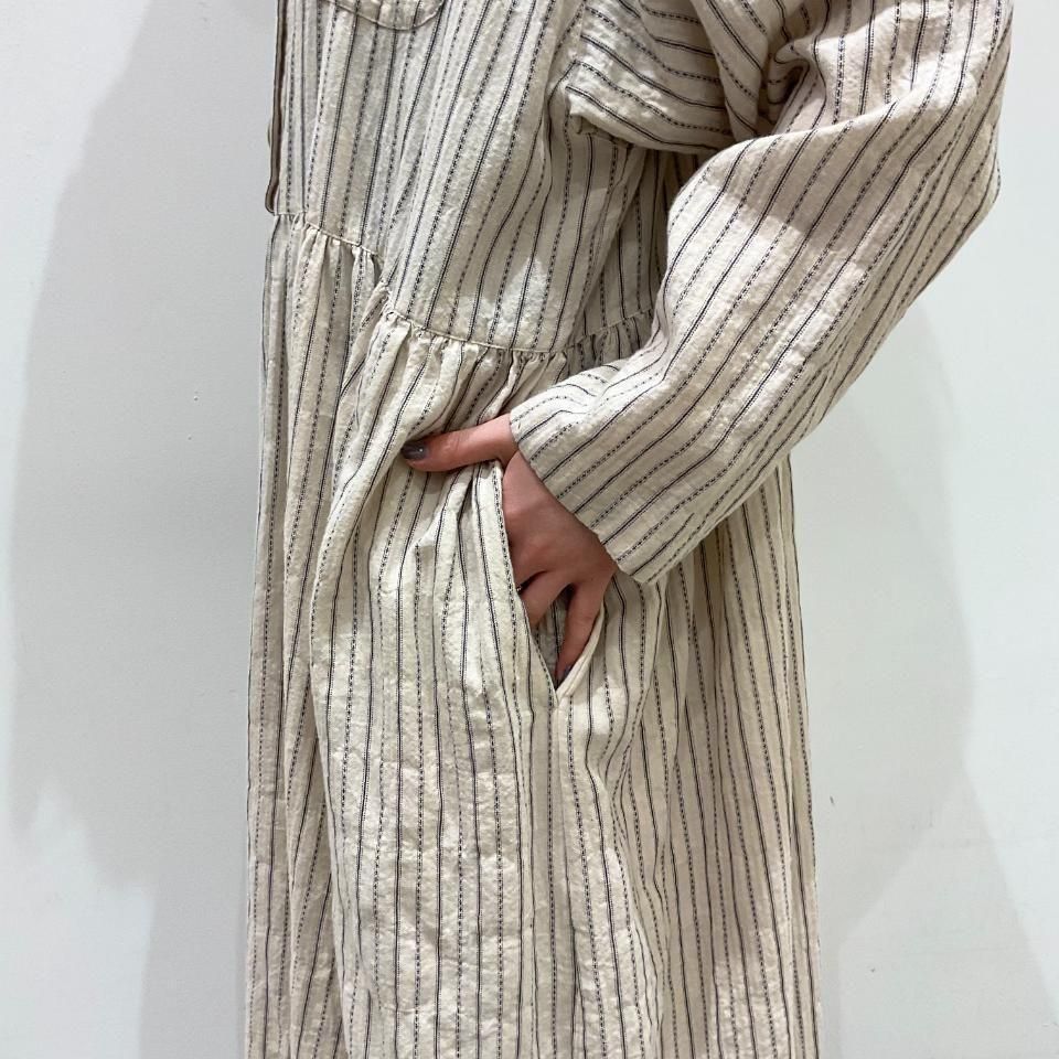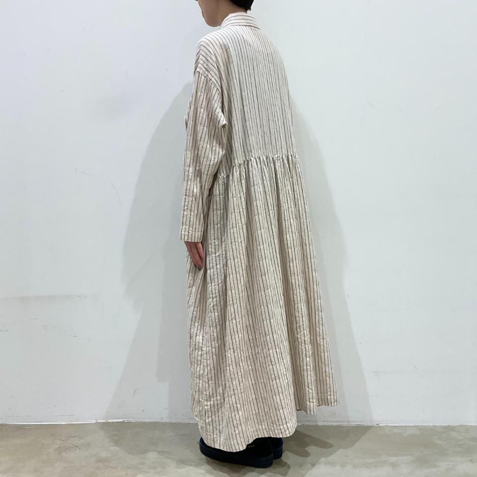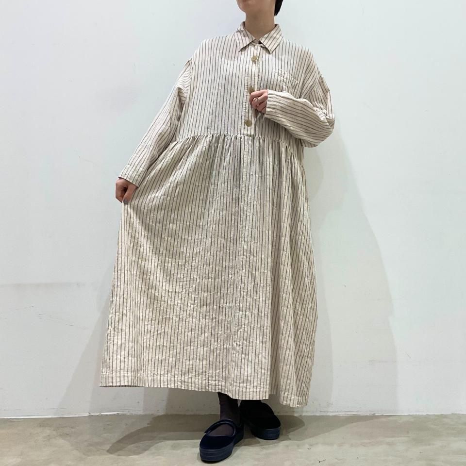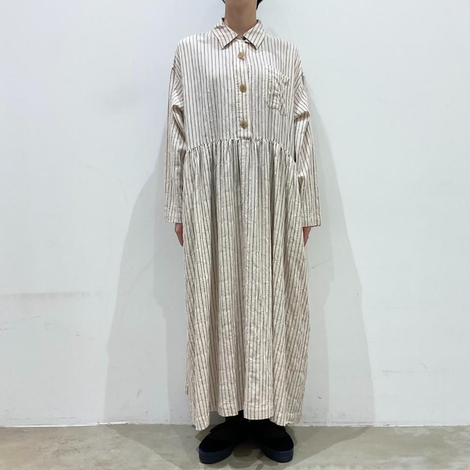 コンパクトな襟元とたっぷりとした身幅のバランスが良い、贅沢な生地使いのカントリードレス。