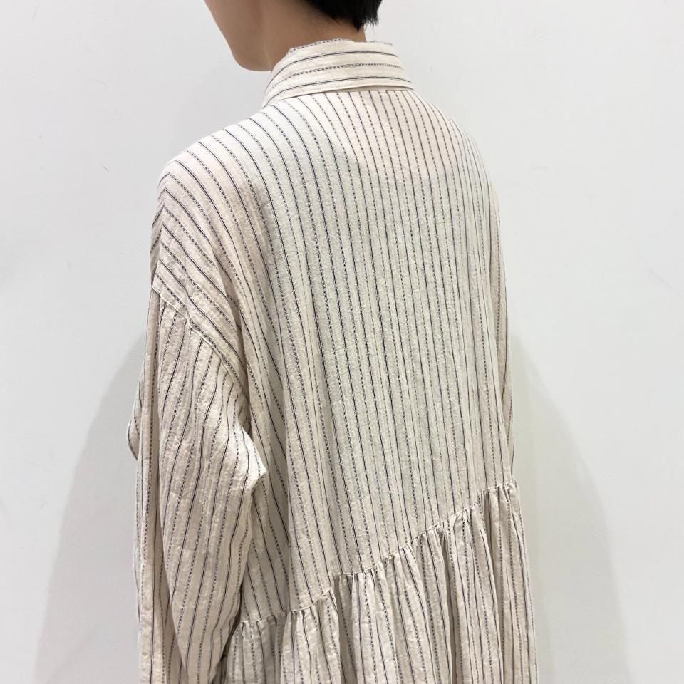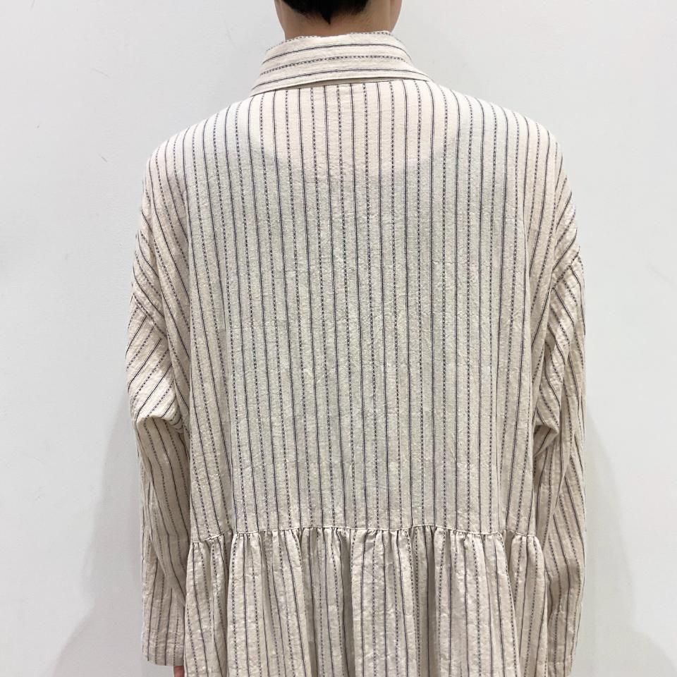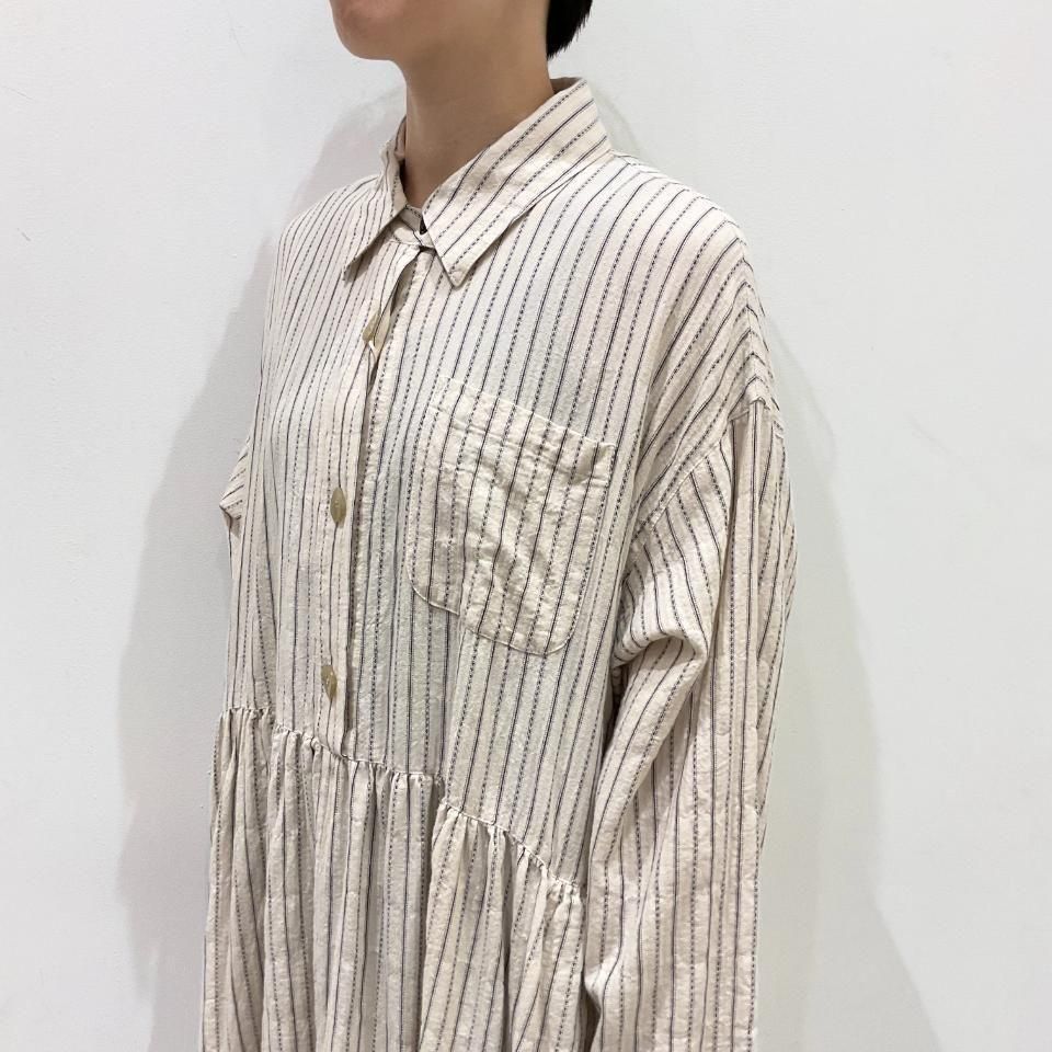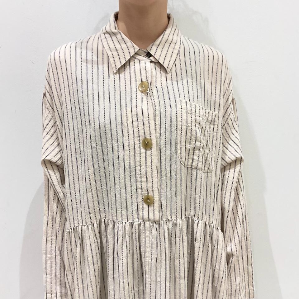 ウエストに一周ギャザーが施され左胸にポケットが有ります。