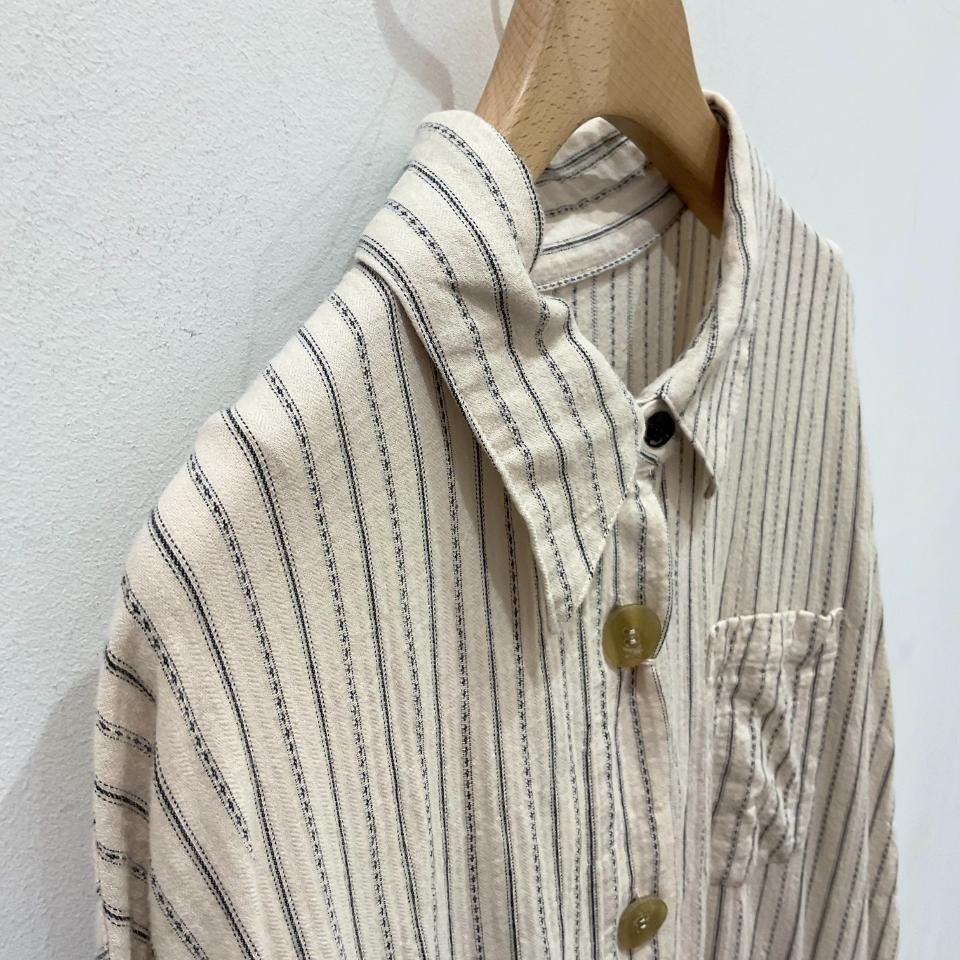 ふっくらとした優しい肌触りでベース生地の織り柄とストライプ柄が重なったナチュラルでいて