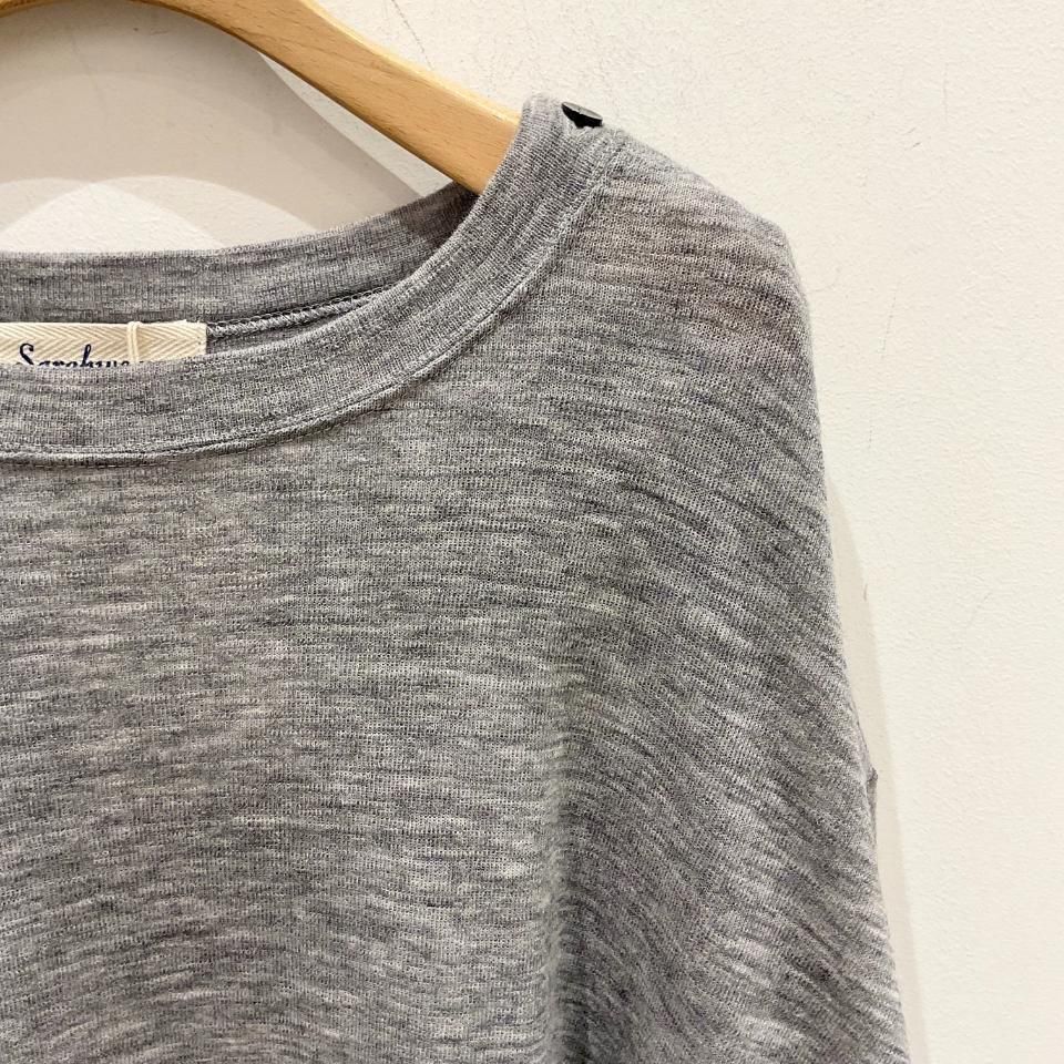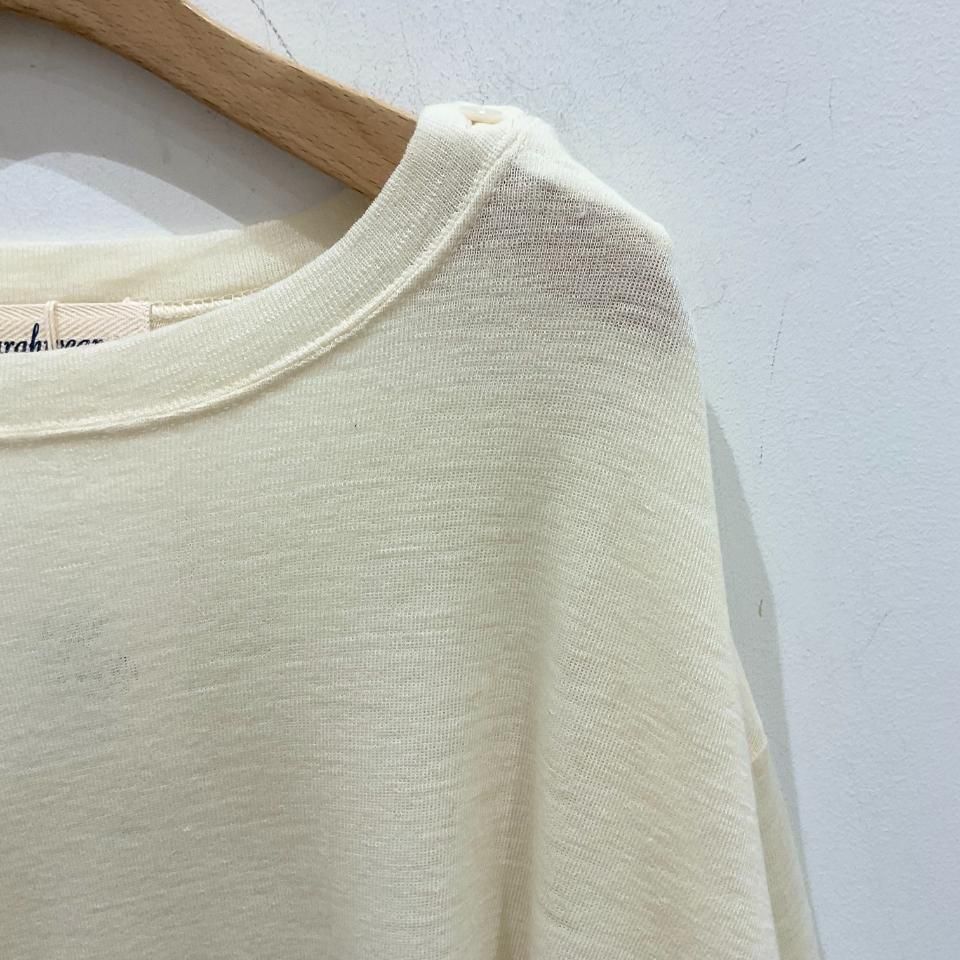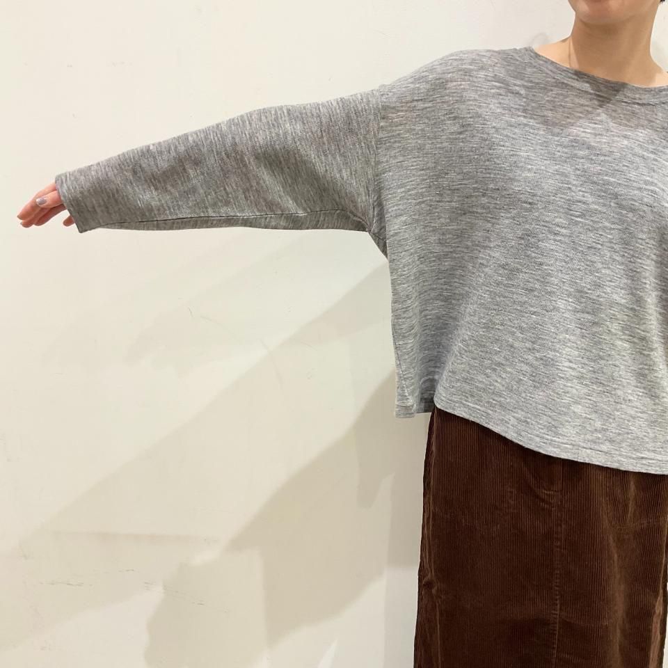 自然なムラ感のある編地で横方向の伸縮性があり重ね着がしやすく、軽やかで通気性が良くサラリとした優しい肌ざわりです。