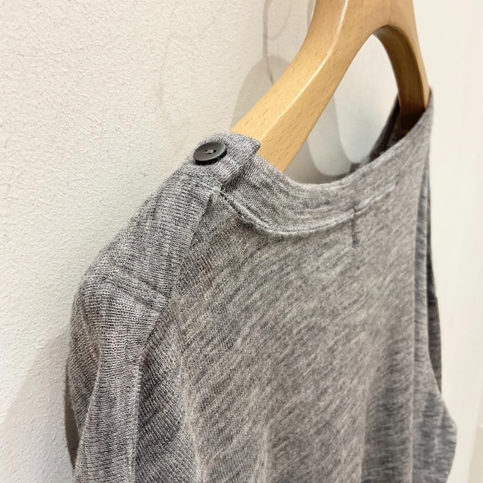 ゆったり身幅&スッキリ丈の肩ボタンTeeです。