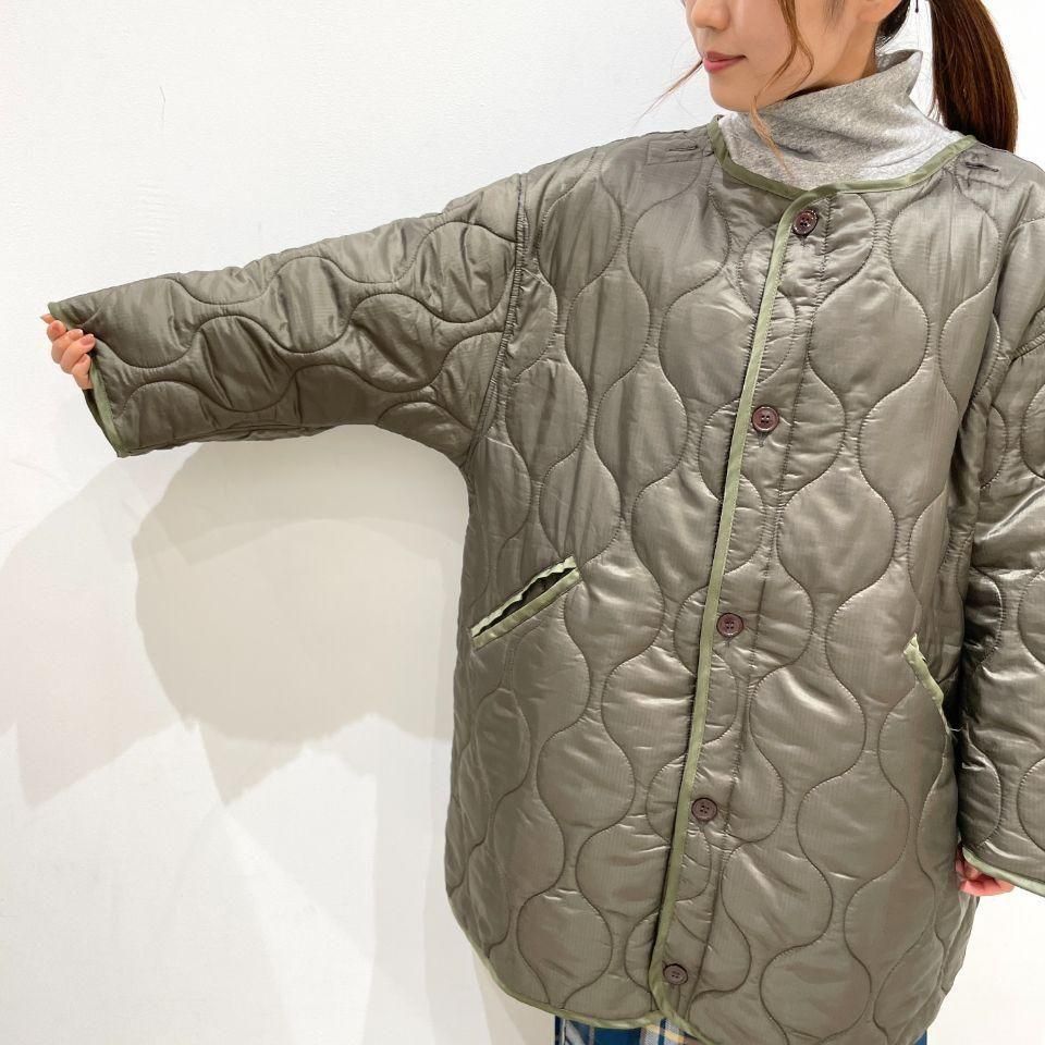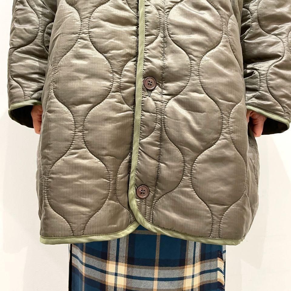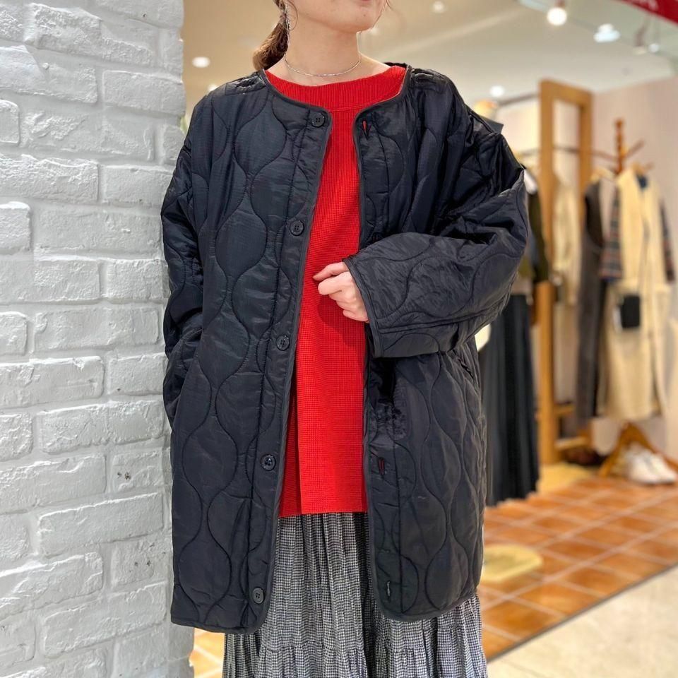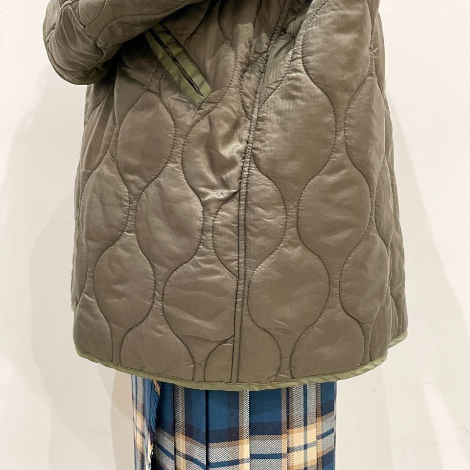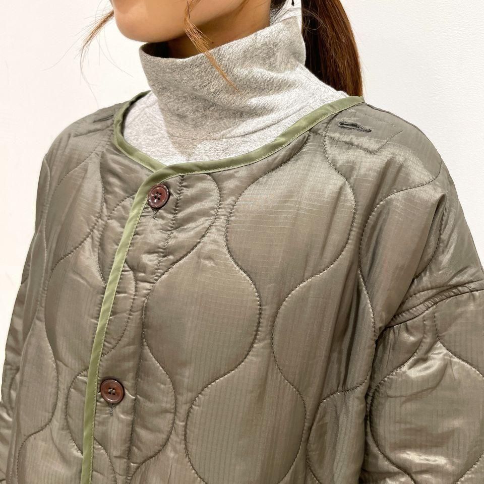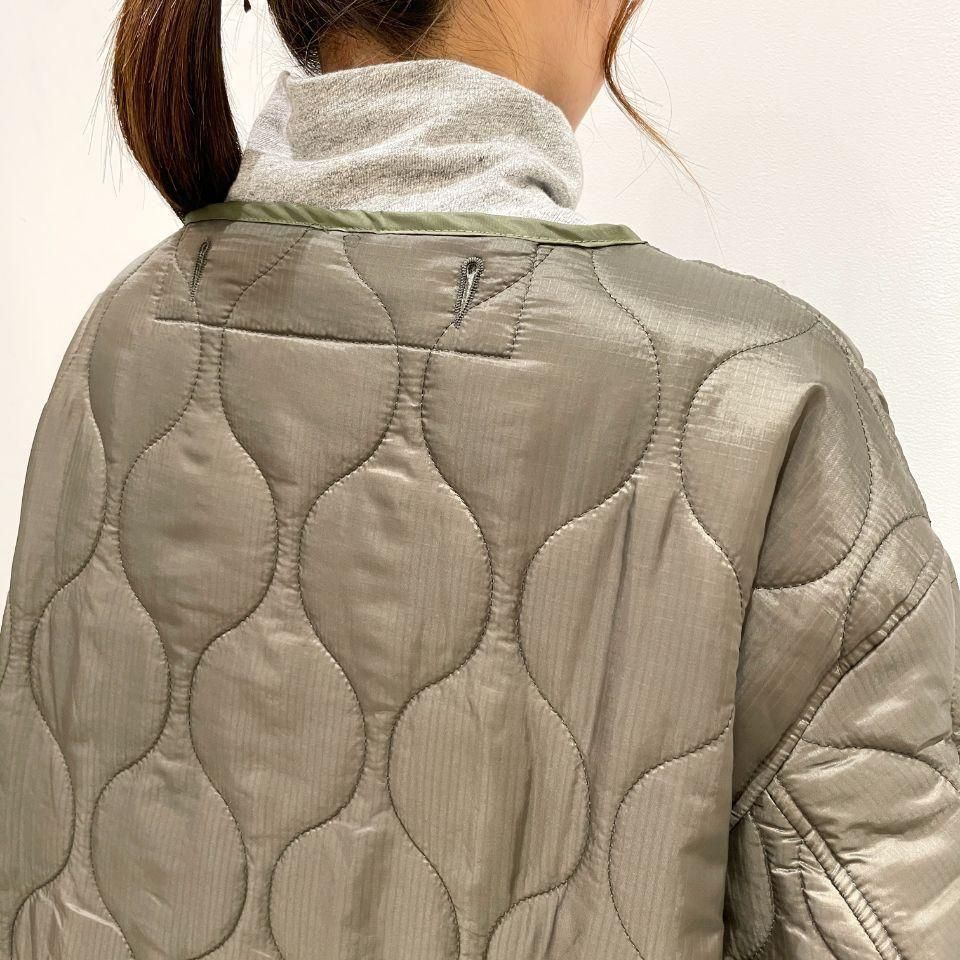 素材には軽量なナイロンが使用されおり、中綿入りのキルティングが見た目からは