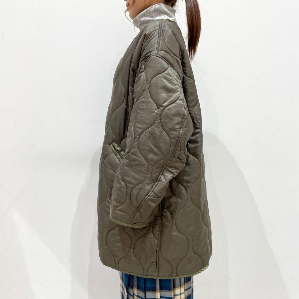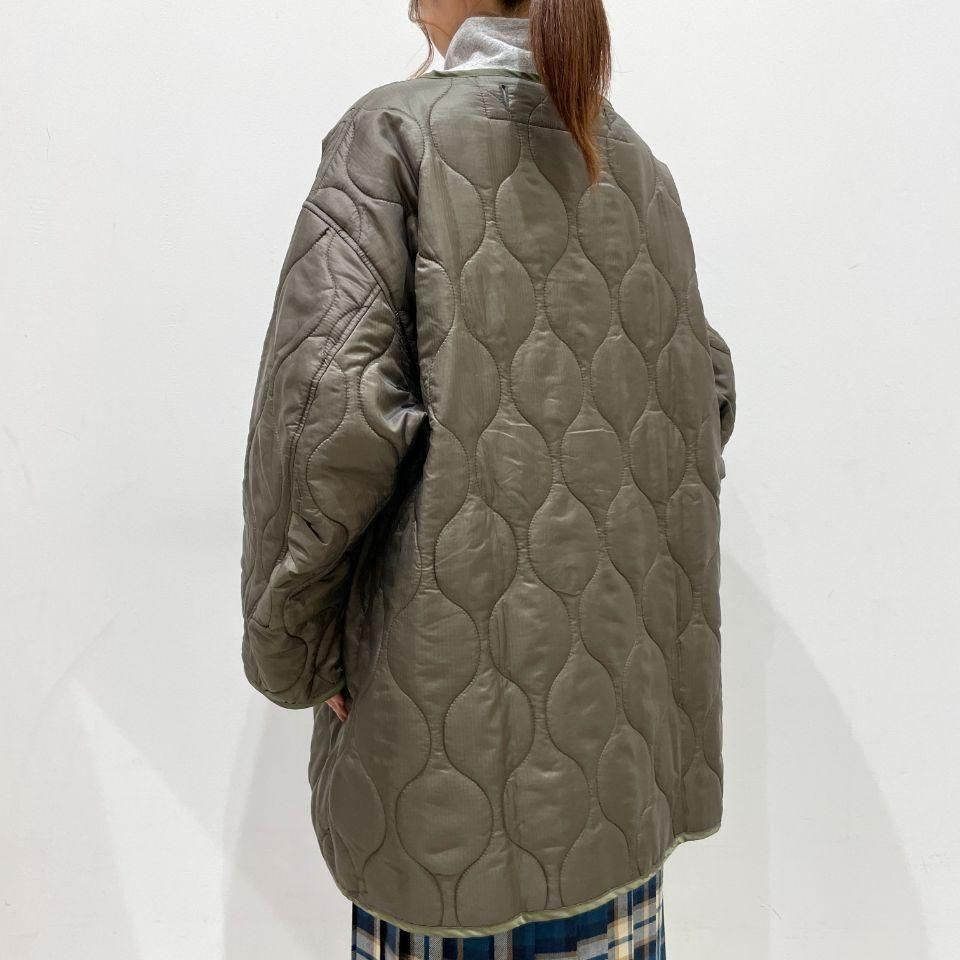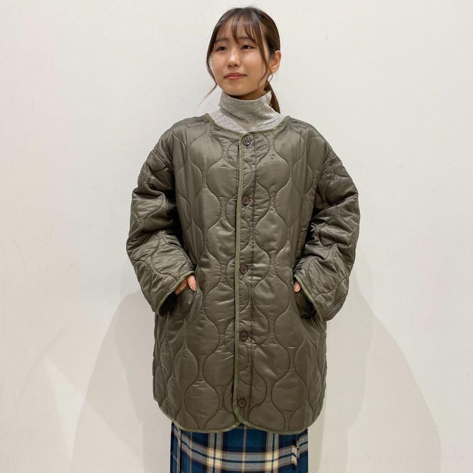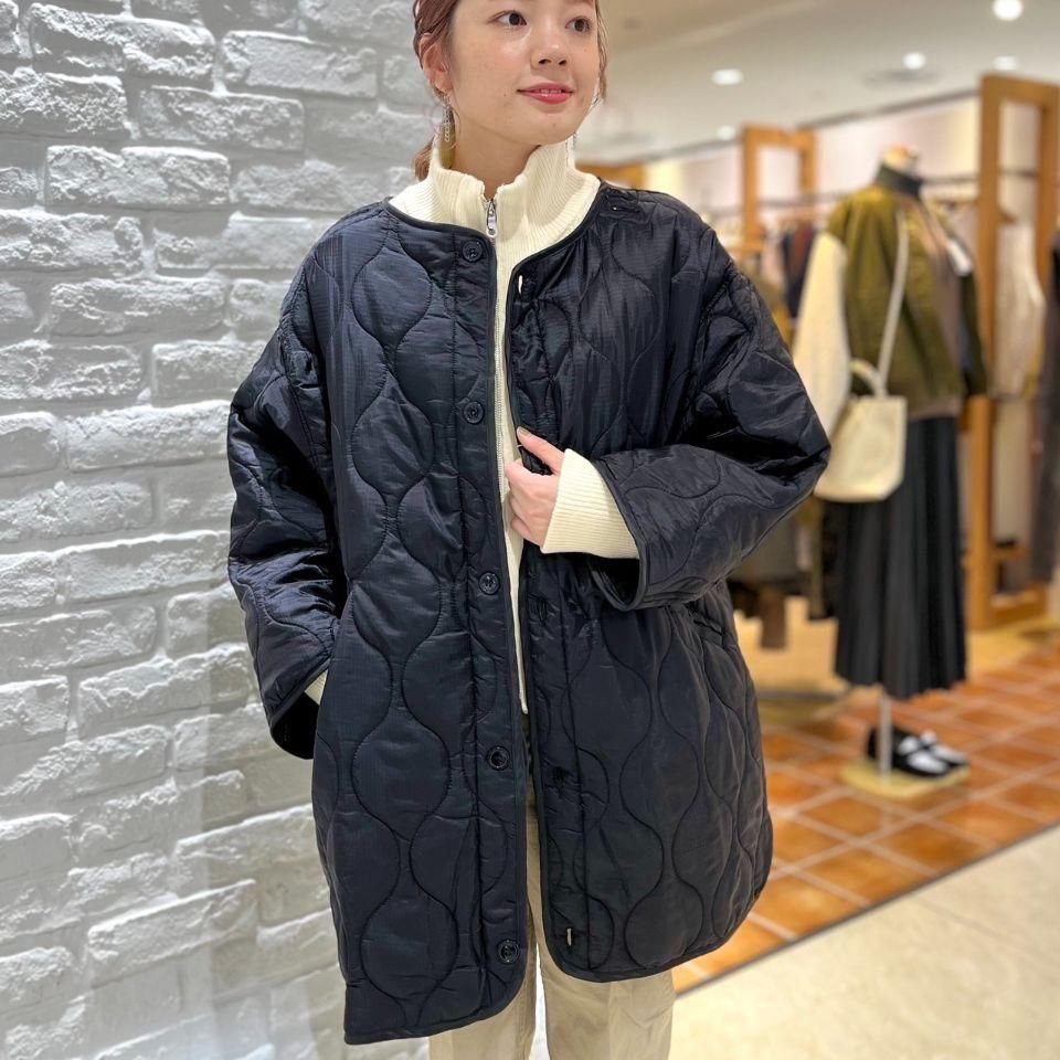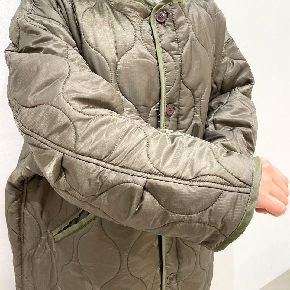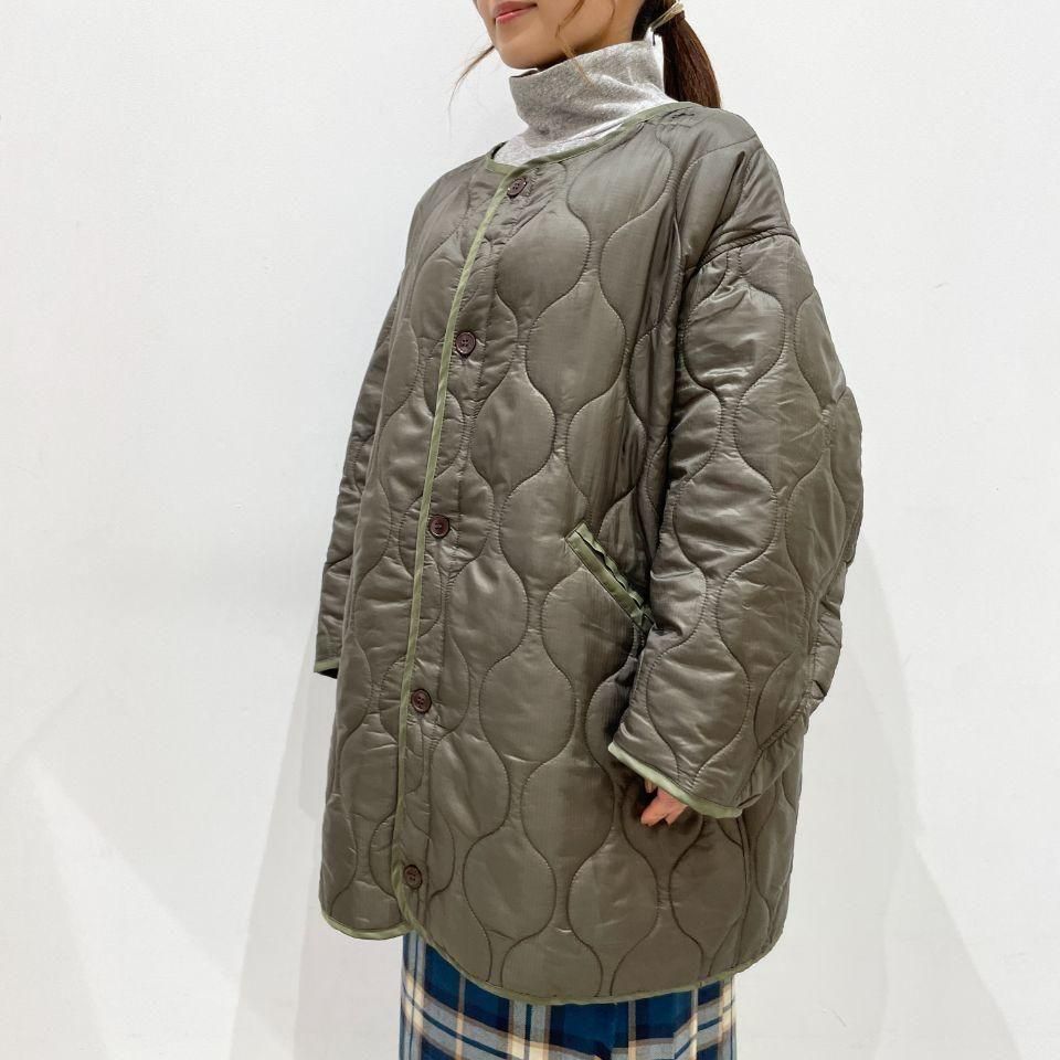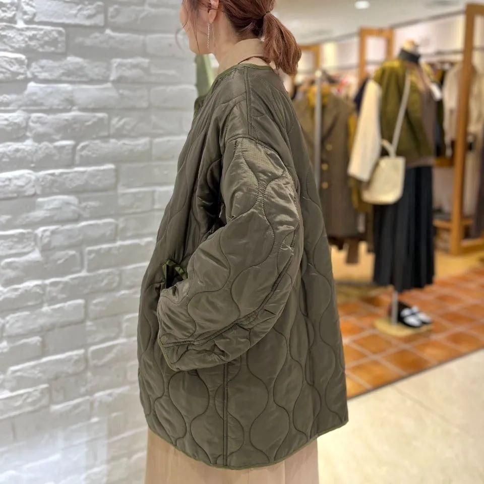 素材には軽量なナイロンが使用されおり、中綿入りのキルティングが見た目からは