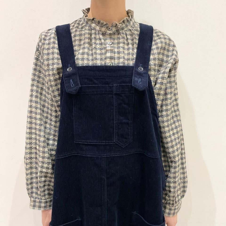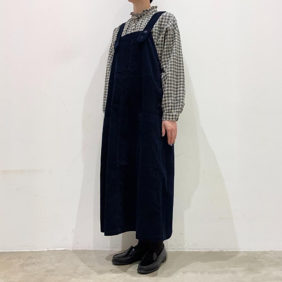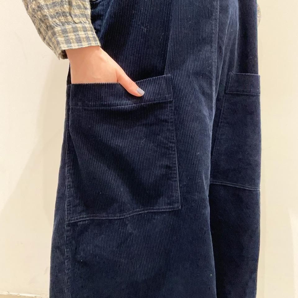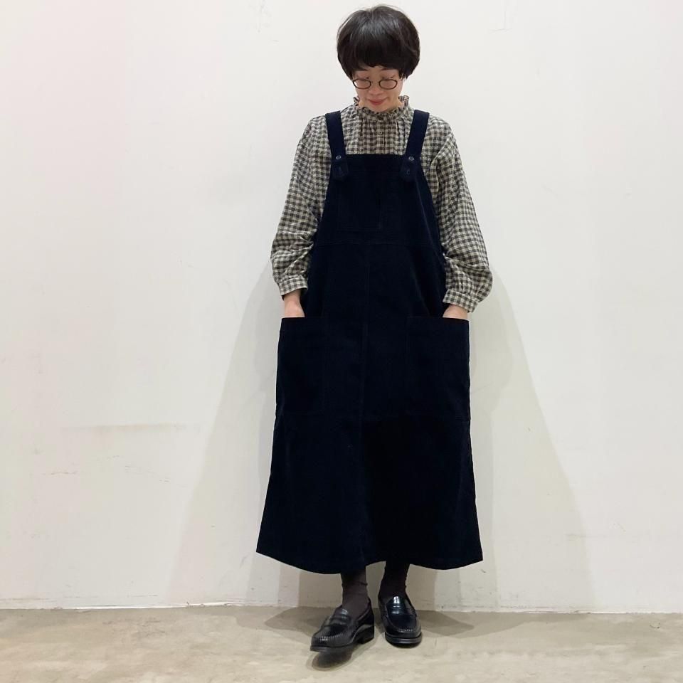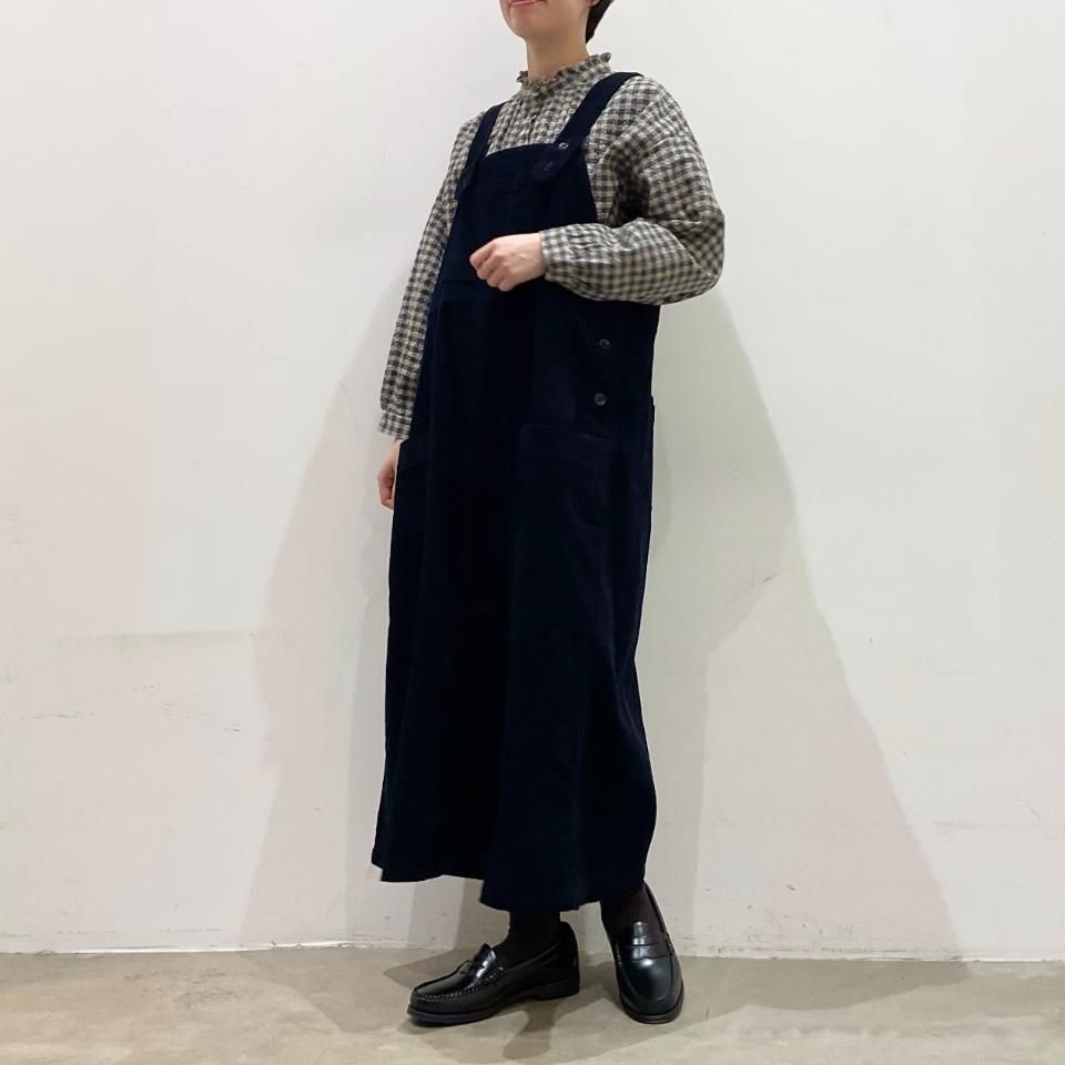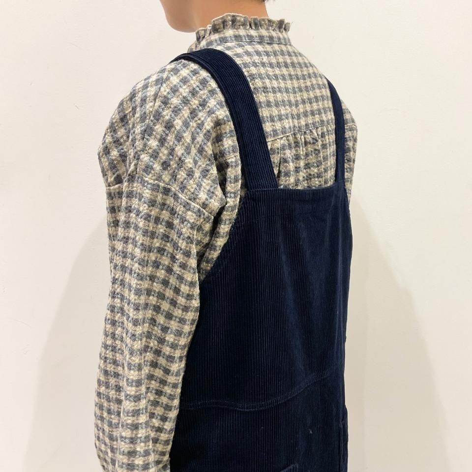 ゆったりとした身幅と脇が広く開いているので厚地のセーターの上からも重ね着楽々です。