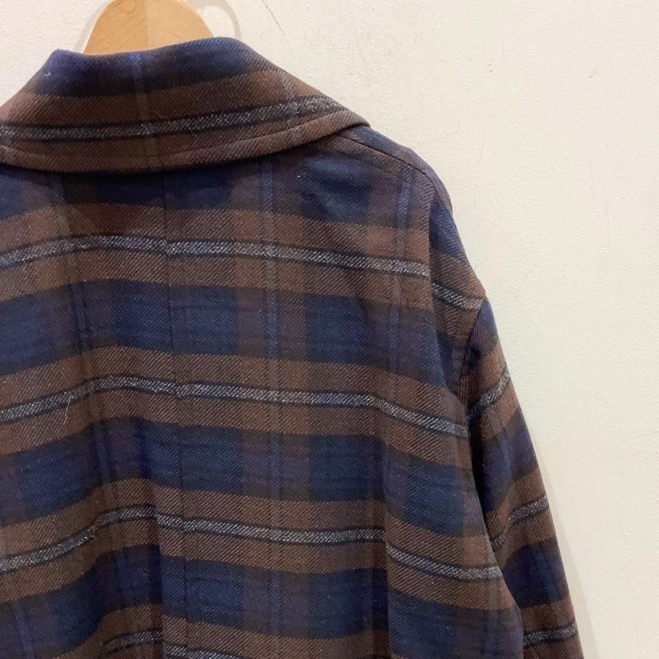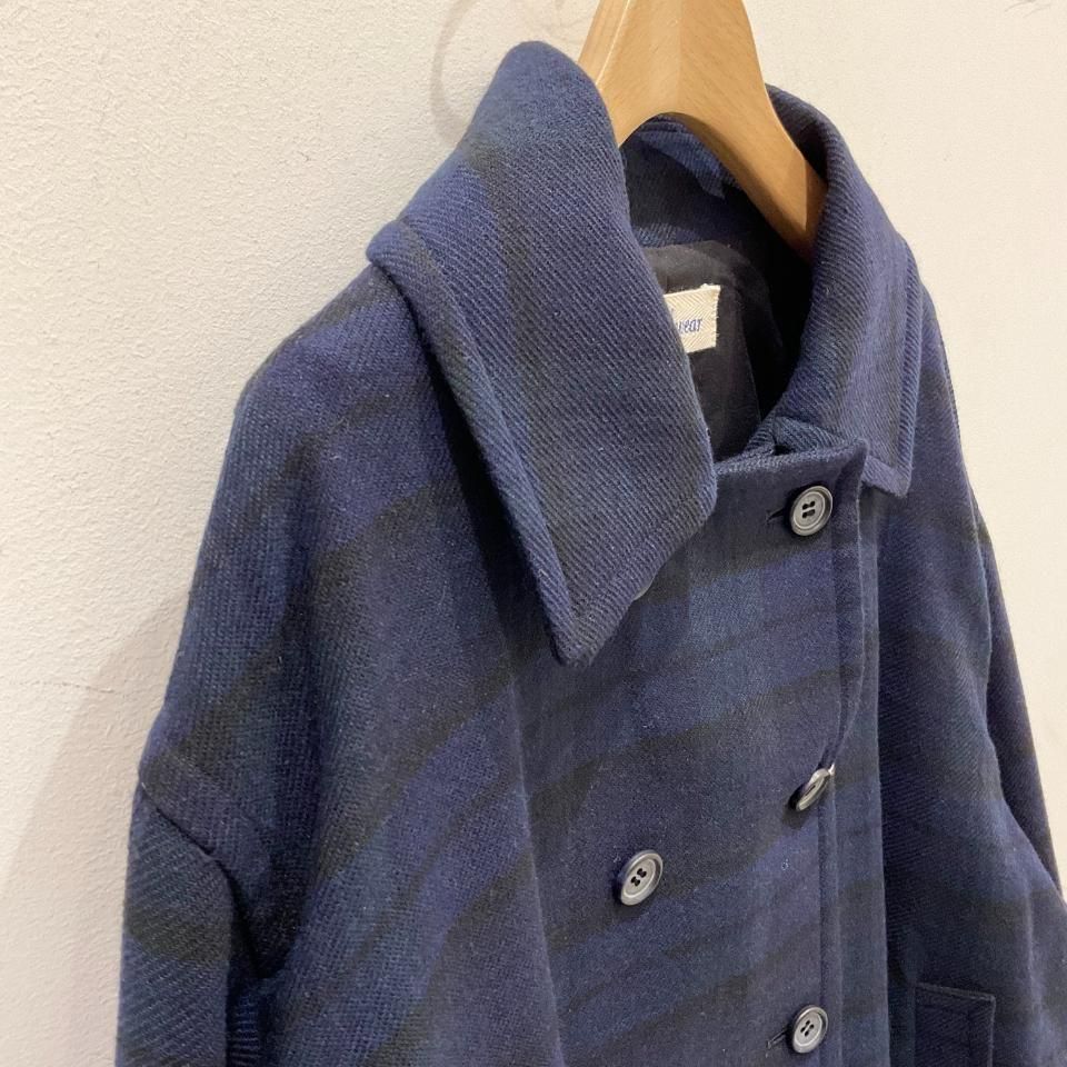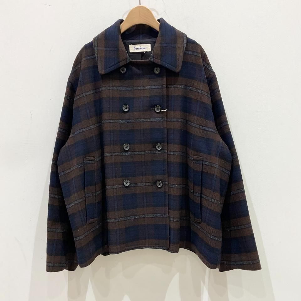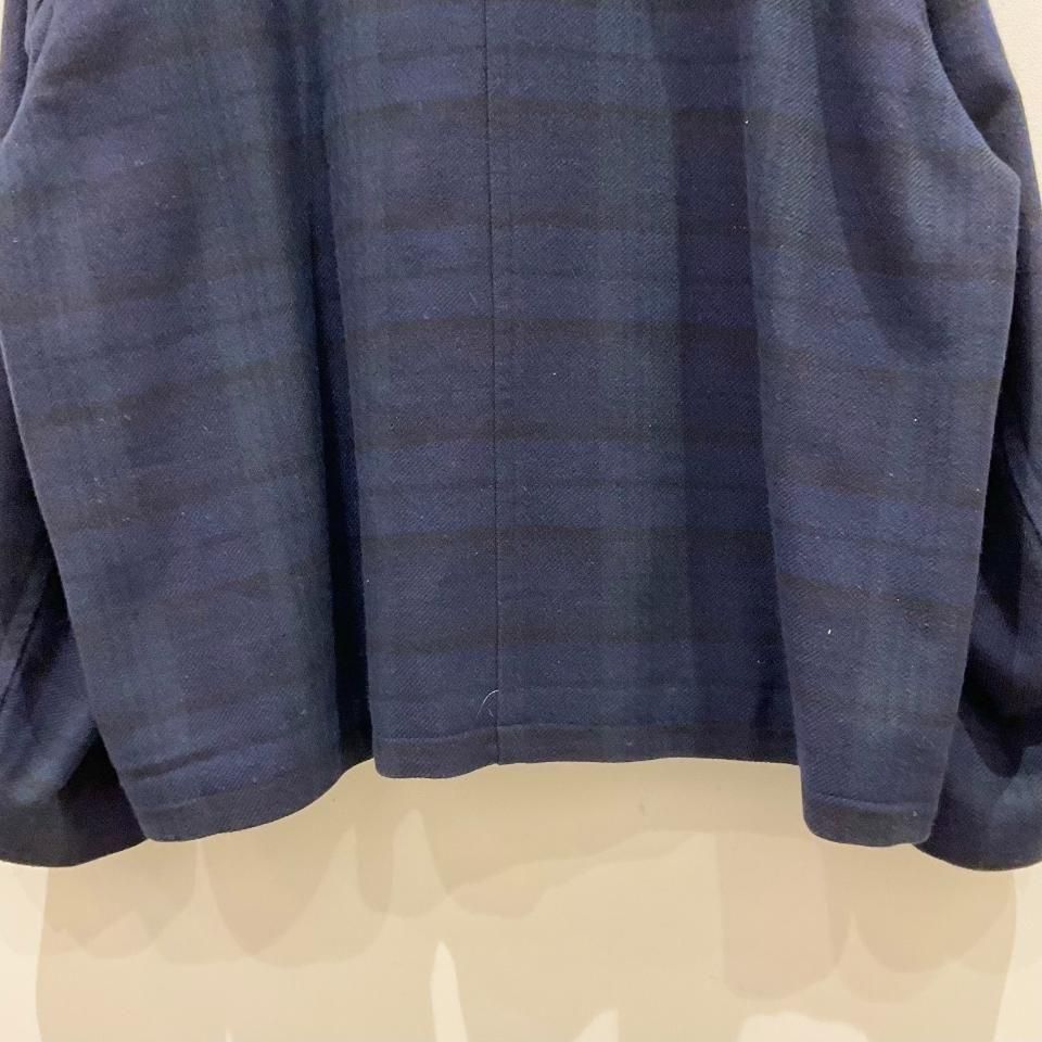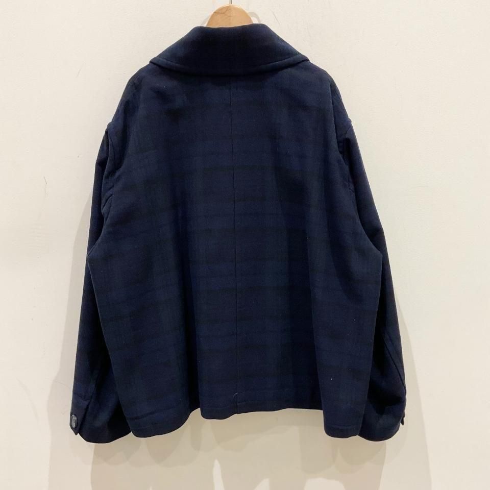 軽いタッチの風合いに仕上げられたダークトーンなチェック柄のダブルブレストジャケットです。