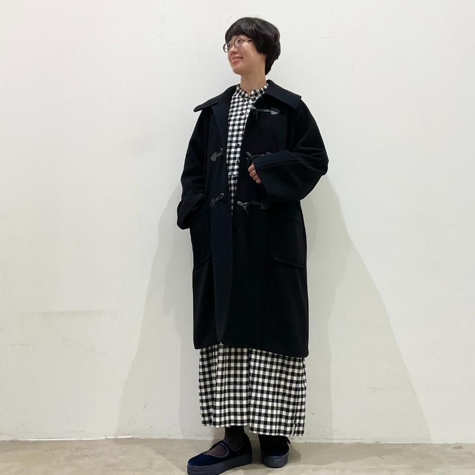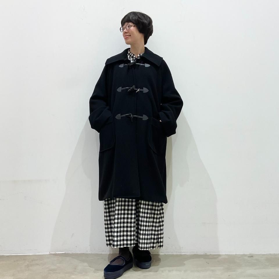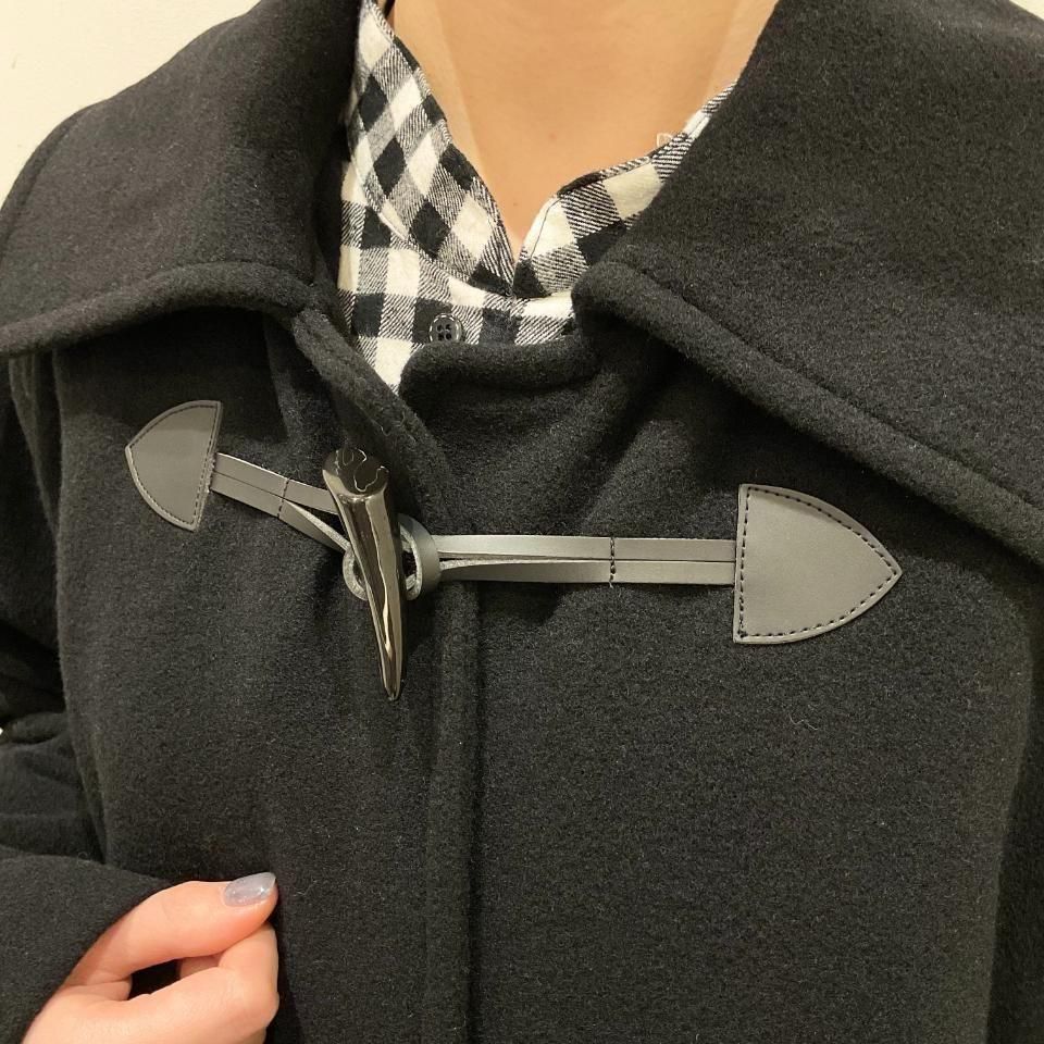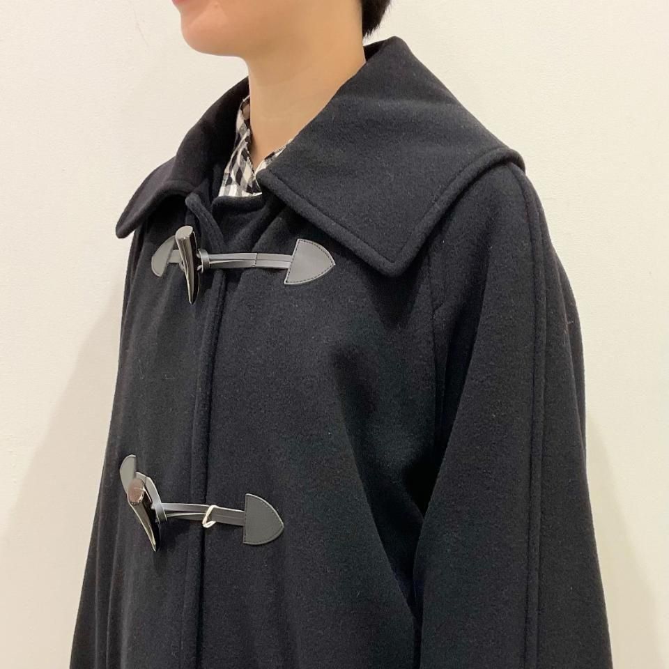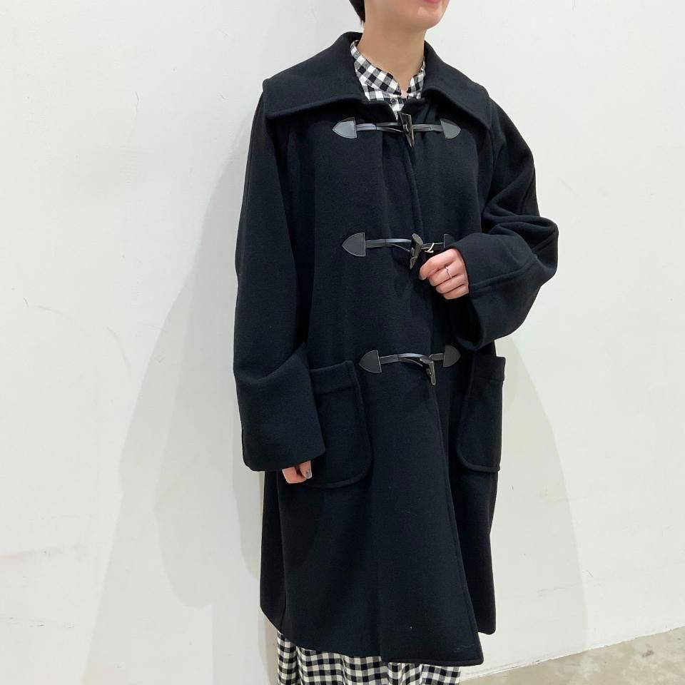 ダッフルコートに使用されるトグルボタンと大きな襟が特徴の気軽に羽織れるフェミニンなシルエットのコートです。