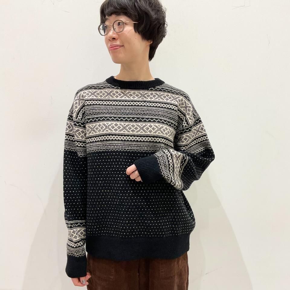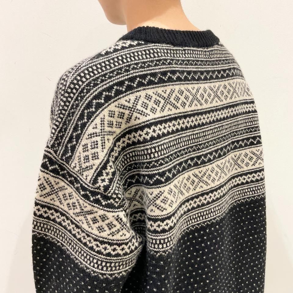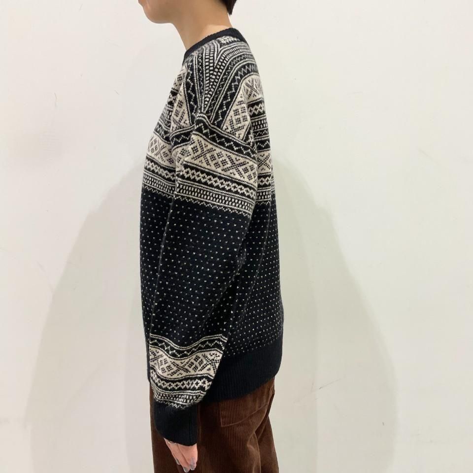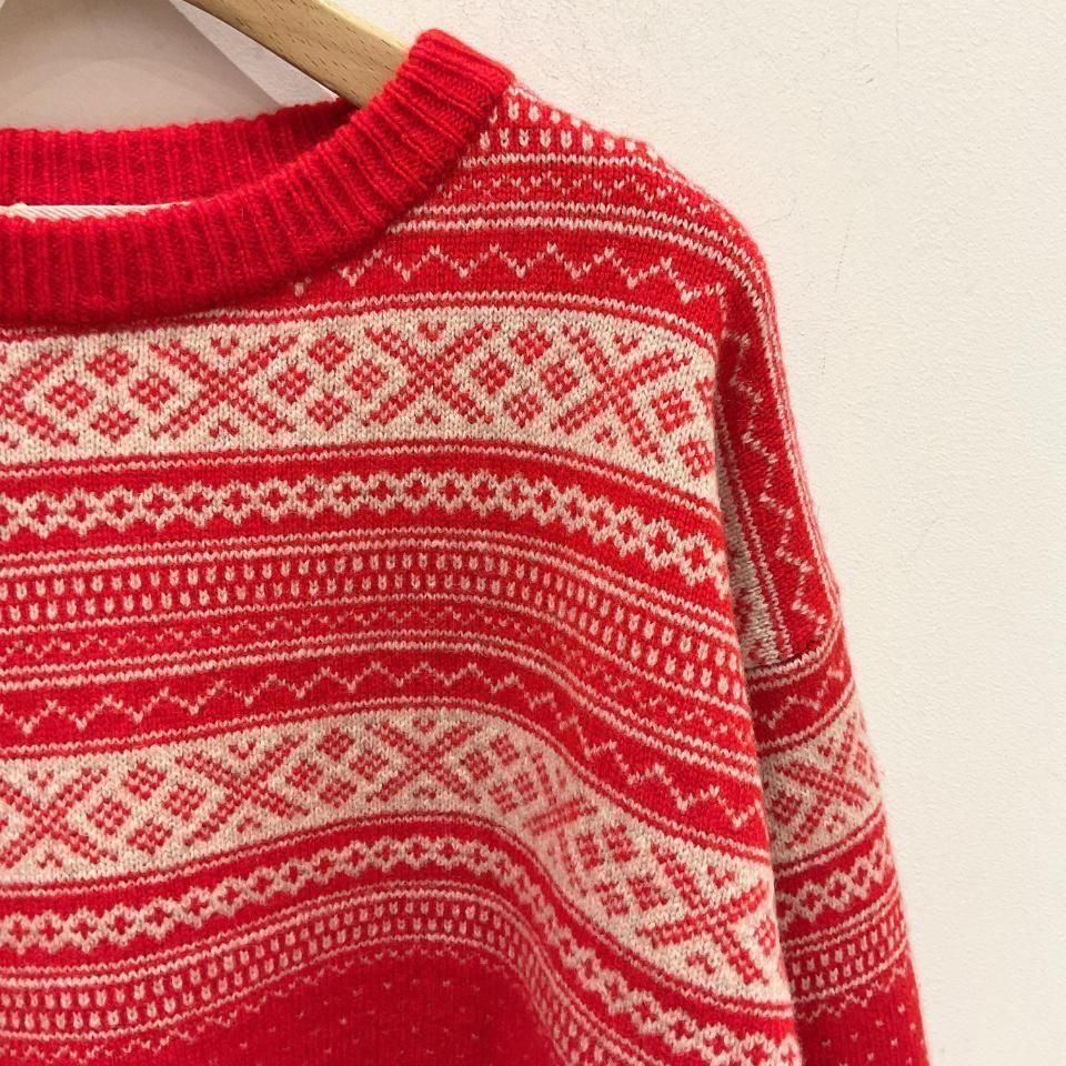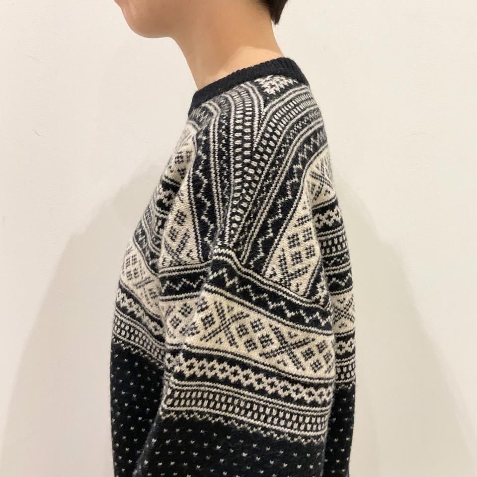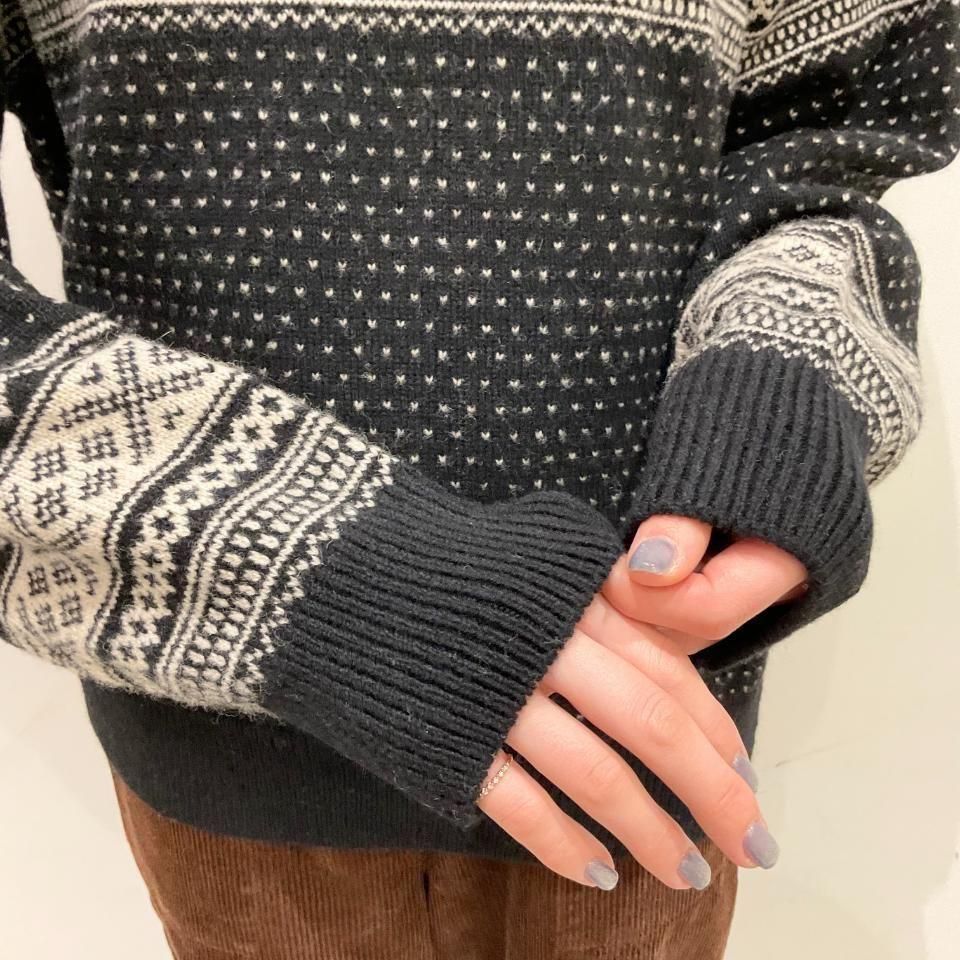 カシミヤがブレンドされた上質な糸で特徴的なジャカード編みが施されたノルディック柄セーター。