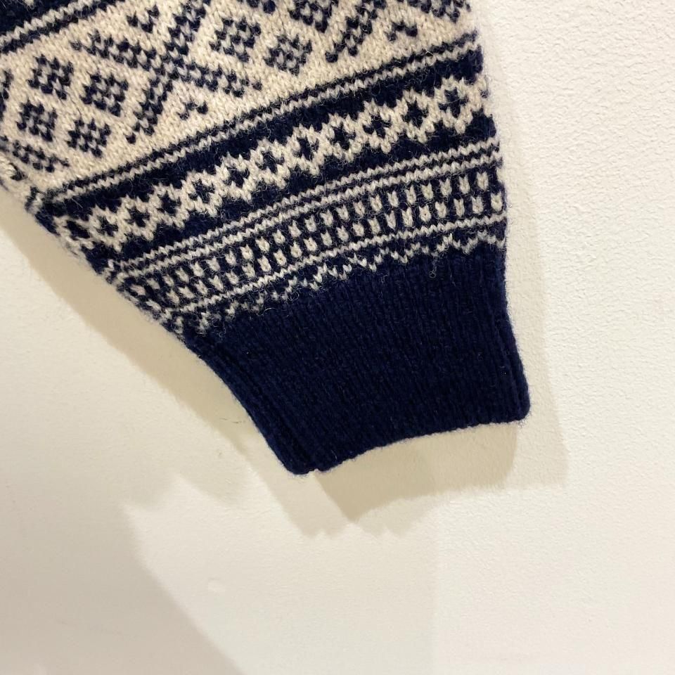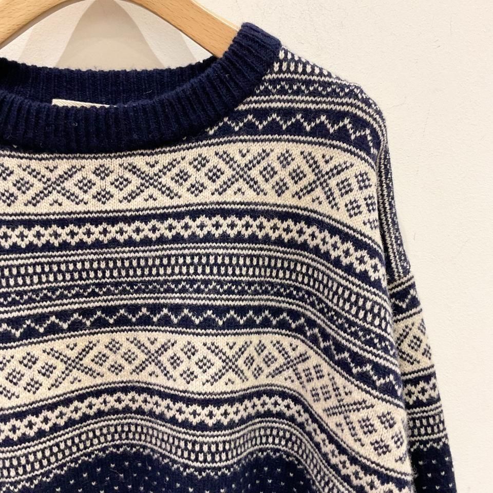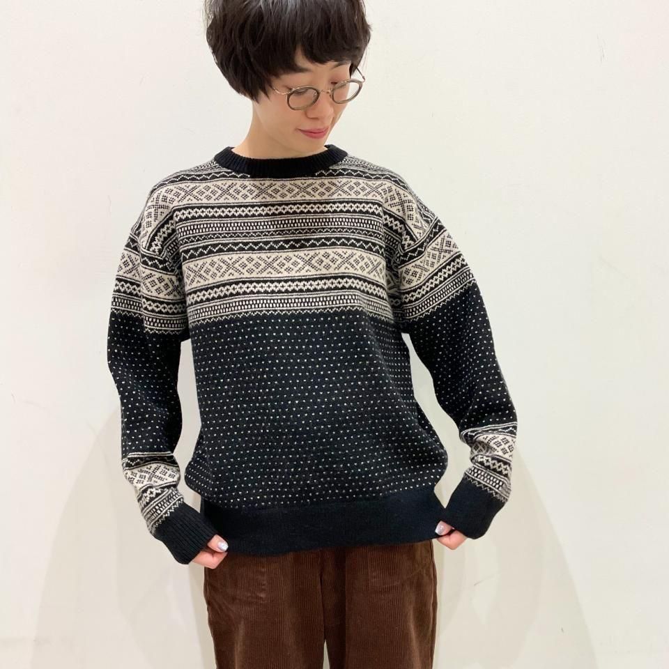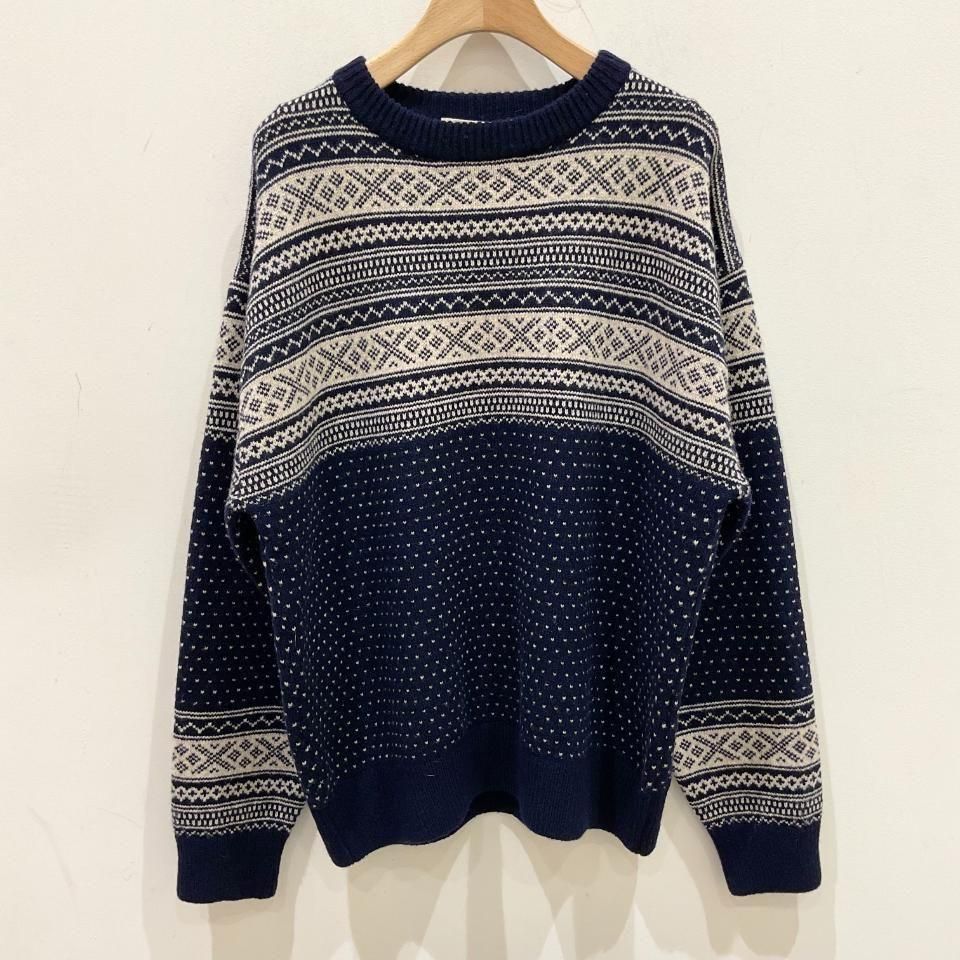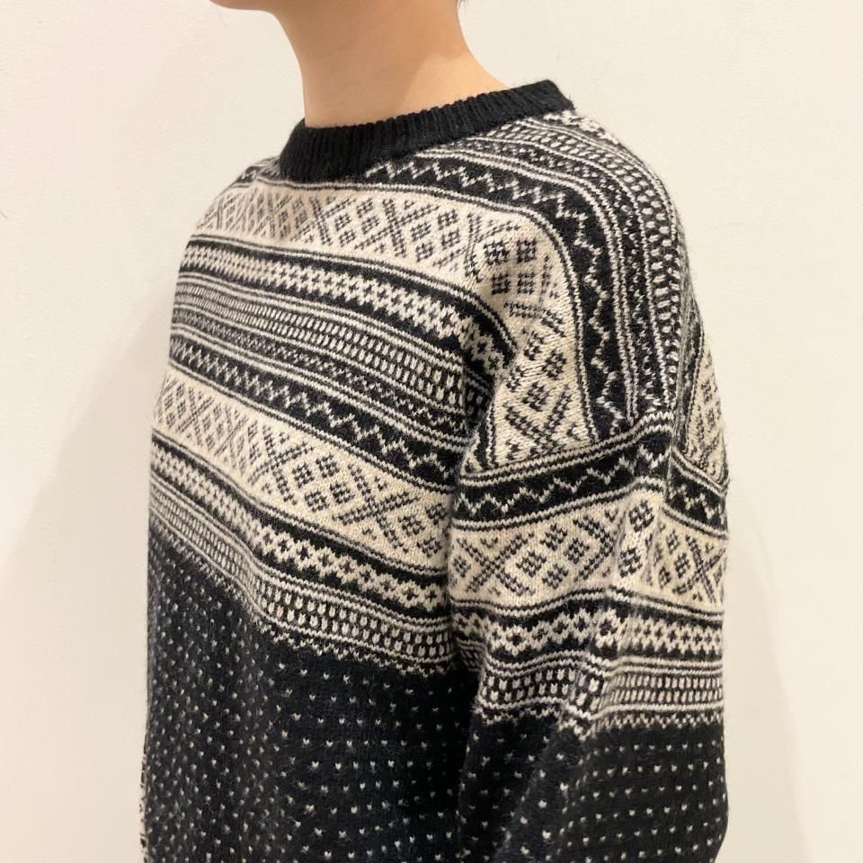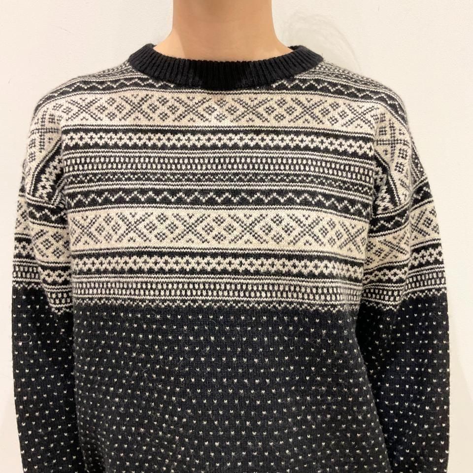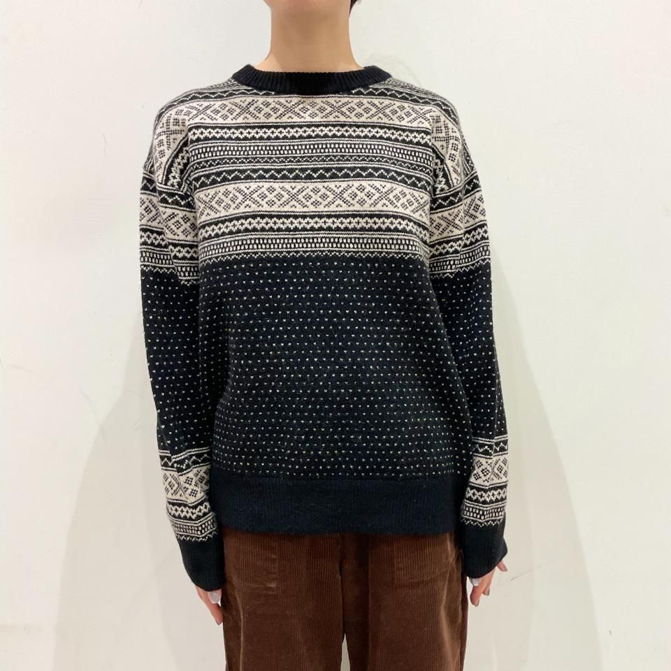 カシミヤがブレンドされた上質な糸で特徴的なジャカード編みが施されたノルディック柄セーター。
