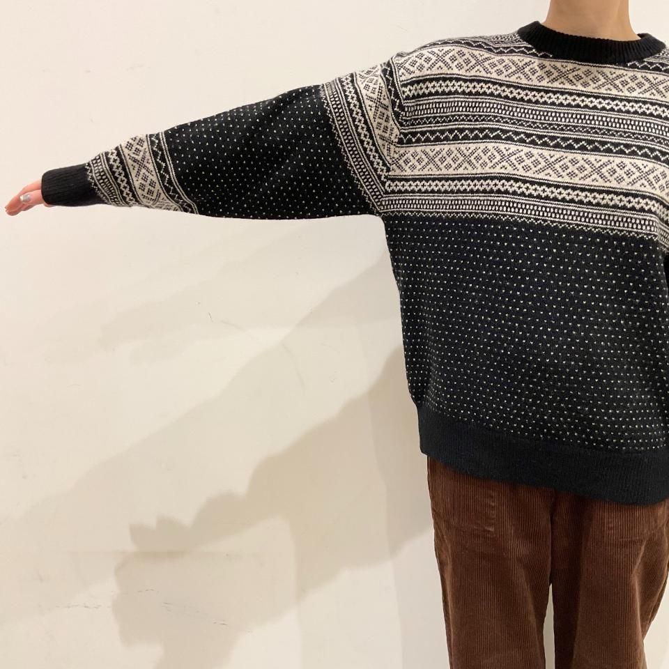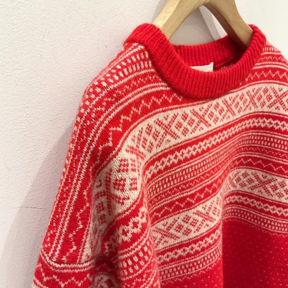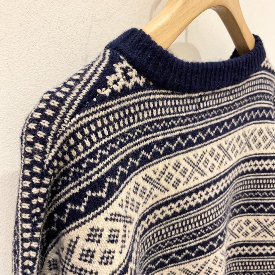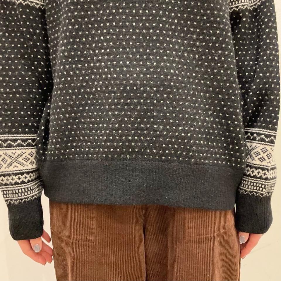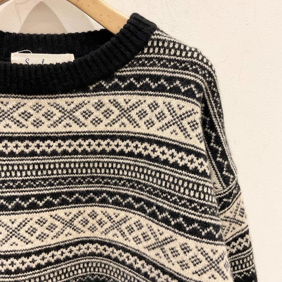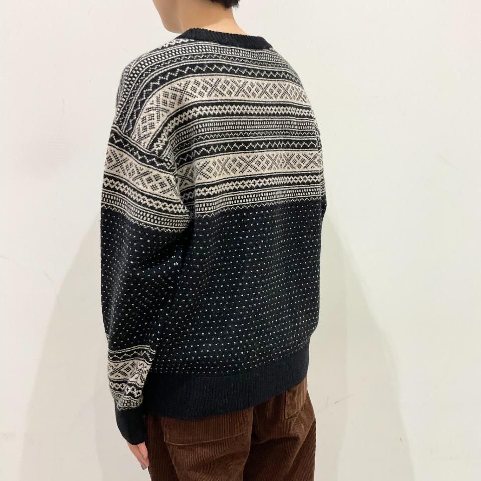カシミヤがブレンドされた上質な糸で特徴的なジャカード編みが施されたノルディック柄セーター。