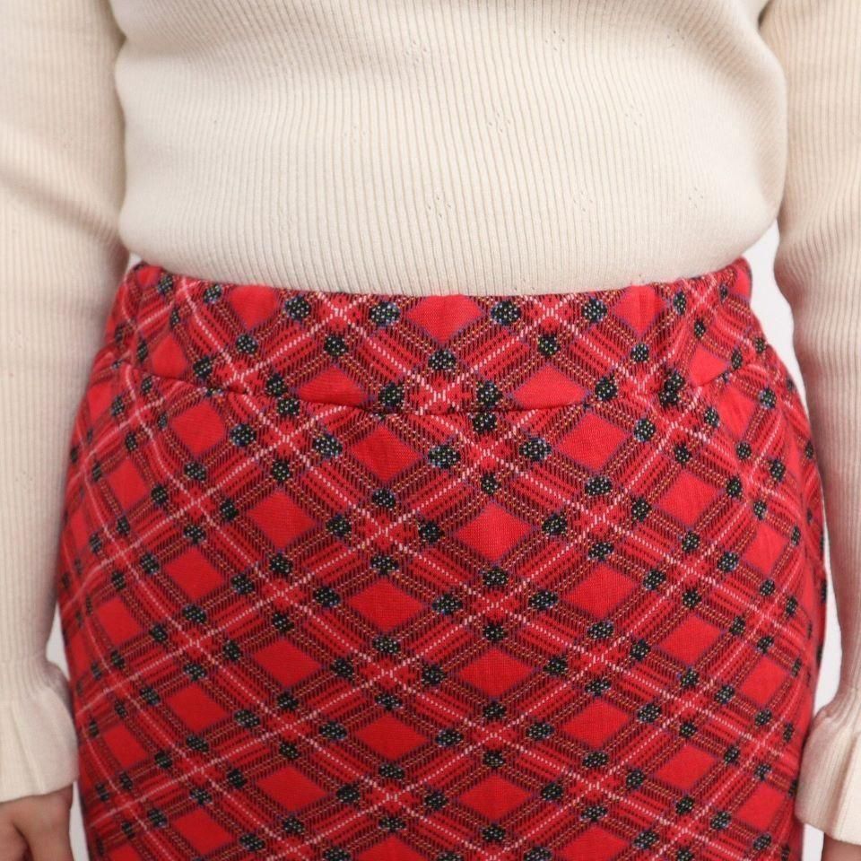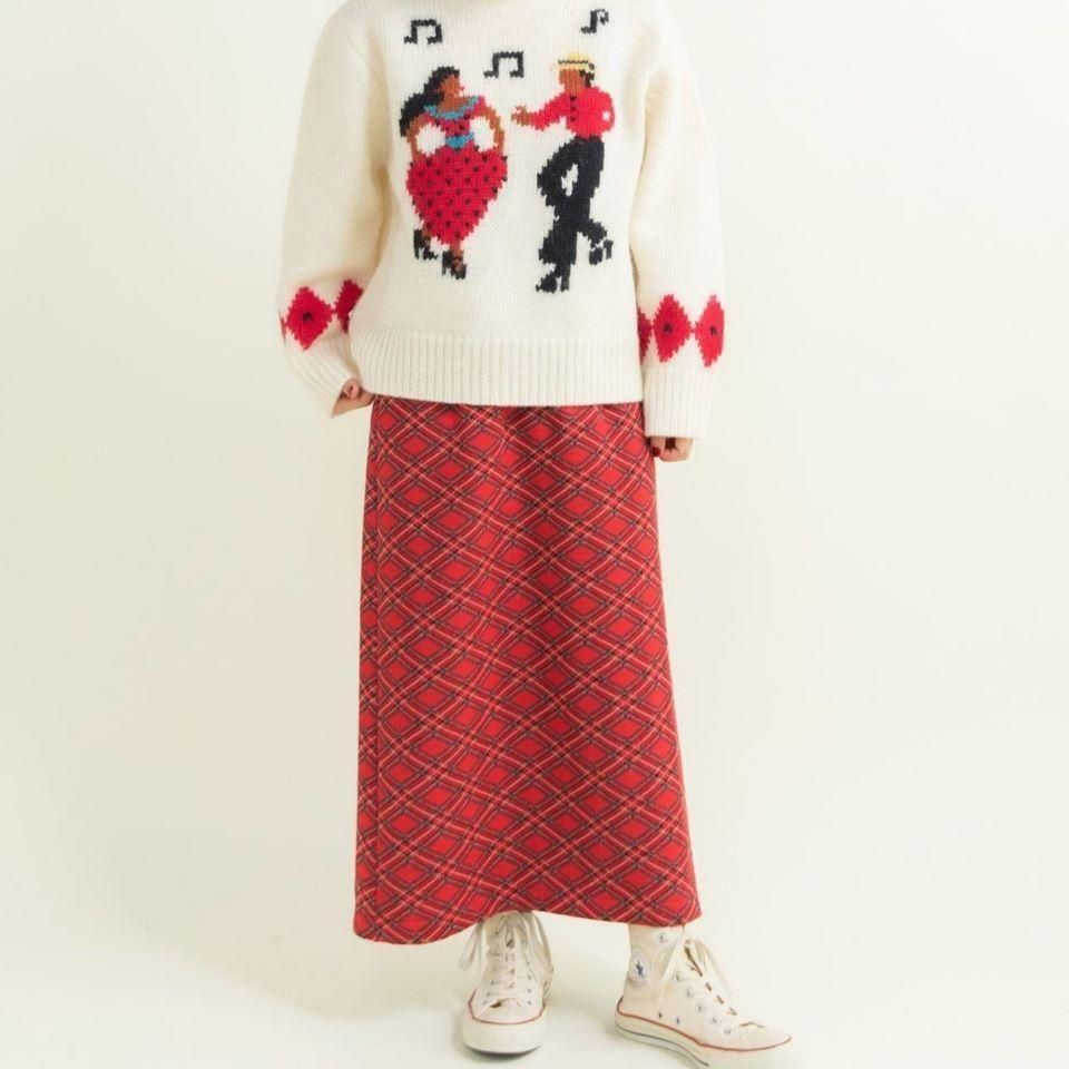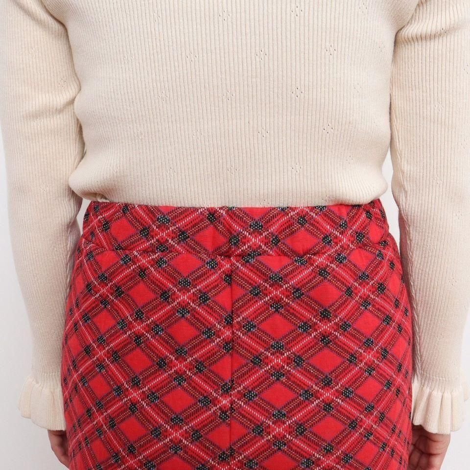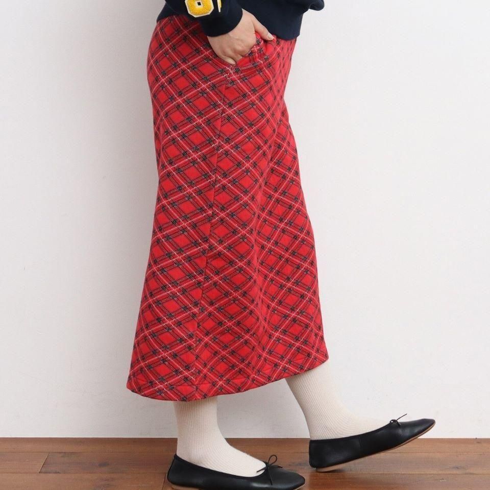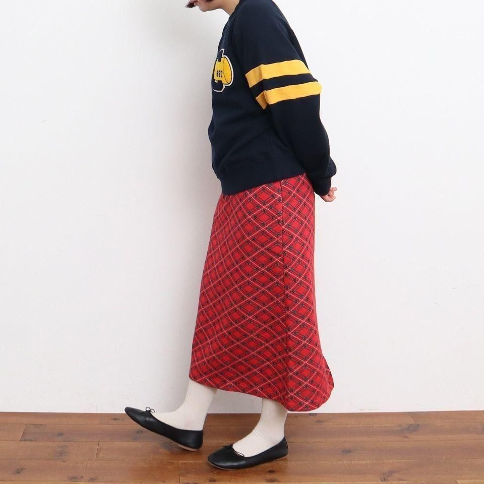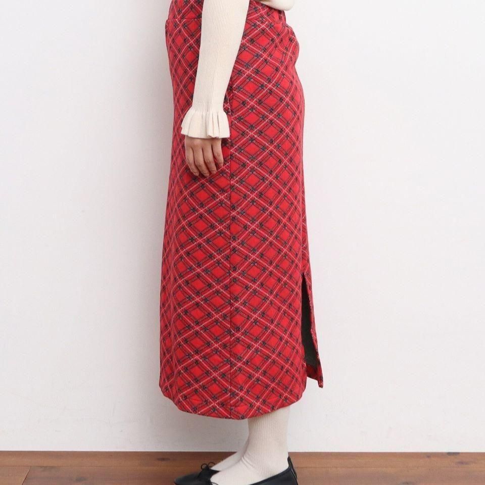 秋冬らしい季節を感じるレトロなチェック柄のペンシルスカート。